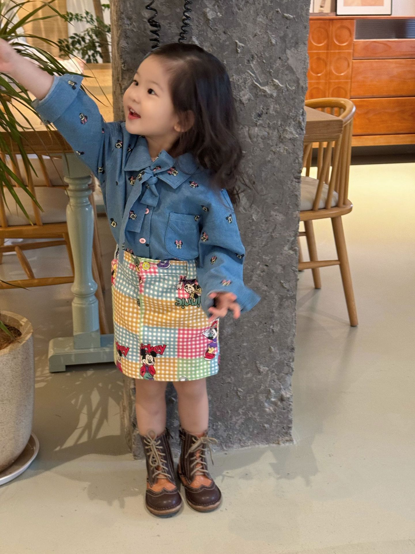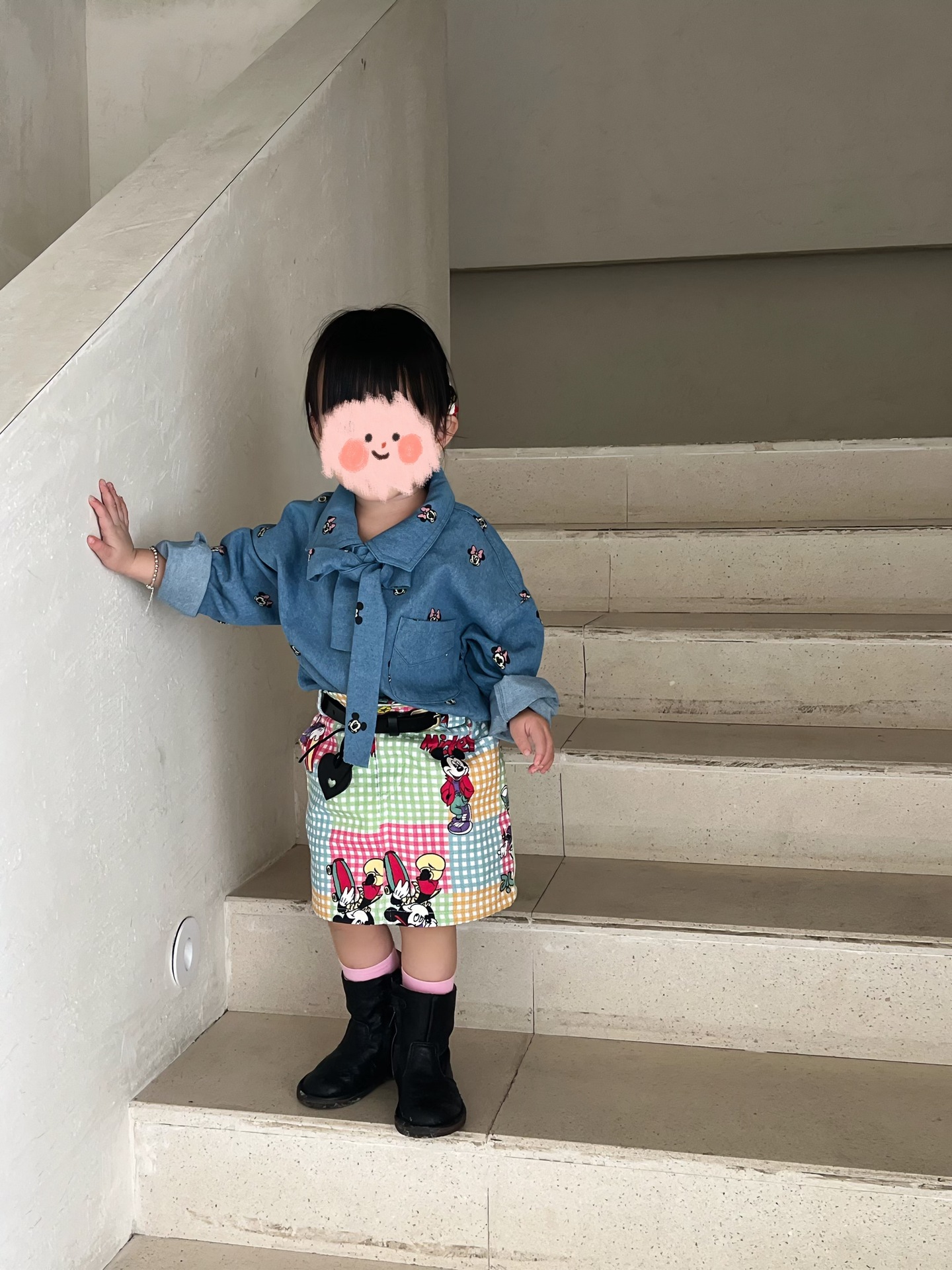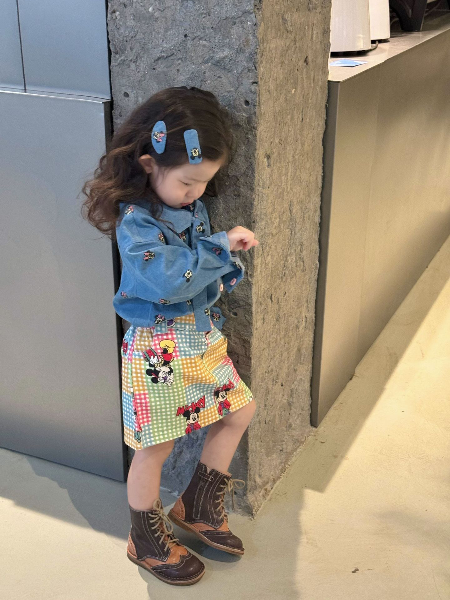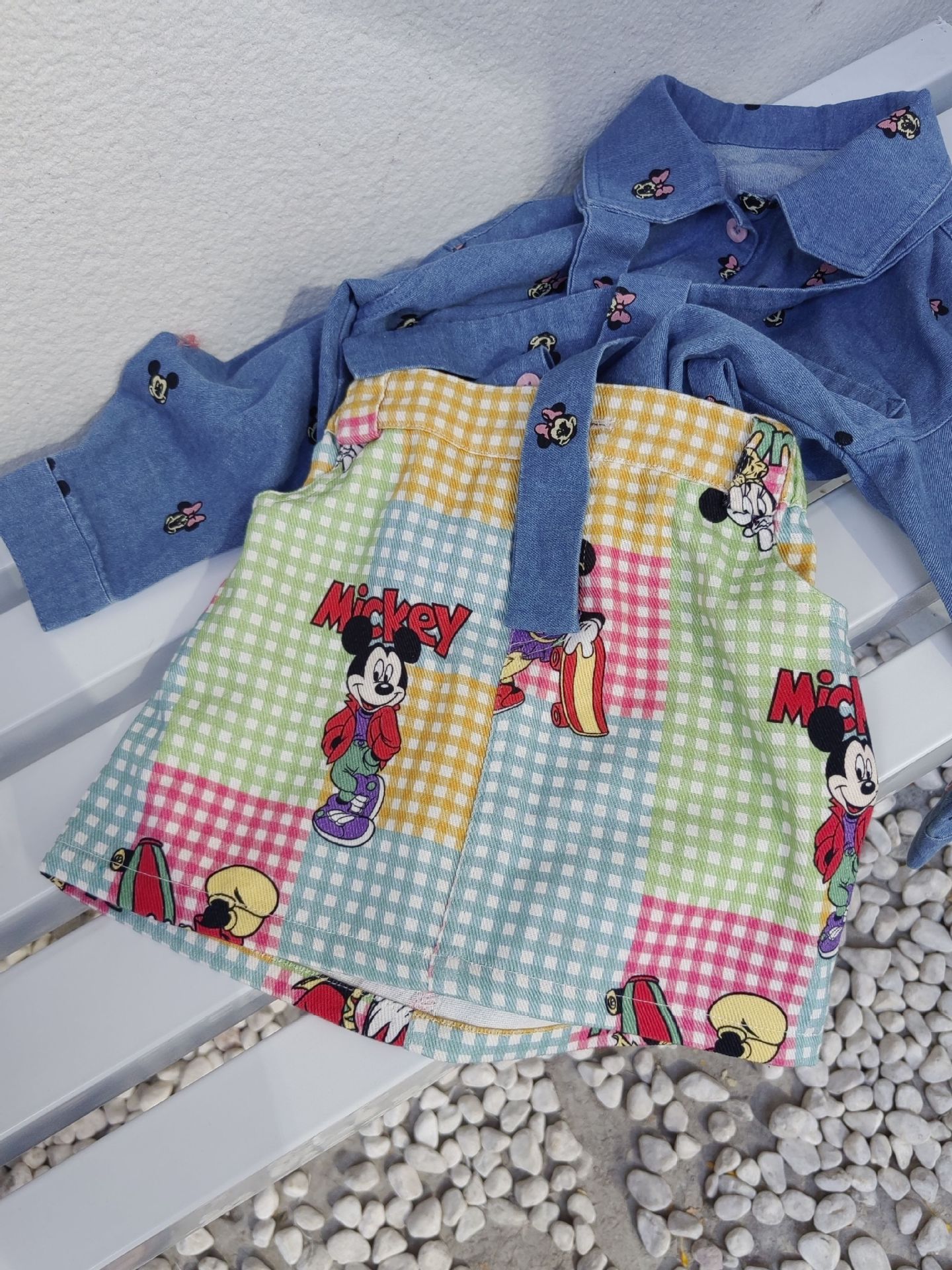 한국 아동복 봄 여름 새 소년과 소녀 미키 인쇄 데님 얇은 셔츠 중립 유행 브랜드 귀여운 올매치스토어 가기