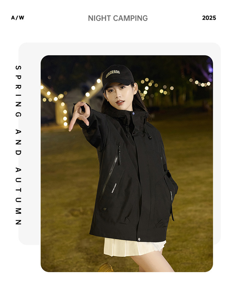 2025春季新品夹克男休闲宽松连帽外套情侣男女户外防水冲锋衣外套