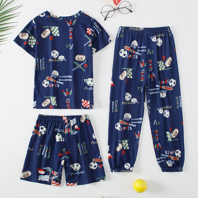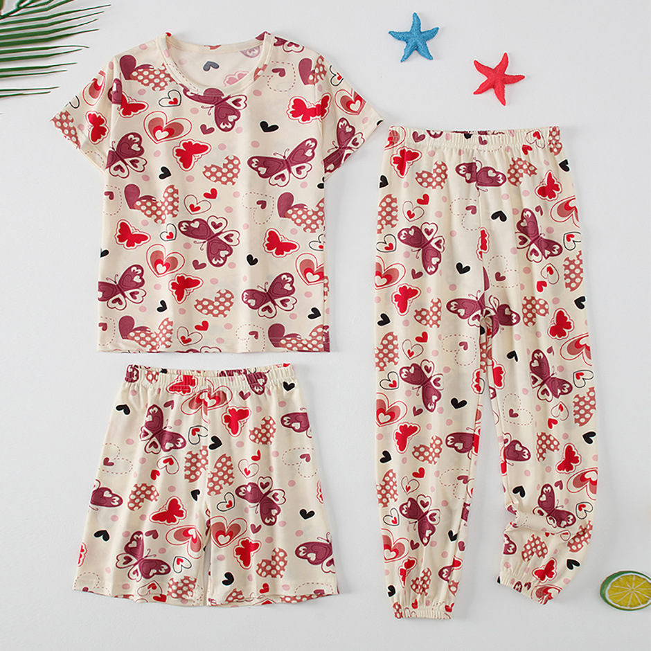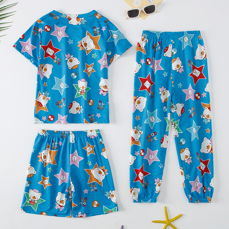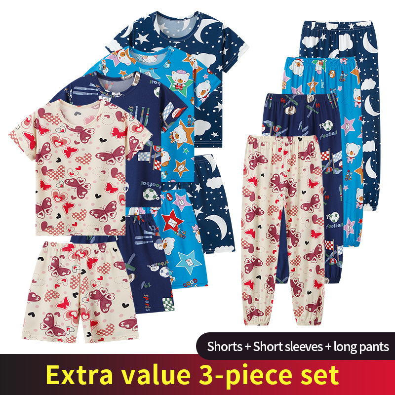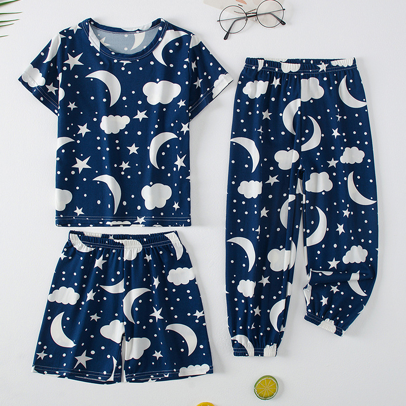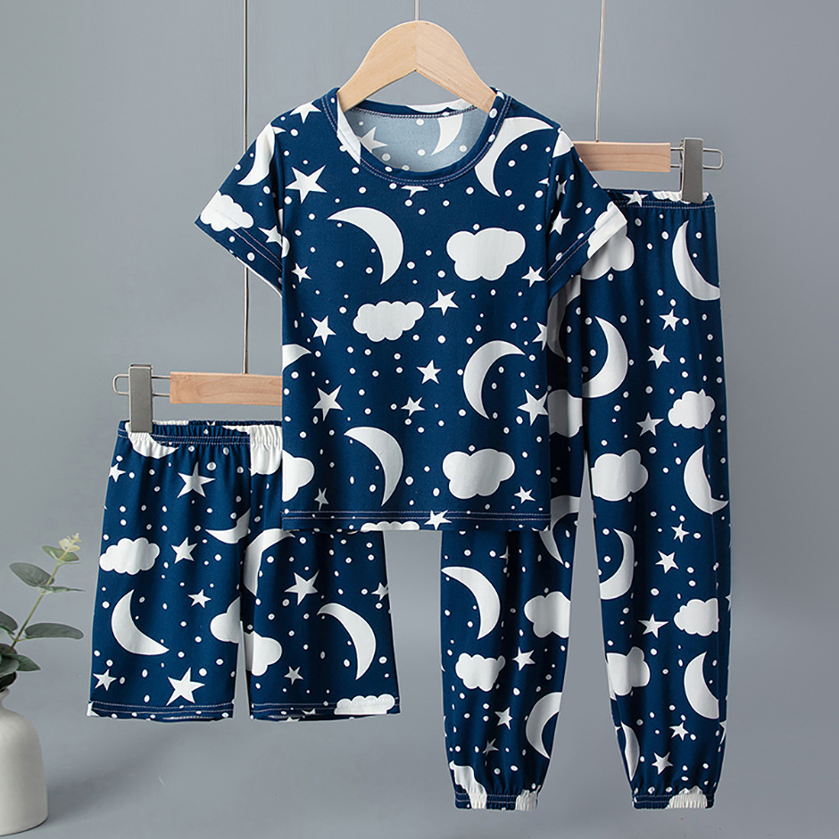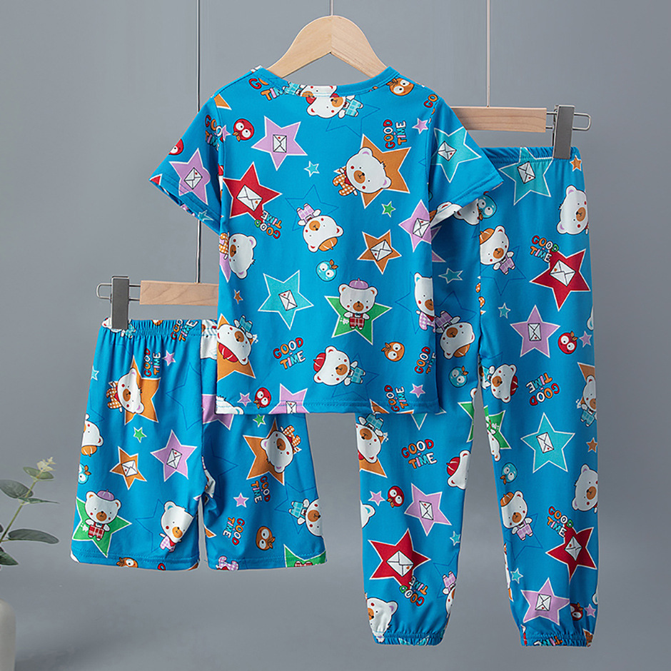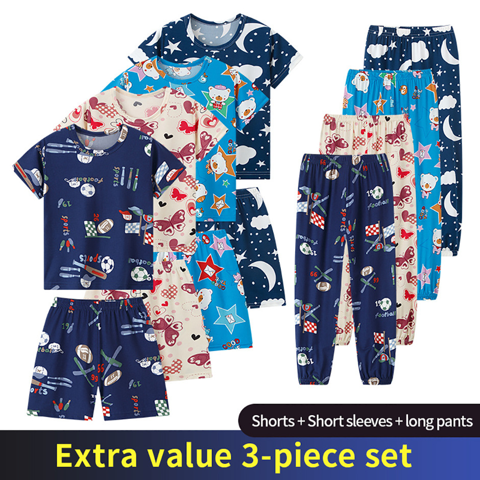 해외 국경 플랫폼 대외 무역 3 피스 어린이 패션 반팔 바지 반바지 소년 소녀 홈 옷 인쇄스토어 가기