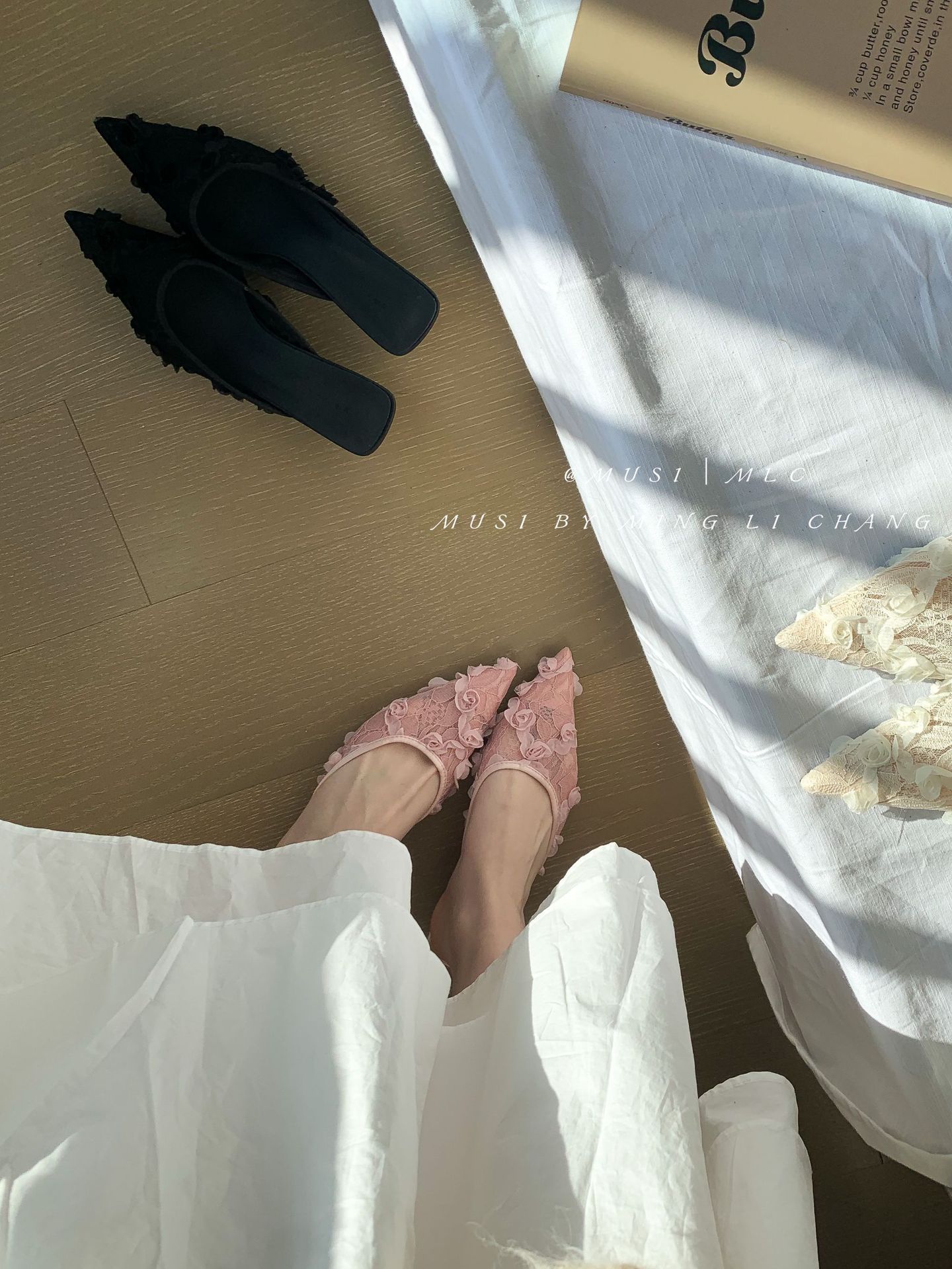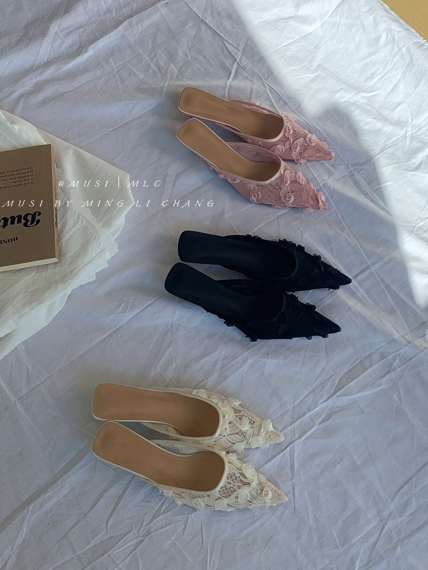 우아한 뾰족한 발가락 부드러운 하이힐 모피 슬리퍼 여성 신발 2025 새로운 프랑스 스타일 바오터우 하프 슬리퍼스토어 가기