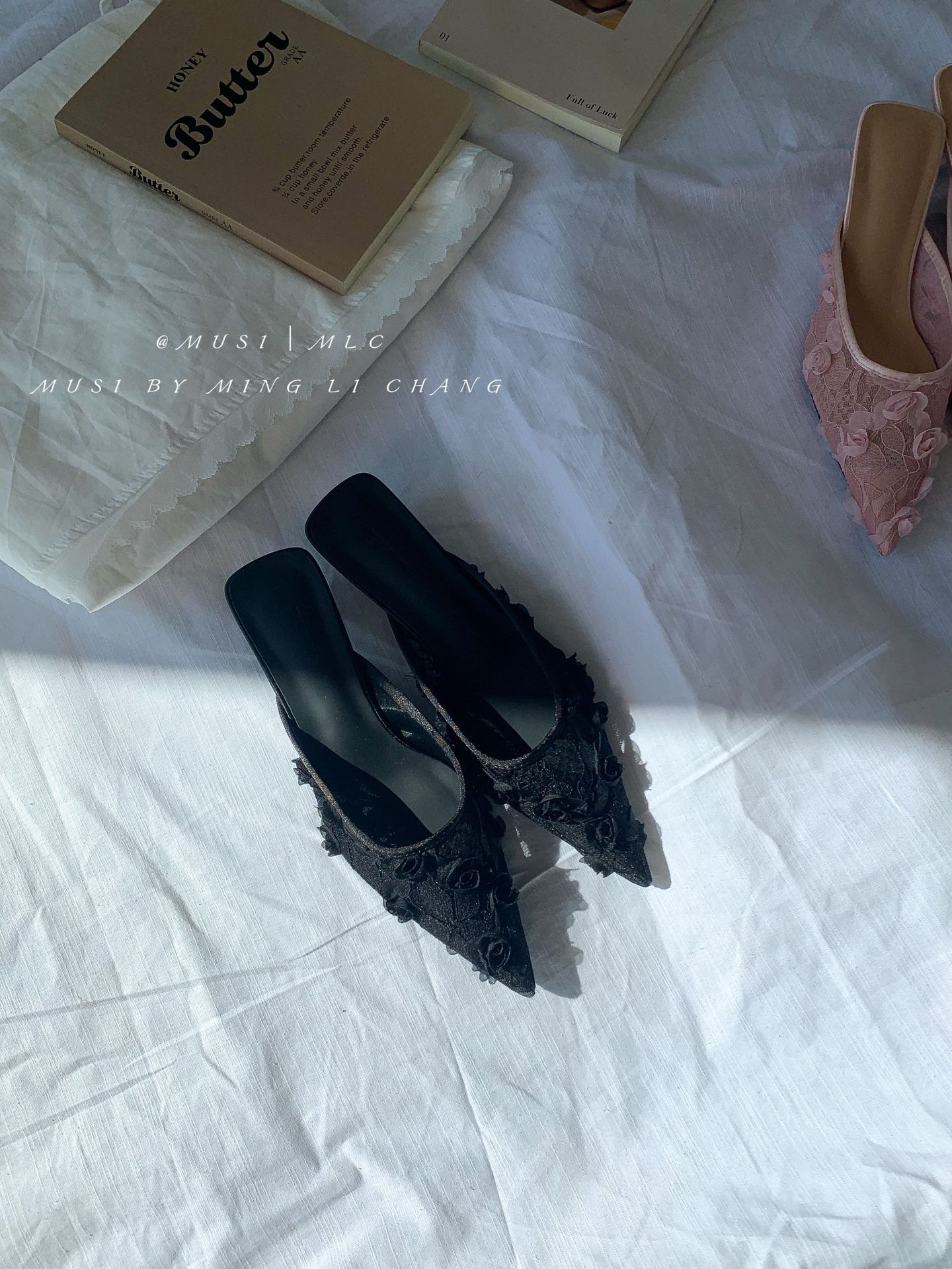우아한 뾰족한 발가락 부드러운 하이힐 모피 슬리퍼 여성 신발 2025 새로운 프랑스 스타일 바오터우 하프 슬리퍼