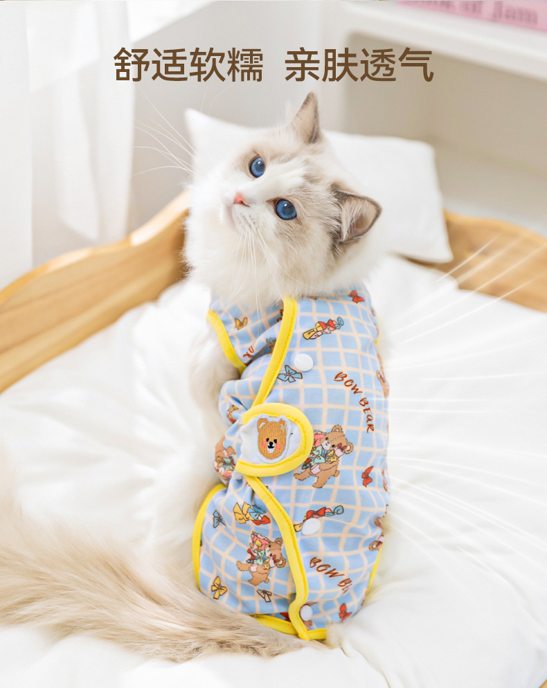 수술 후 반려동물용 살균복, 핥음 방지, 탈모 방지, 통기성 좋은 암컷 고양이 이유식복, 네발 올커버 옷, 반려동물 의류스토어 가기