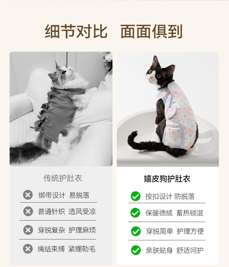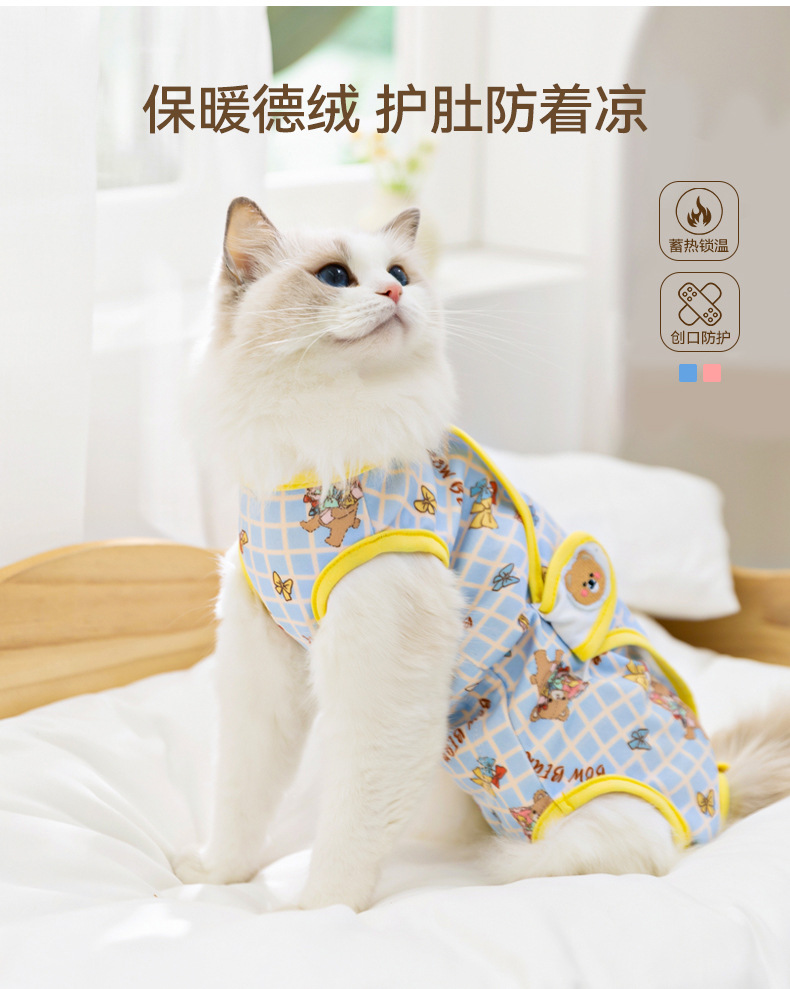 수술 후 반려동물용 살균복, 핥음 방지, 탈모 방지, 통기성 좋은 암컷 고양이 이유식복, 네발 올커버 옷, 반려동물 의류