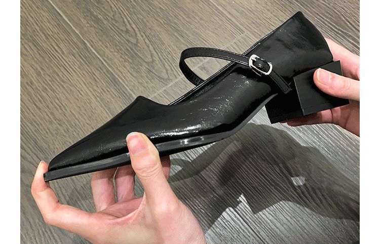 양가죽 버전 ~ 뾰족한 레트로 메리 제인 신발 부드러운 가죽 신발 얕은 두꺼운 힐 싱글 신발 여성용 하이힐 통근 여성 신발스토어 가기
