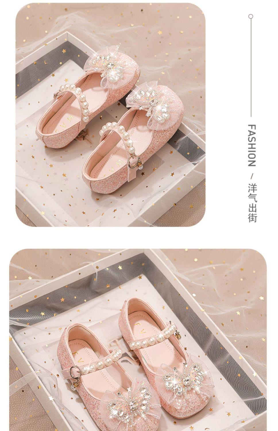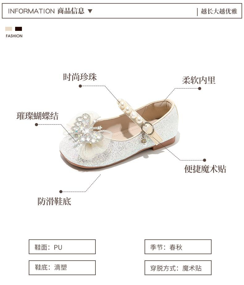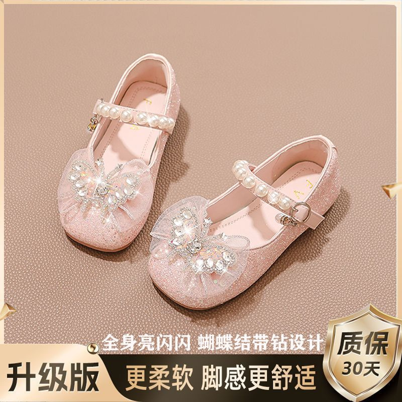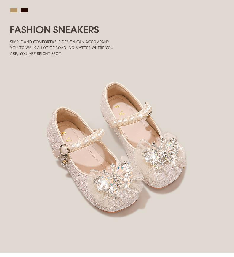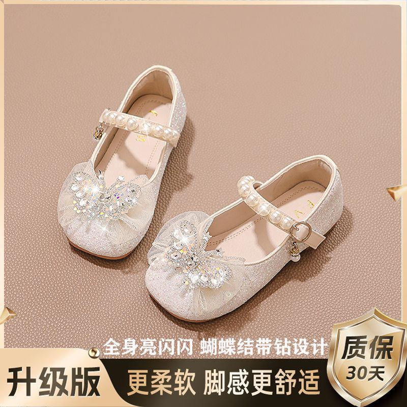 소녀 공주 신발 2025 봄과 가을 새로운 도착 세련된 여성 보물 신발 어린 소녀의 부드러운 단독 학교 신발 크리스탈 신발스토어 가기