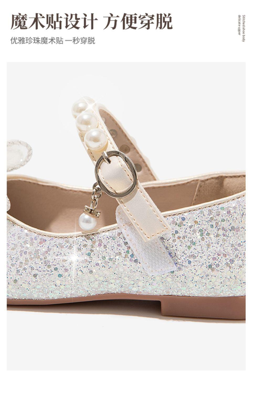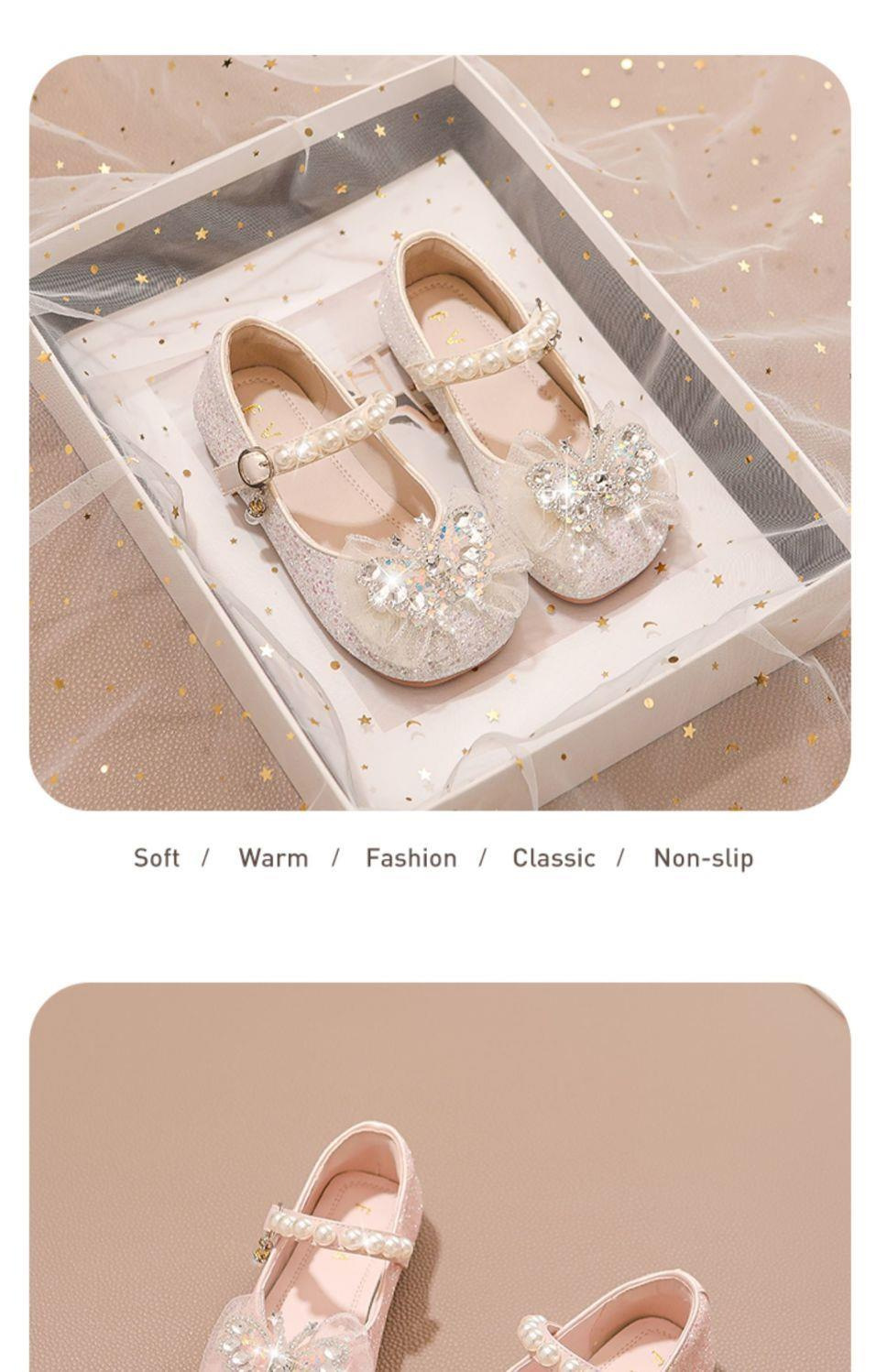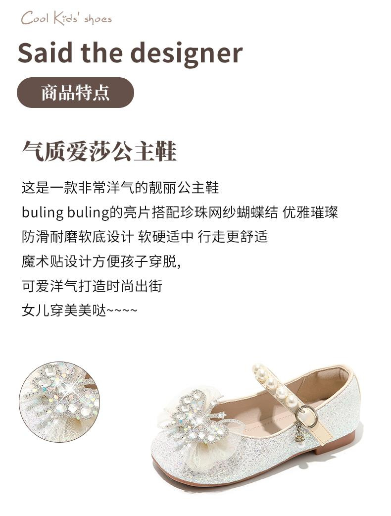 소녀 공주 신발 2025 봄과 가을 새로운 도착 세련된 여성 보물 신발 어린 소녀의 부드러운 단독 학교 신발 크리스탈 신발스토어 가기