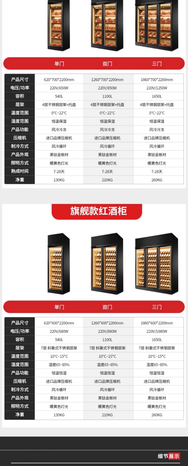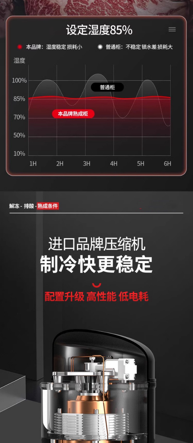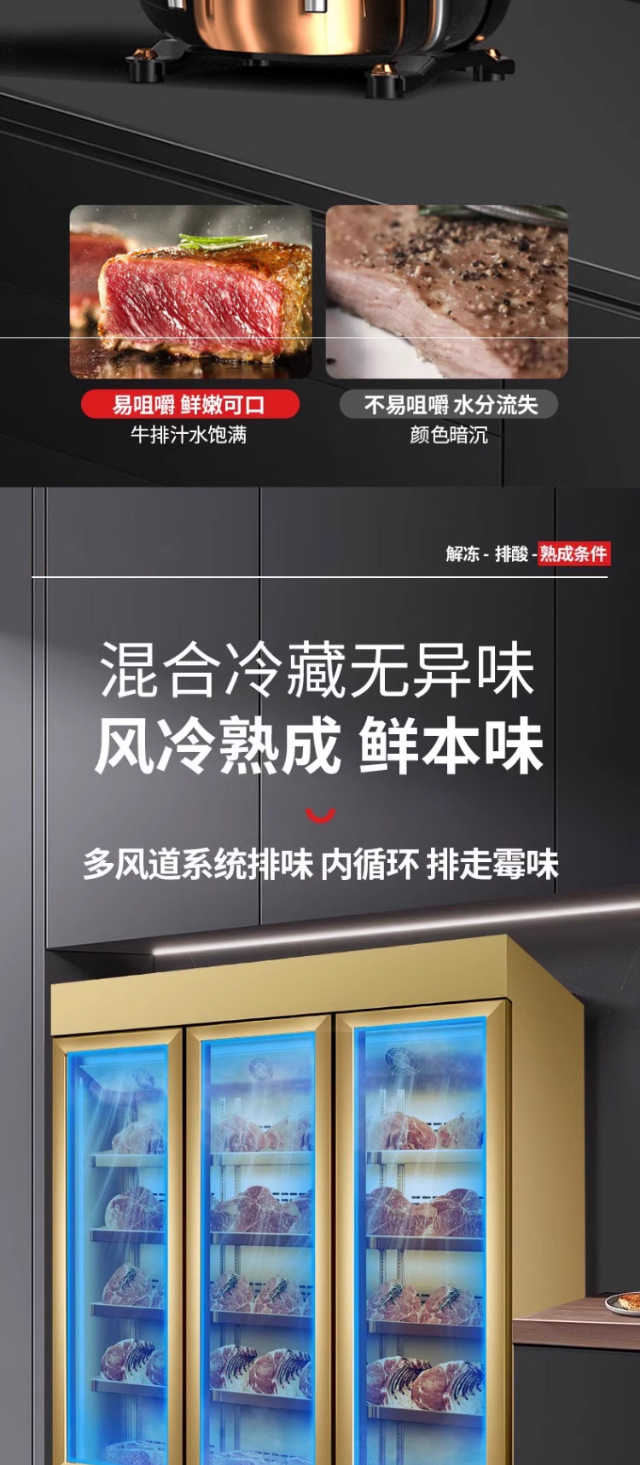 비프 육포 습식 숙성 캐비닛, 레드 와인 캐비닛, 항온 상업용 냉장 서양식 레스토랑 및 소고기 냉동 디스플레이 캐비닛, 산성 제거 캐비닛