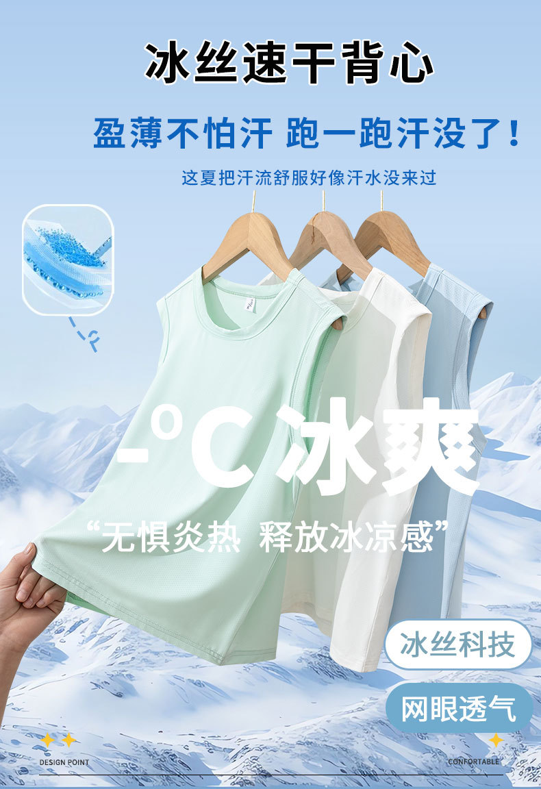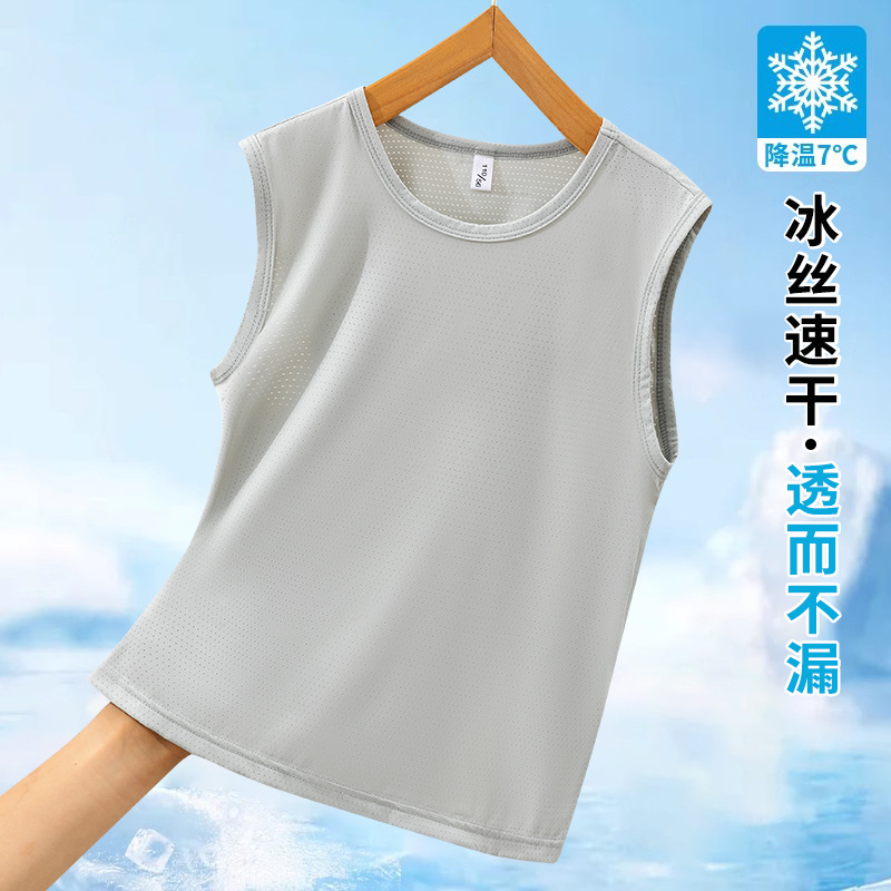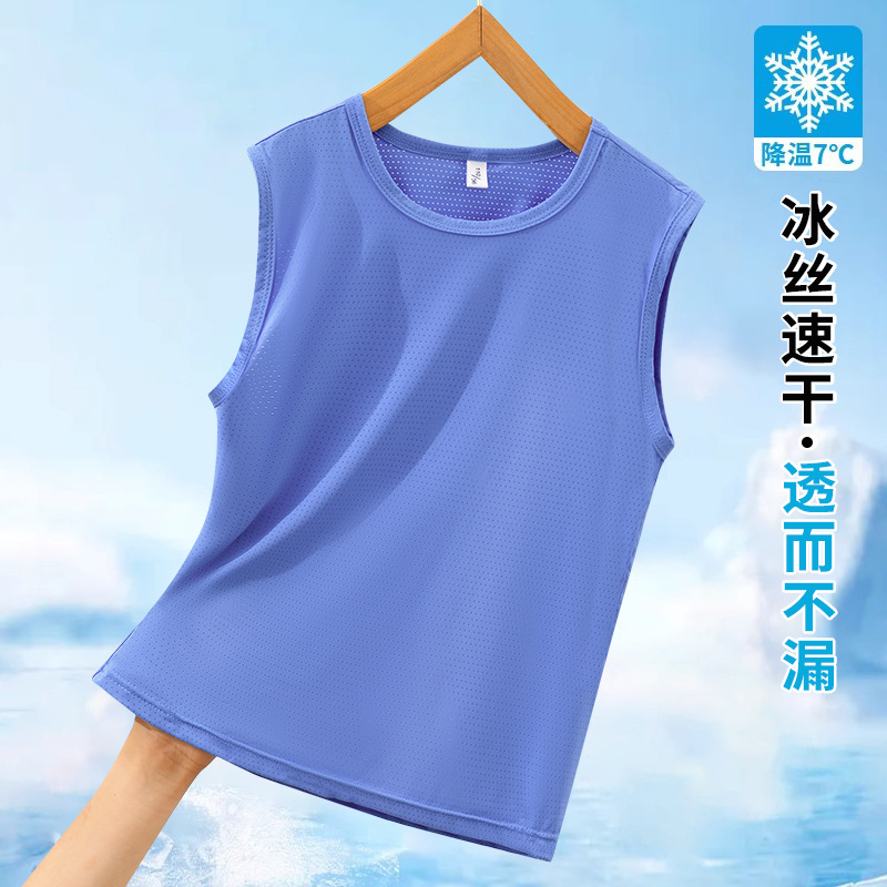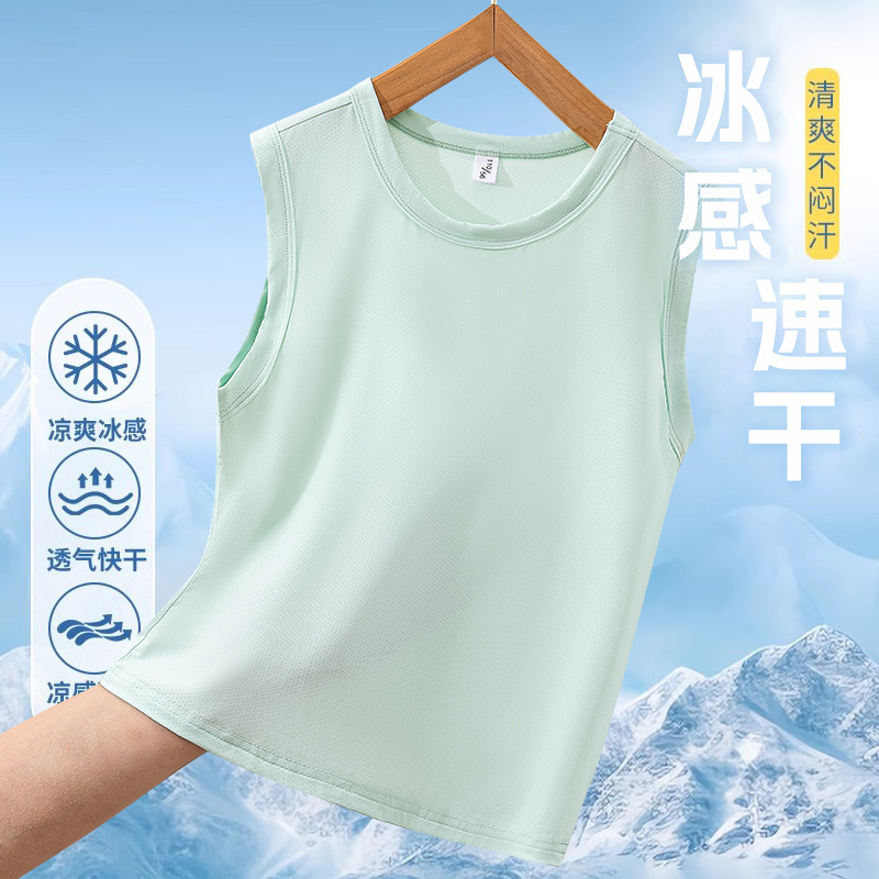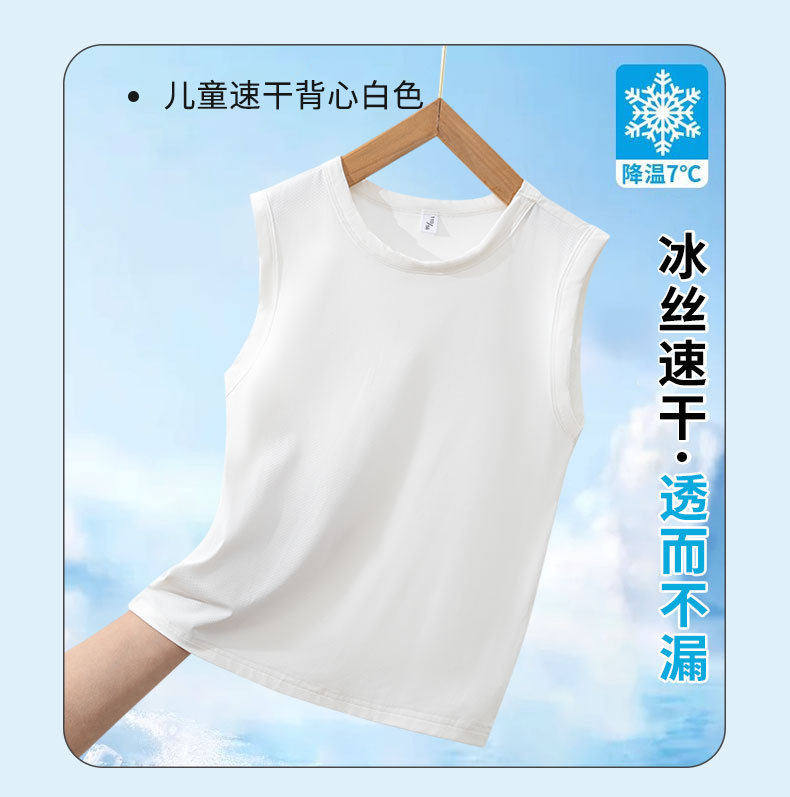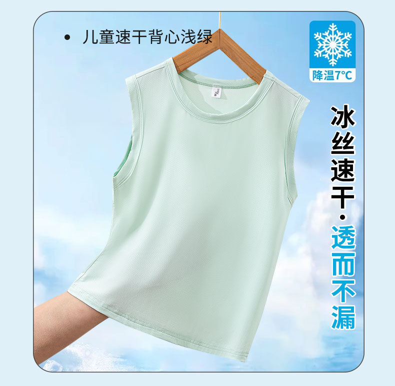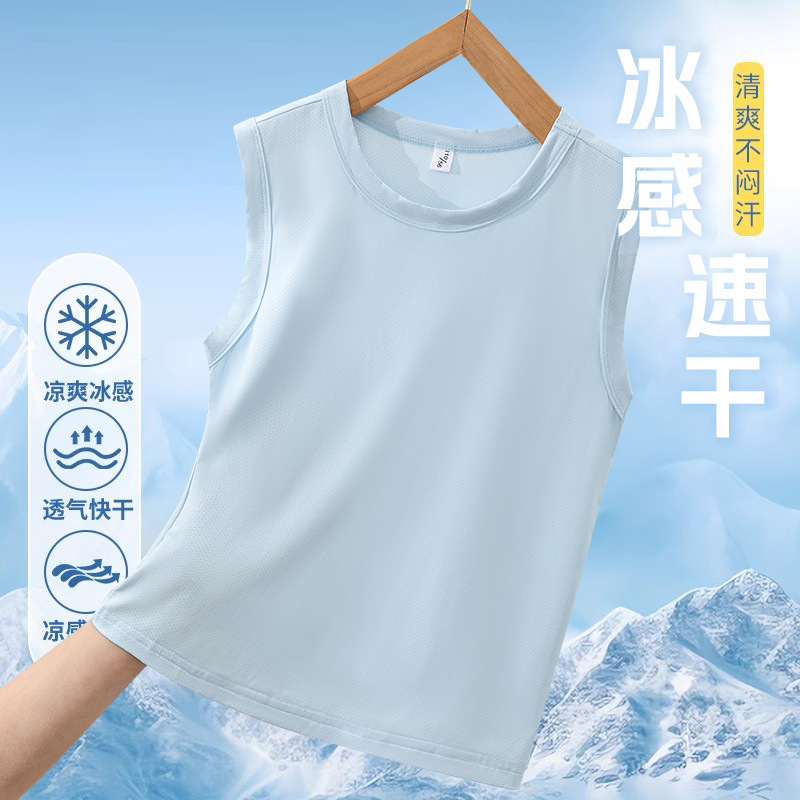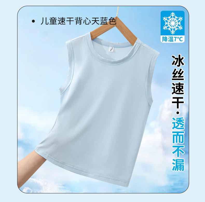 어린이 아이스 실크 빠른 건조 조끼 여름 소년의 단색 미디어와 대형 아동복 소매 통기성 얇은 메쉬 왁스 코트스토어 가기