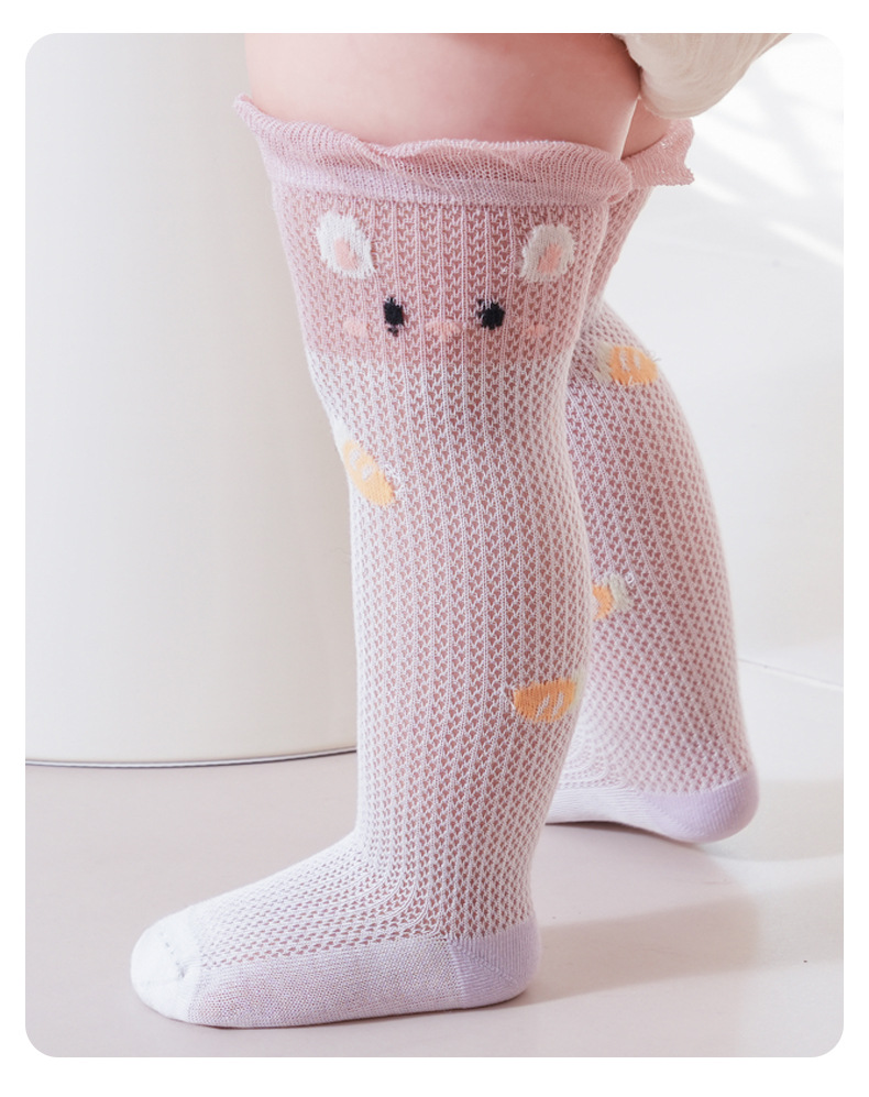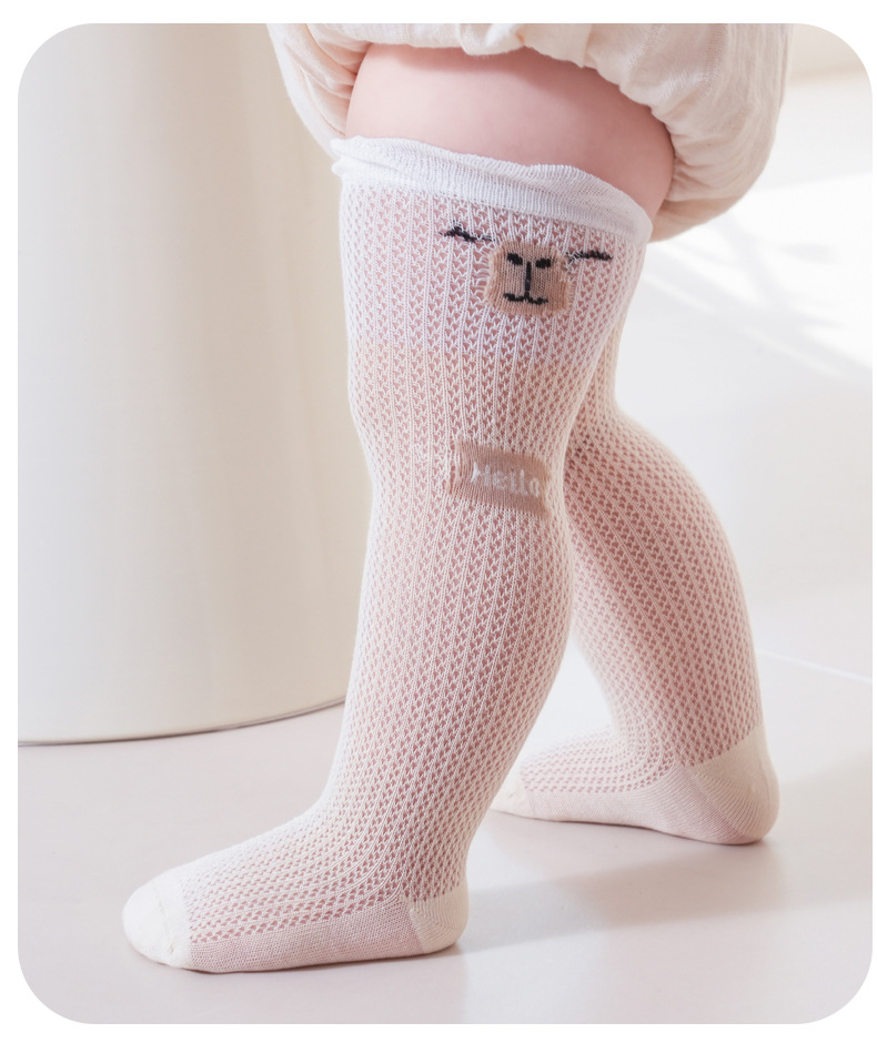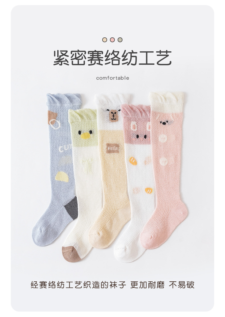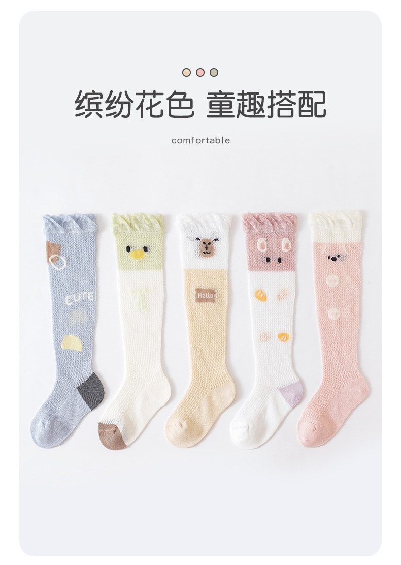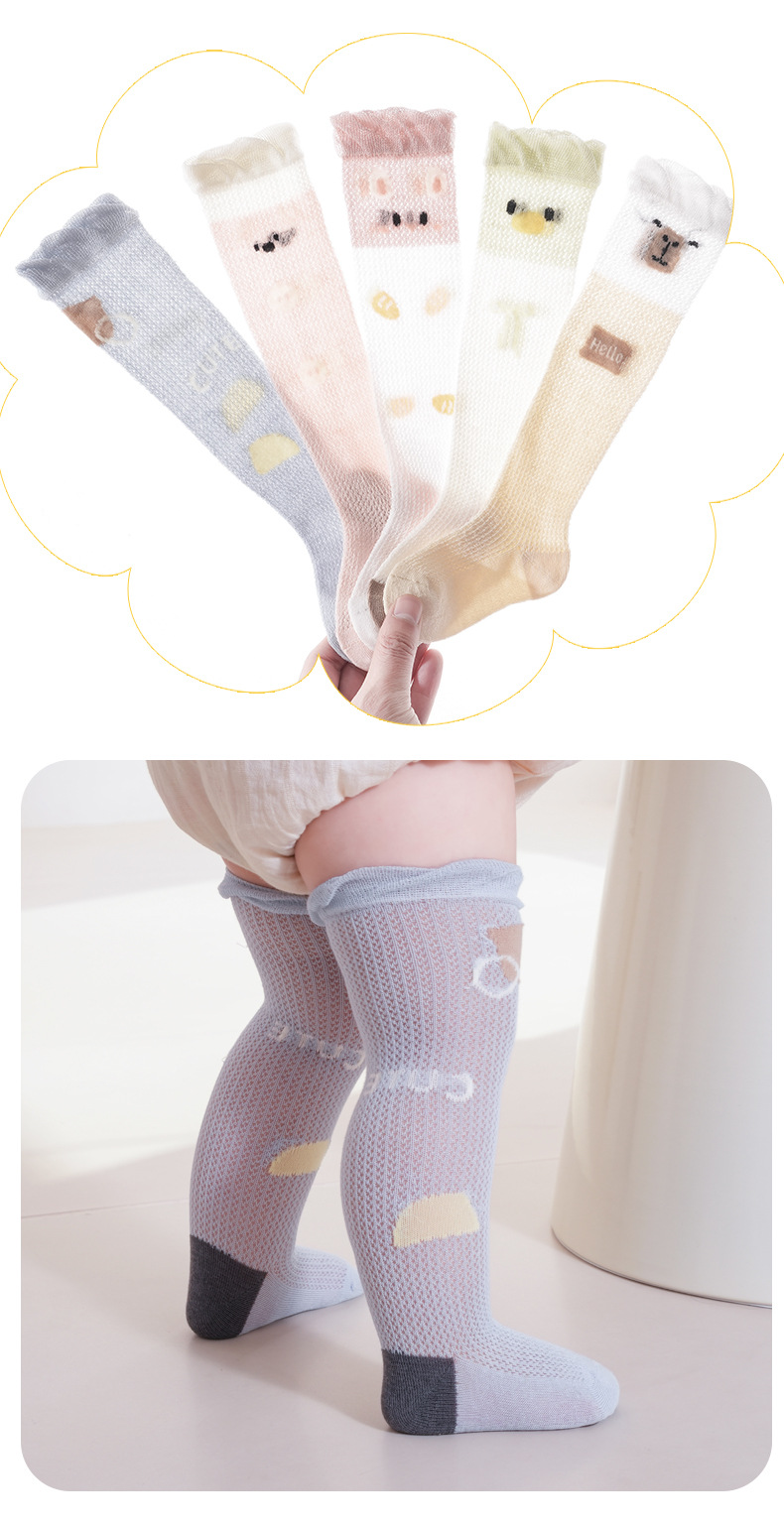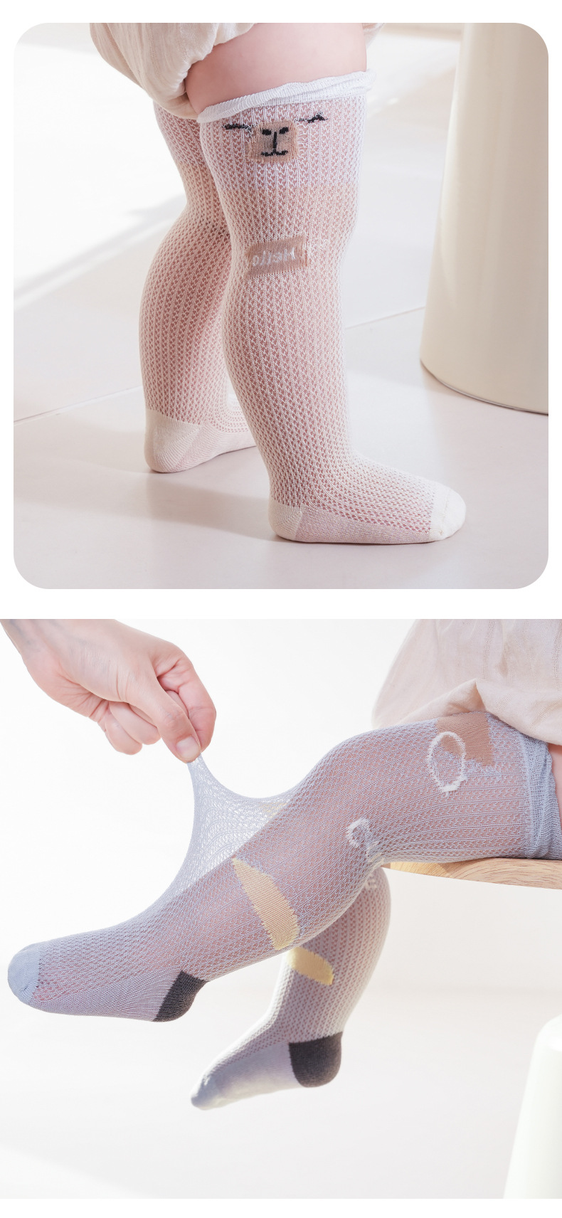 아기 양말 여름 얇은 무릎 위 스타킹 신생아 메쉬 양말 만화 느슨한 뼈없는 아기 양말