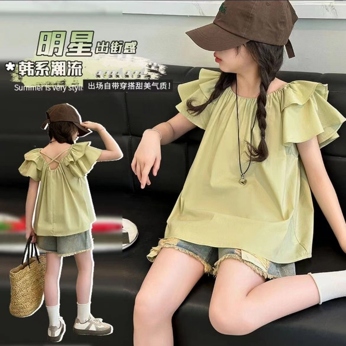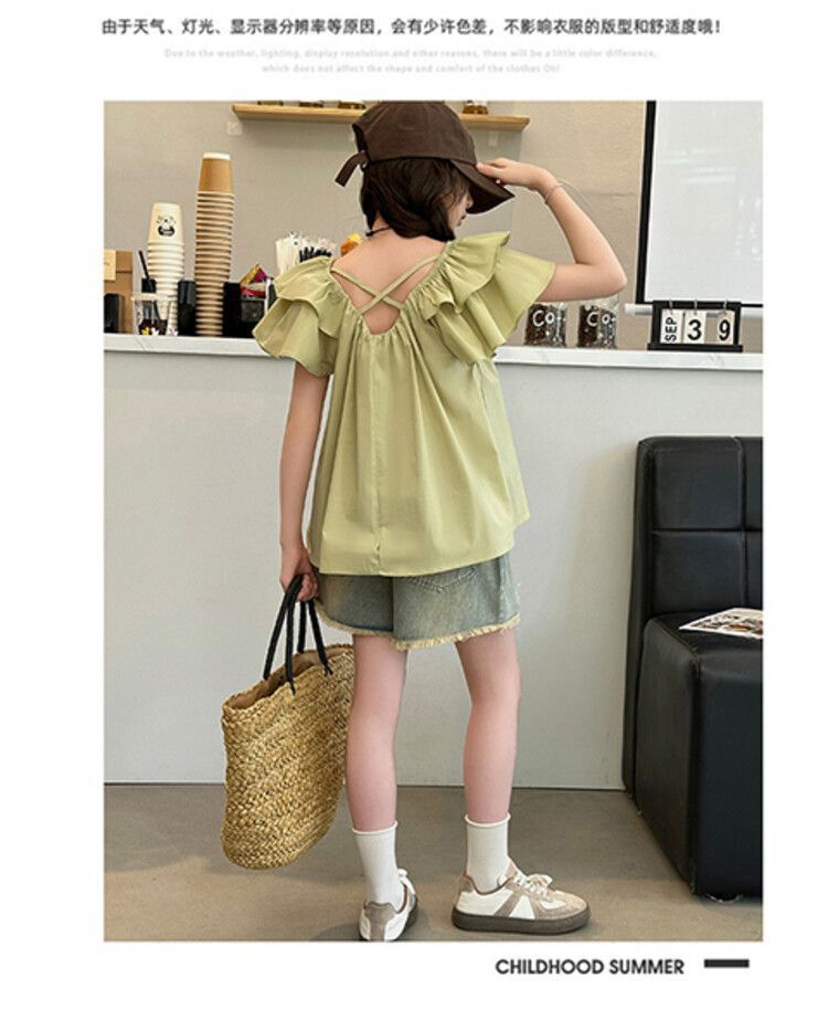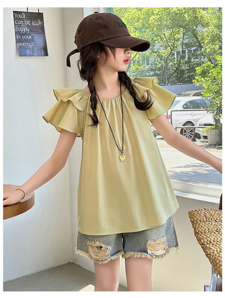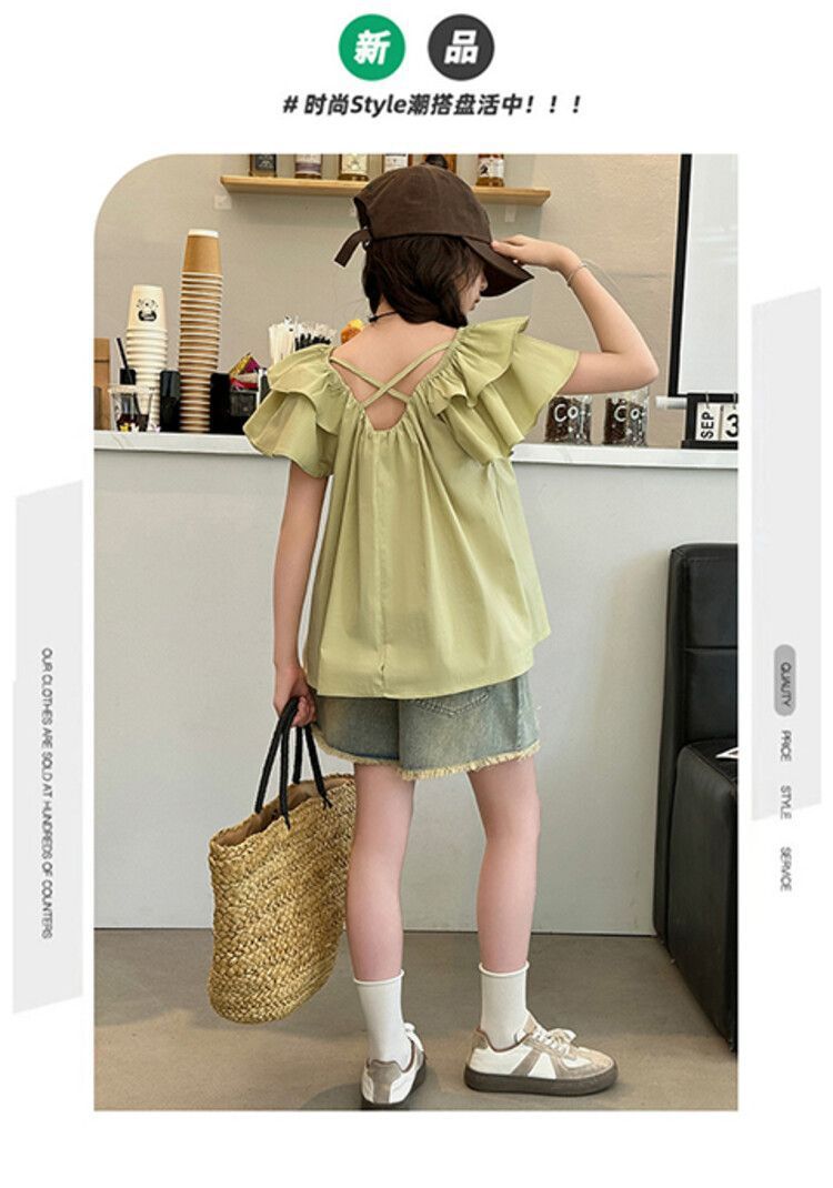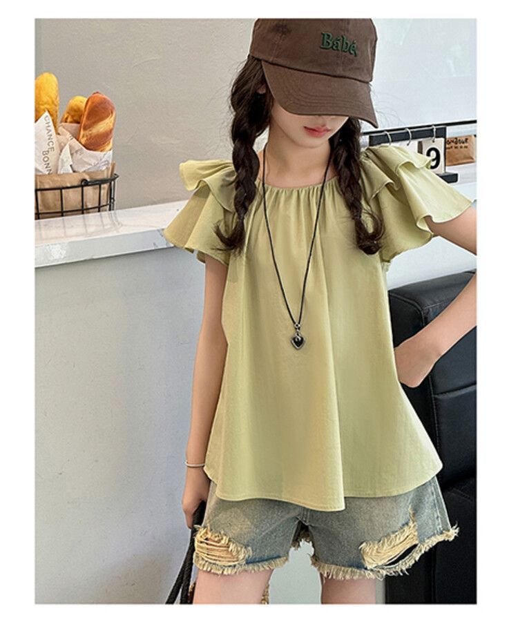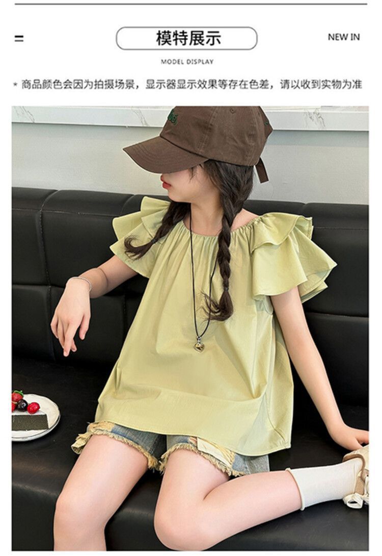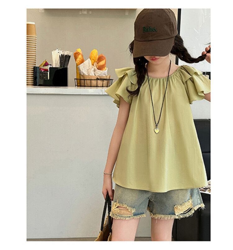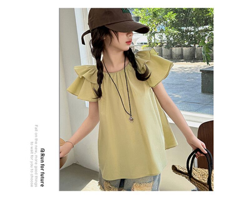 여자 여름 원피스 플라잉 슬리브 쉬폰 셔츠 2025 새로운 스타일 종다 어린이 서양식 한국 팬 인형 셔츠 귀여운 탑 티셔츠스토어 가기