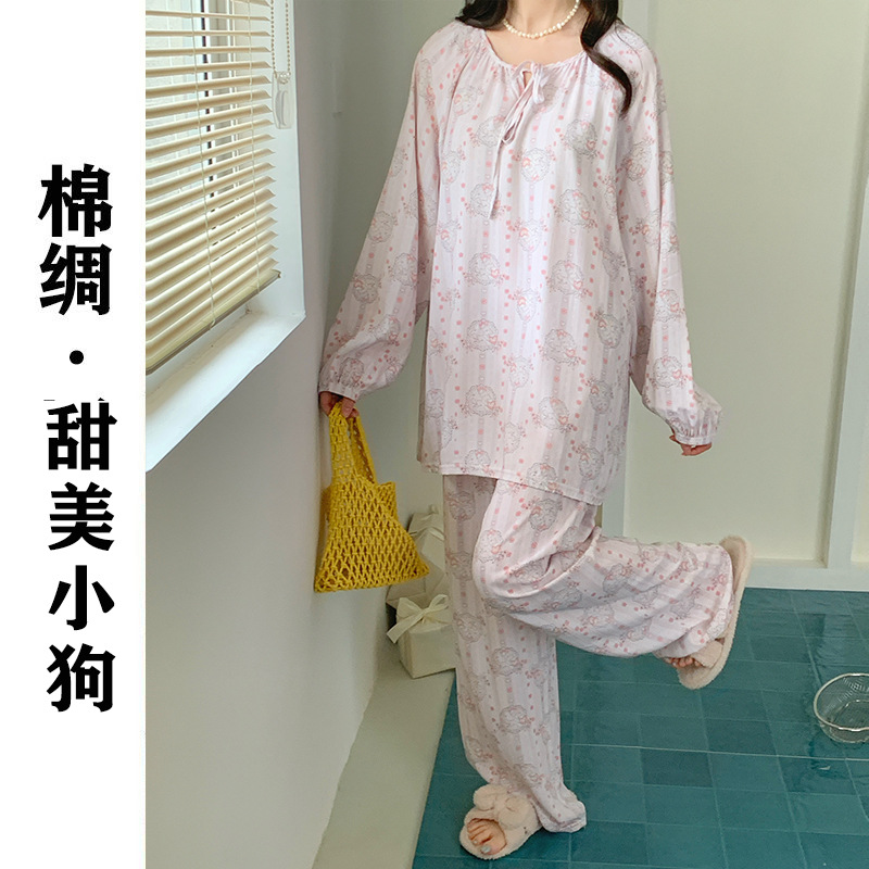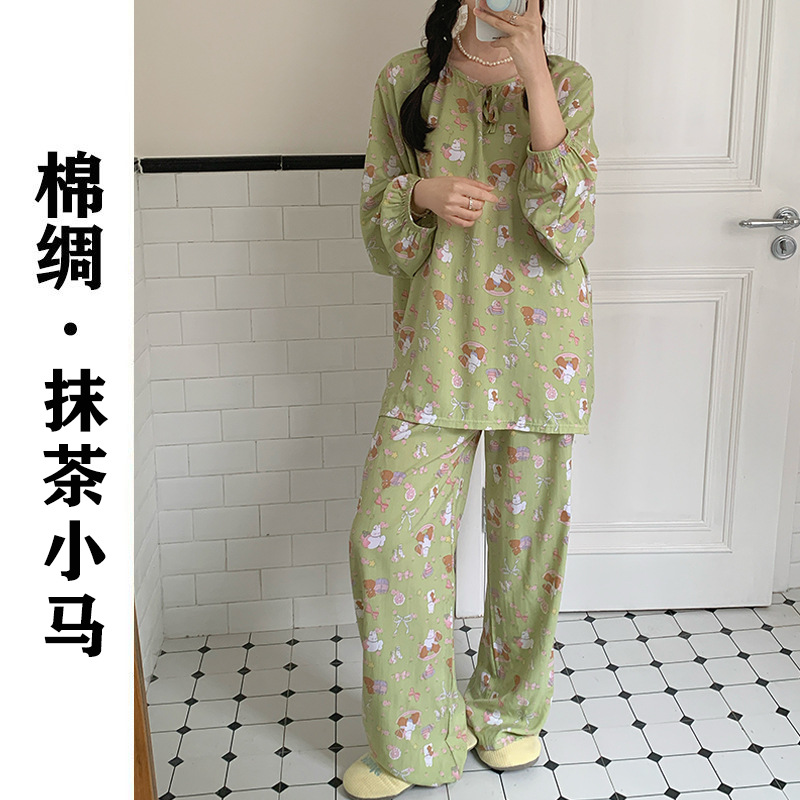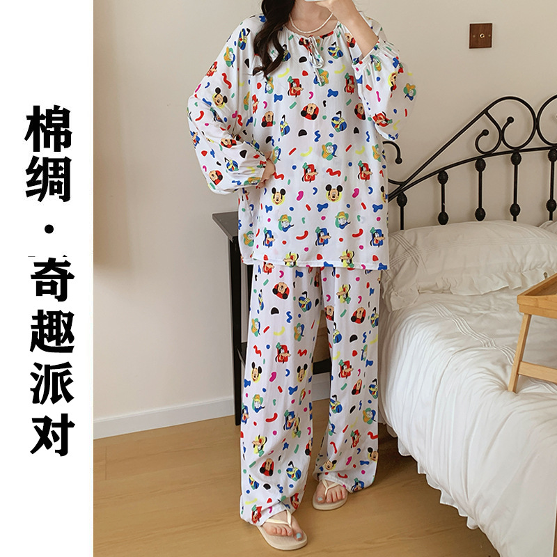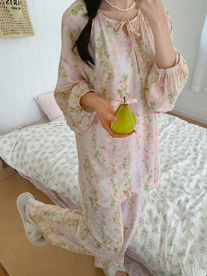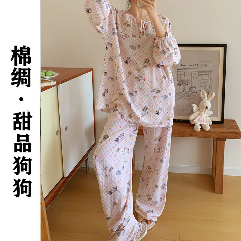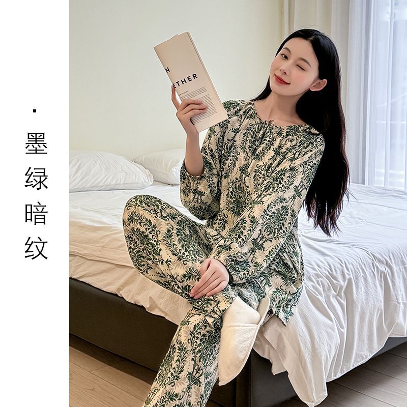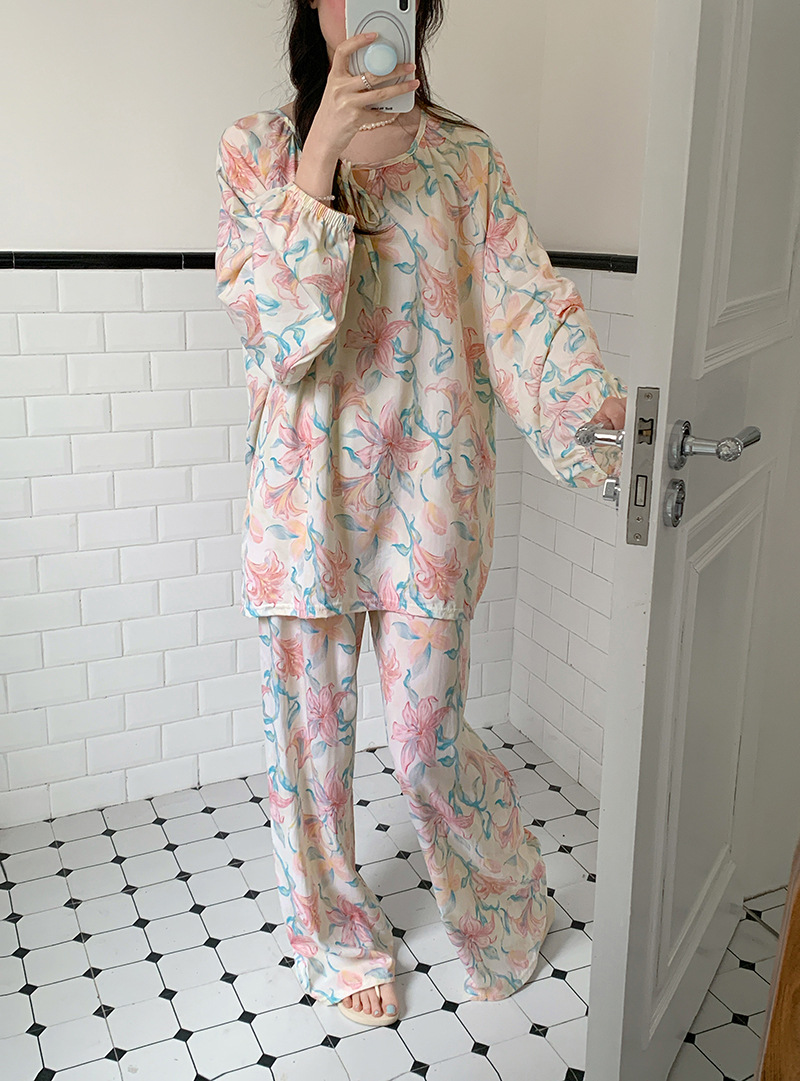 2026 청화자기 면 실크 잠옷 여성용 긴팔 긴바지 세트, 롱 스타일 얇은 중국풍 홈웨어 봄, 가을, 여름용스토어 가기
