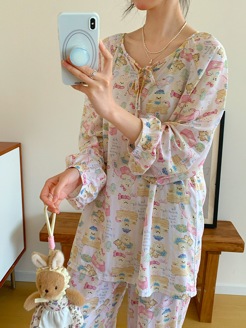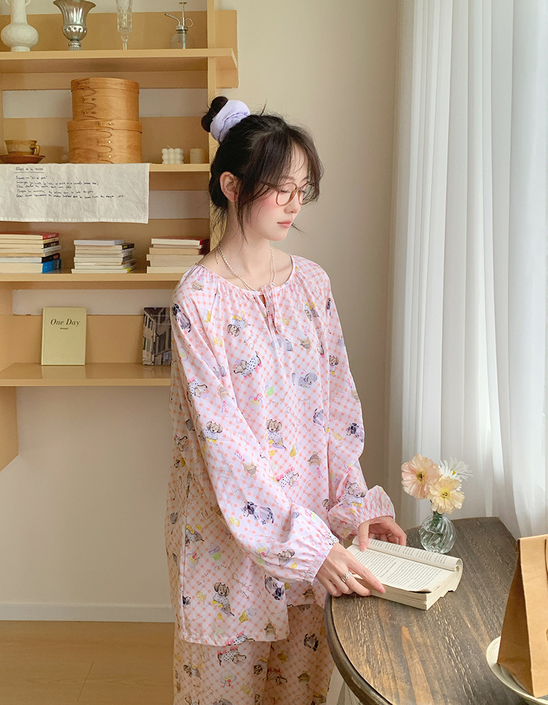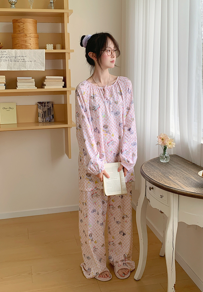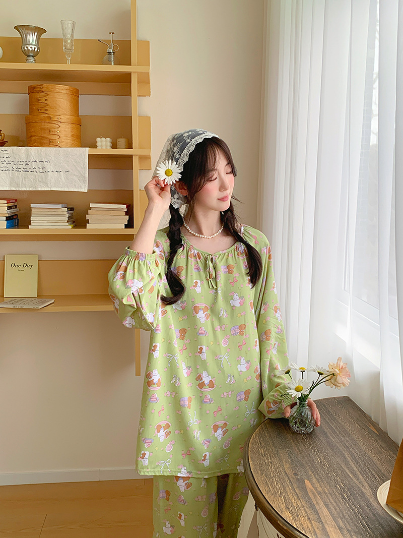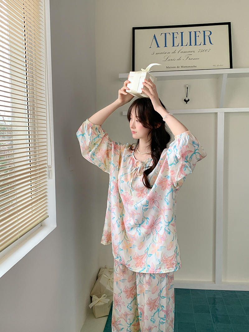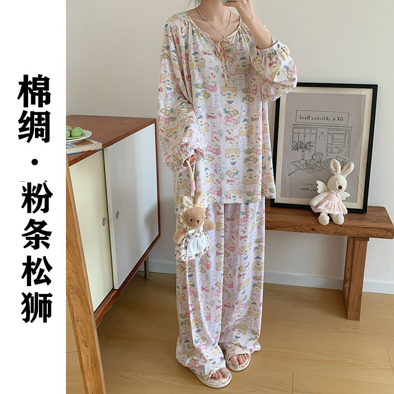 2026 청화자기 면 실크 잠옷 여성용 긴팔 긴바지 세트, 롱 스타일 얇은 중국풍 홈웨어 봄, 가을, 여름용스토어 가기