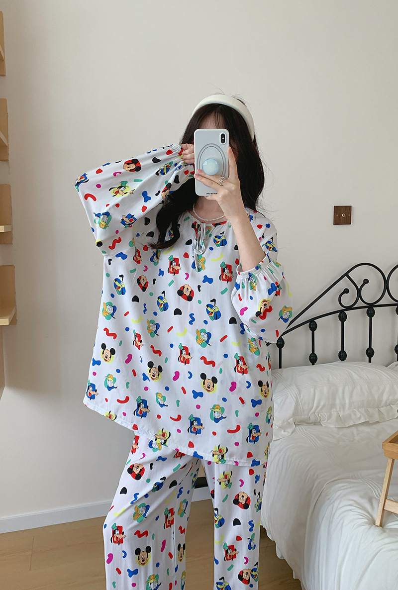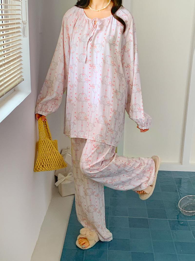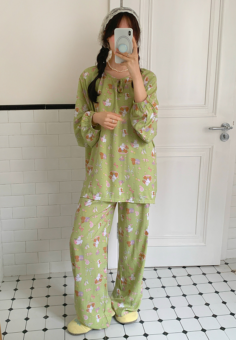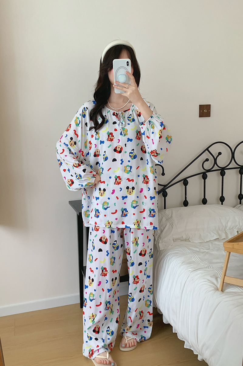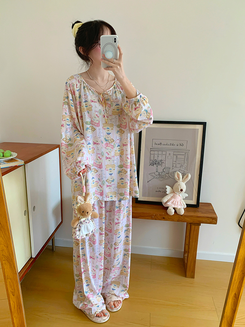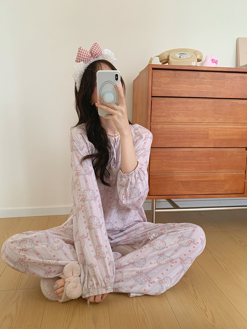2026 청화자기 면 실크 잠옷 여성용 긴팔 긴바지 세트, 롱 스타일 얇은 중국풍 홈웨어 봄, 가을, 여름용스토어 가기