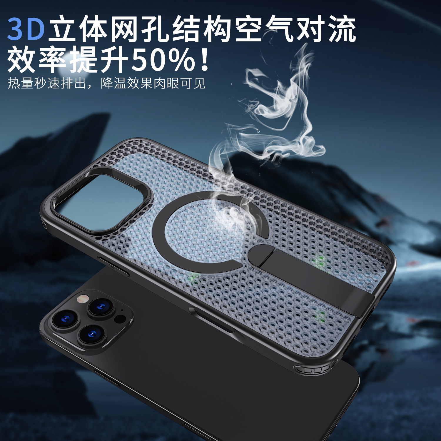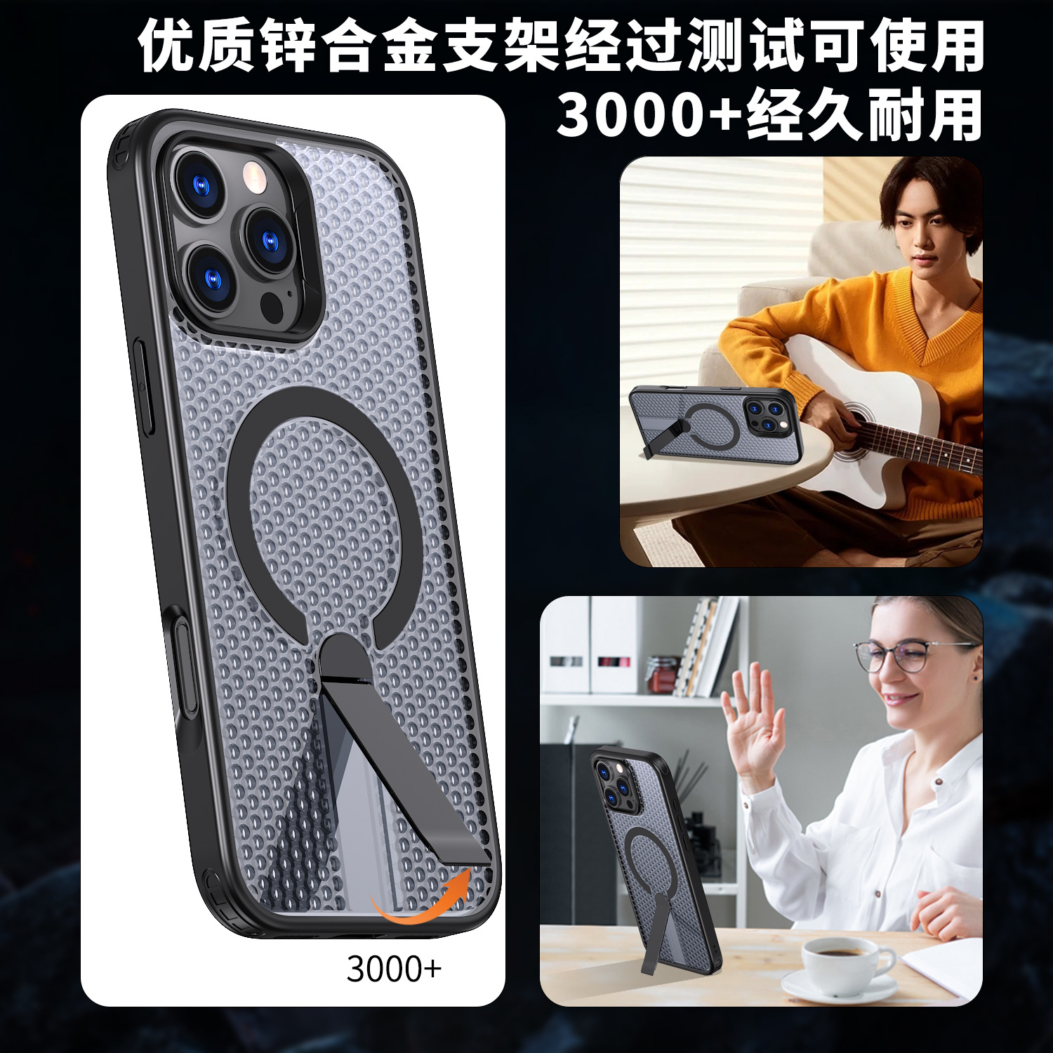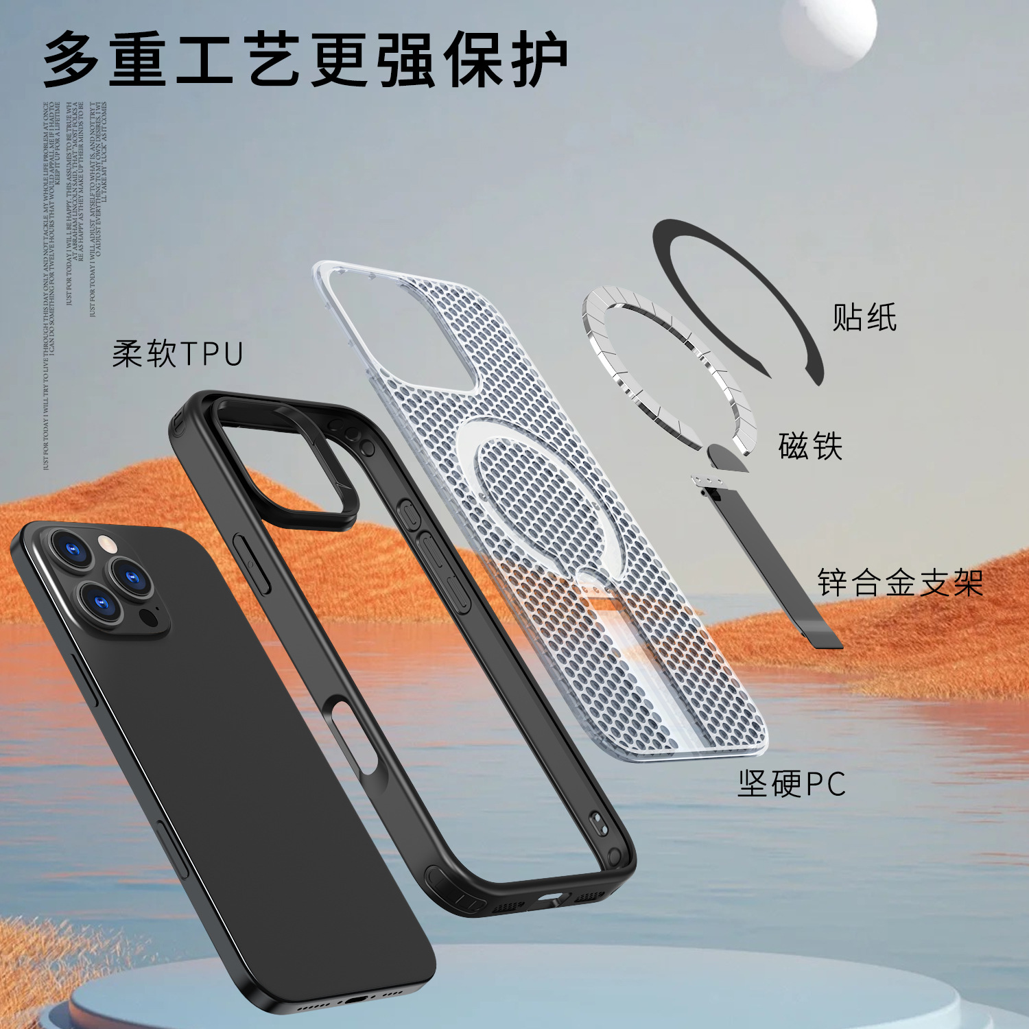 신형 애플 17 휴대폰 케이스 자석식 수직 스탠드 벌집 무늬 방열 방지 낙하 방지 아이폰17E 케이스