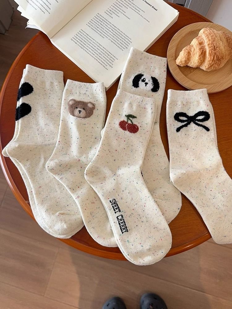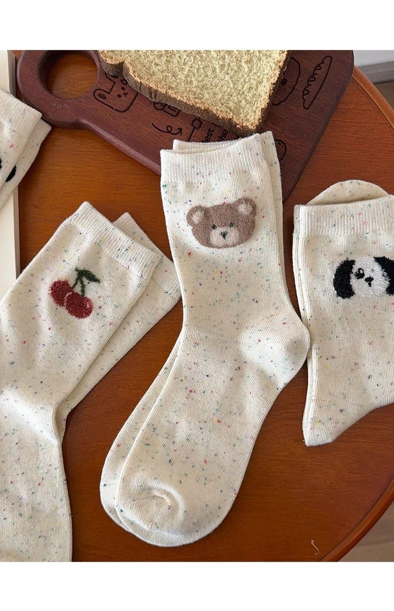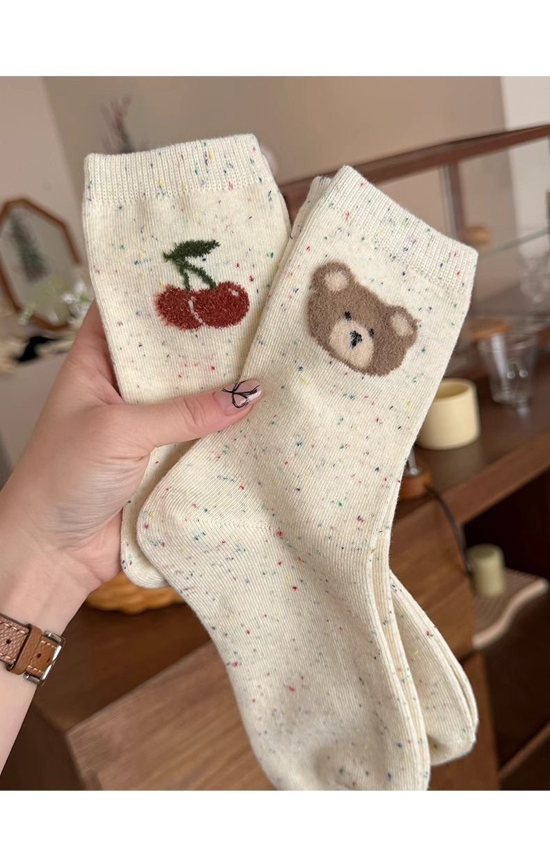 도트 원사 곰 아이들을위한 귀여운 미드 튜브 스택 양말 다채로운 잠긴 체리 활 한국 INS 강아지 양말스토어 가기