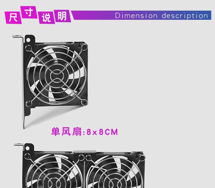 데스크탑 컴퓨터 호스트 섀시 PCI 비트 브래킷 그래픽 컴패니언 팬 방열판 냉각 8CM9CM 음소거