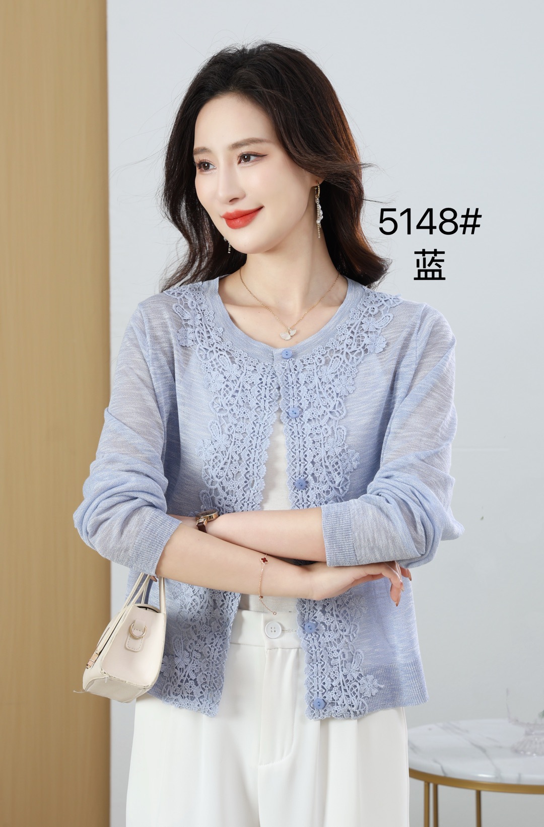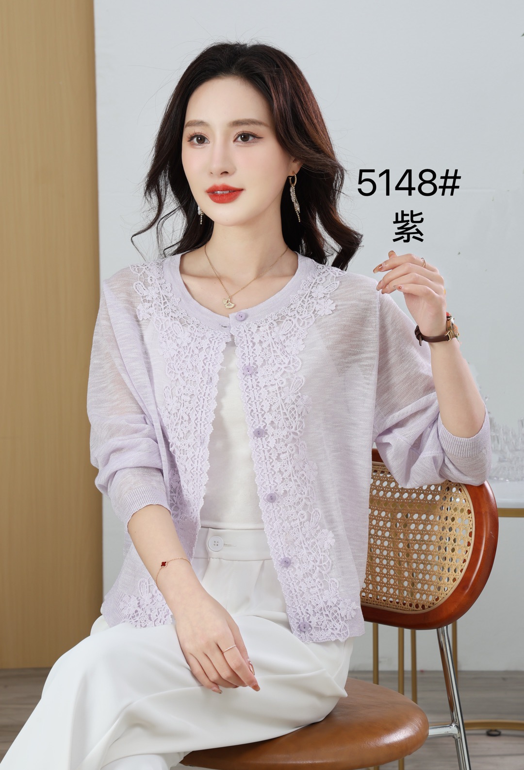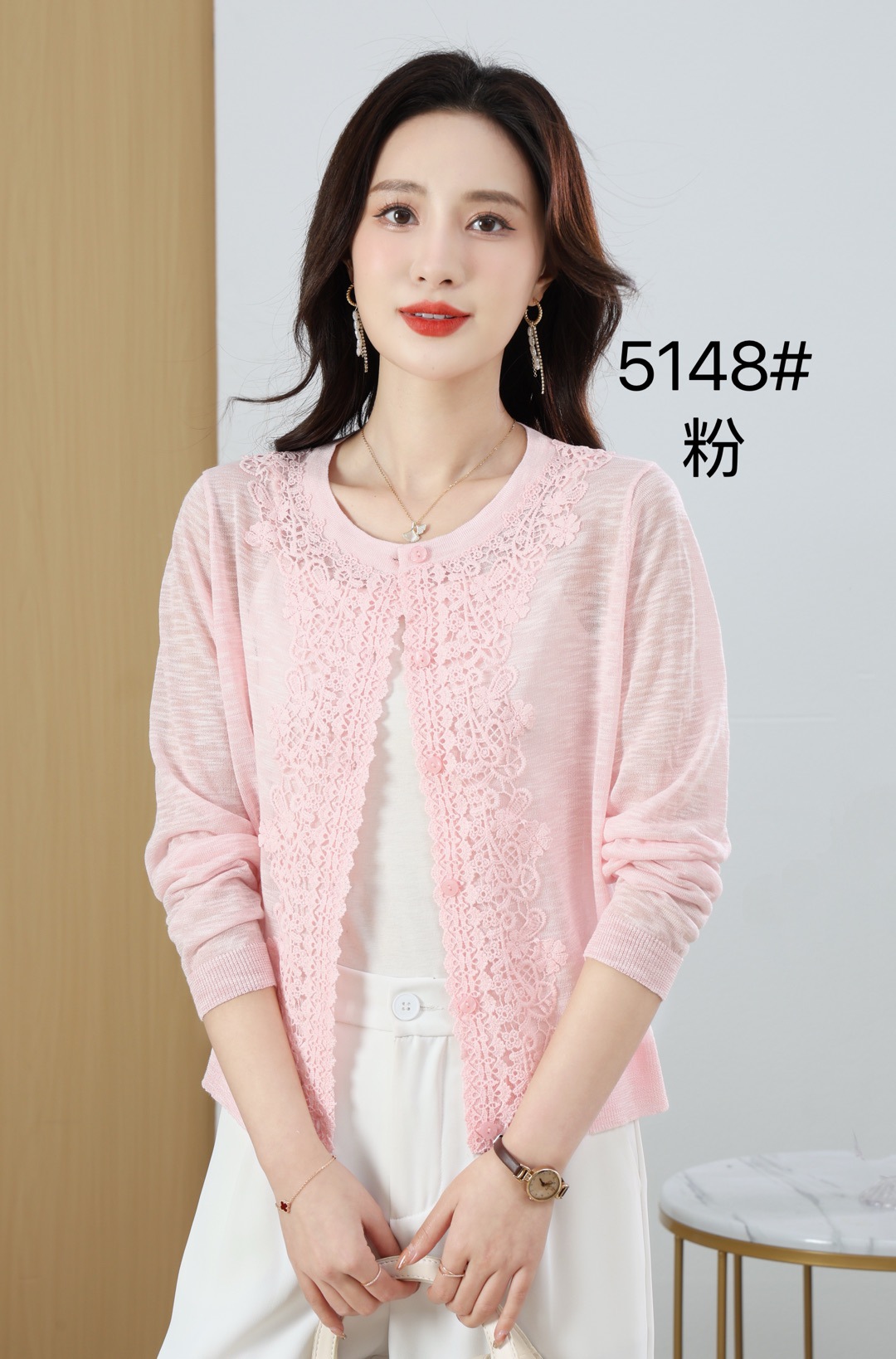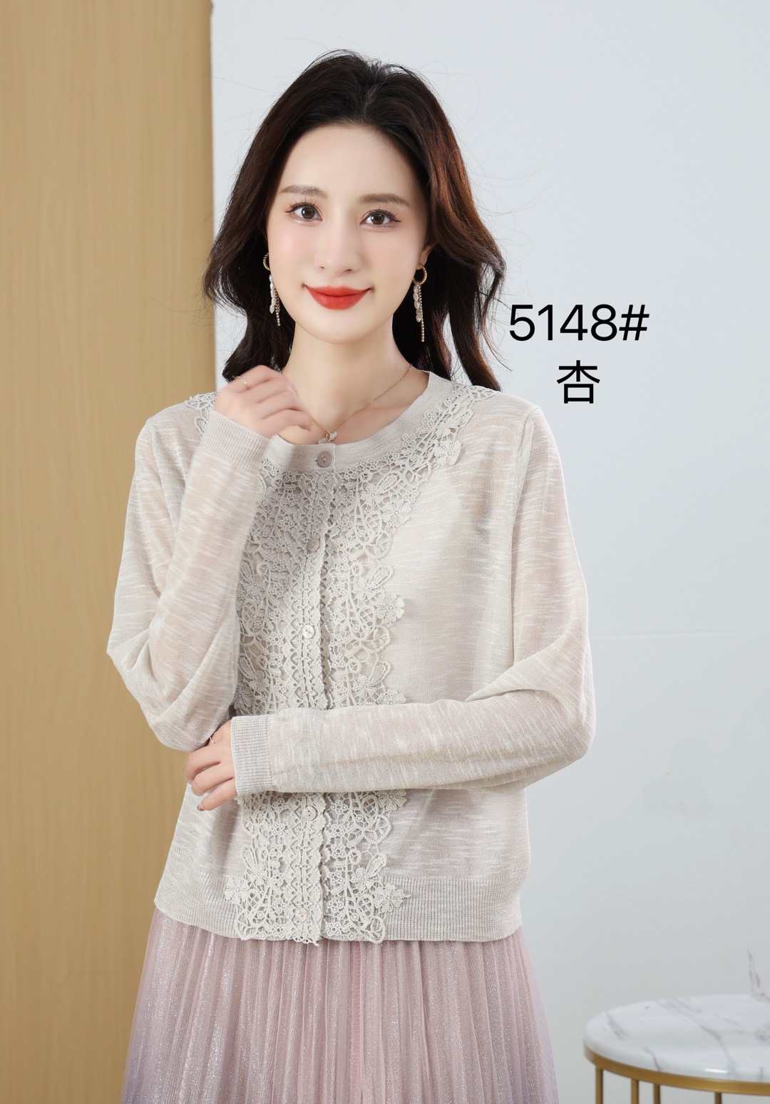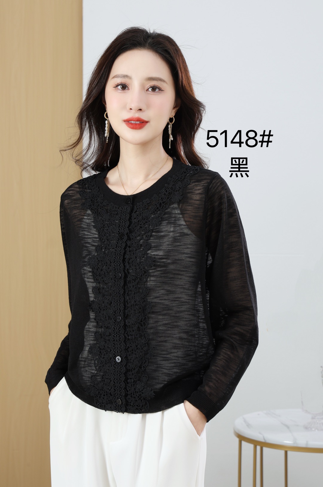 봄과 여름 새로운 라운드 넥 리넨 얇은 니트 스웨터 여성용 긴팔 할로우 썬 스크린 스웨터 에어컨 스웨터스토어 가기
