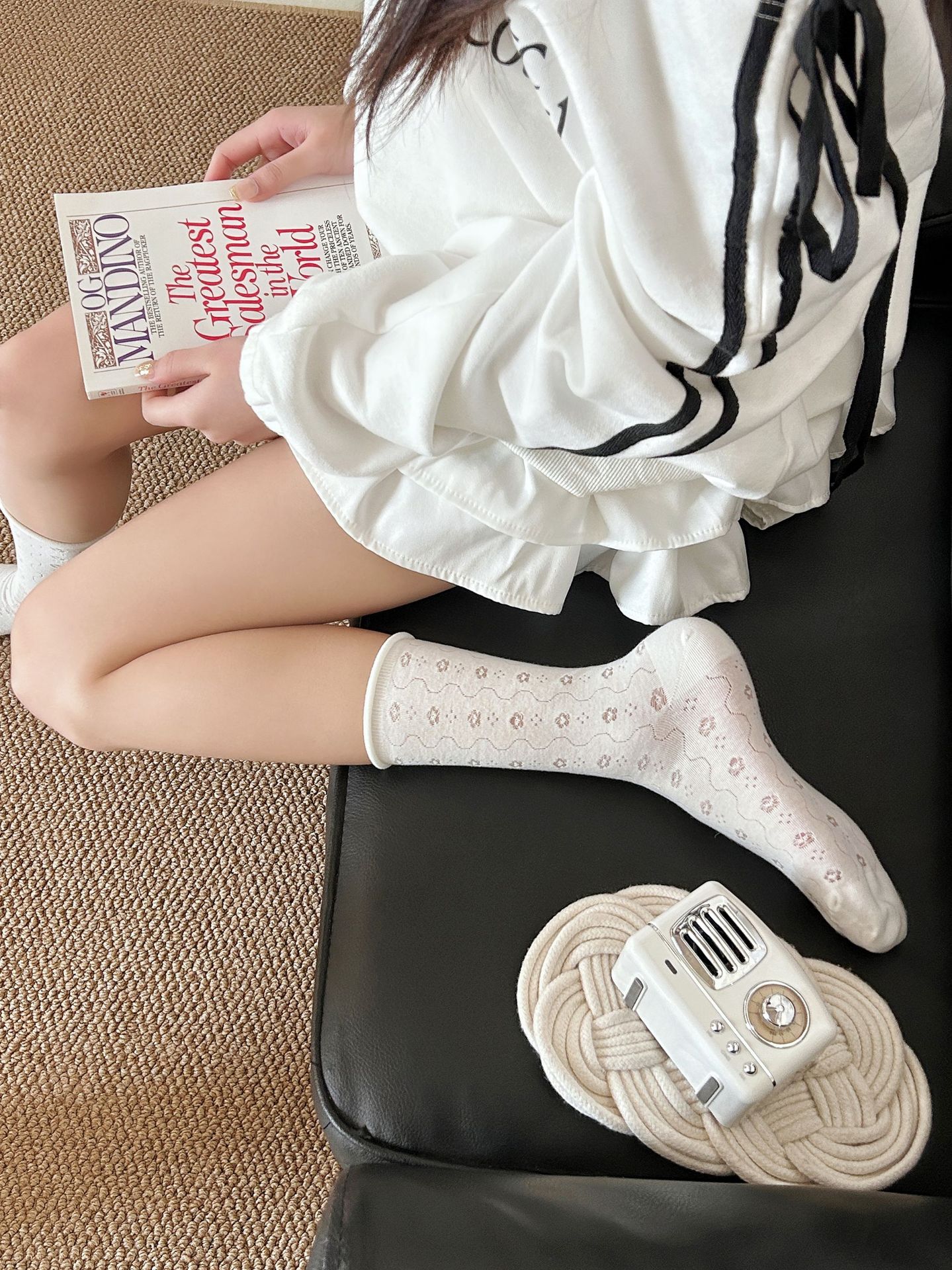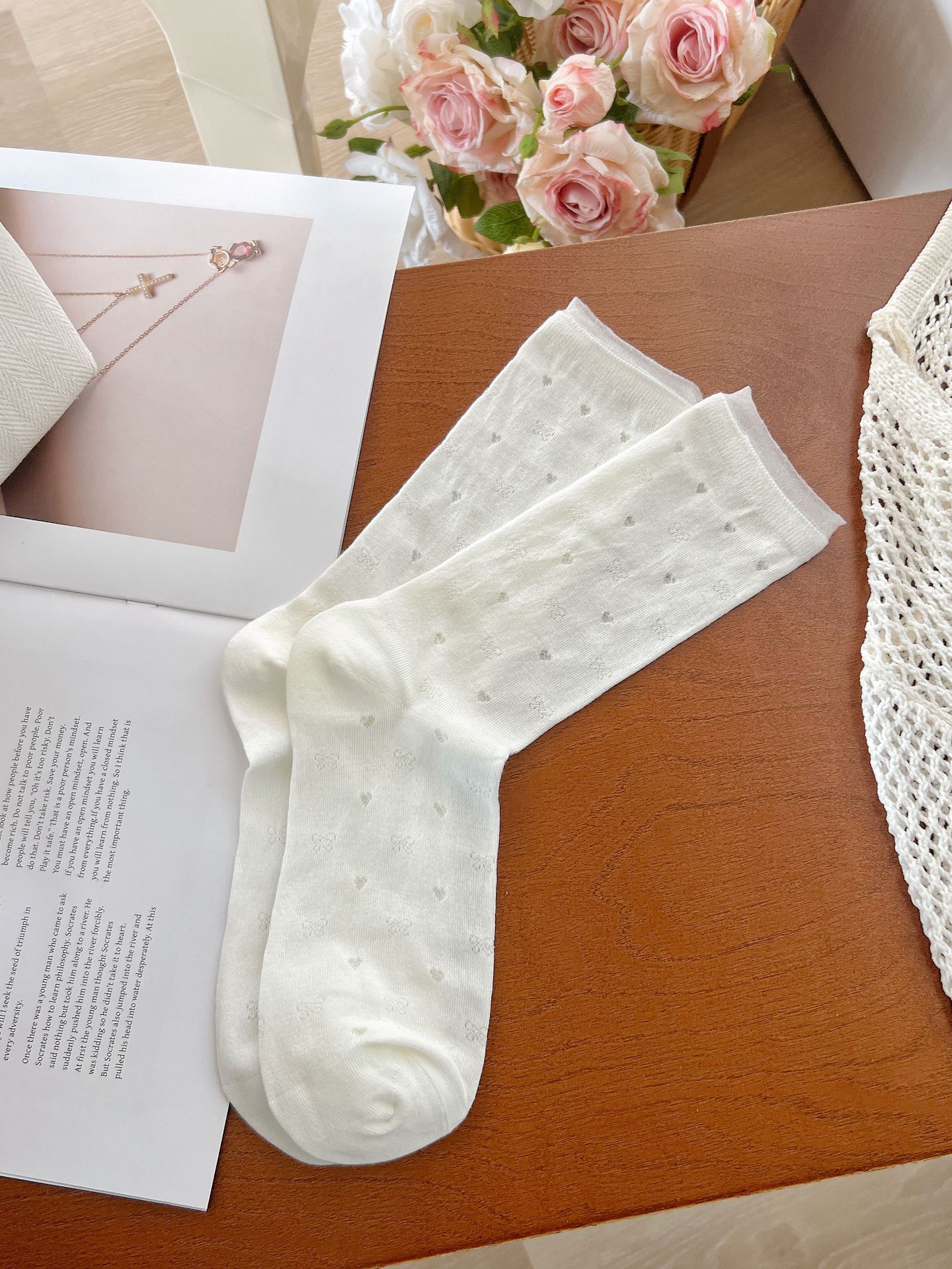 여름 여성용 귀부분 순면 양말, 얇은 종아리 중간 양말, 속이 빈 양말, 단일 신발이 있는 트렌디한 JK 양말