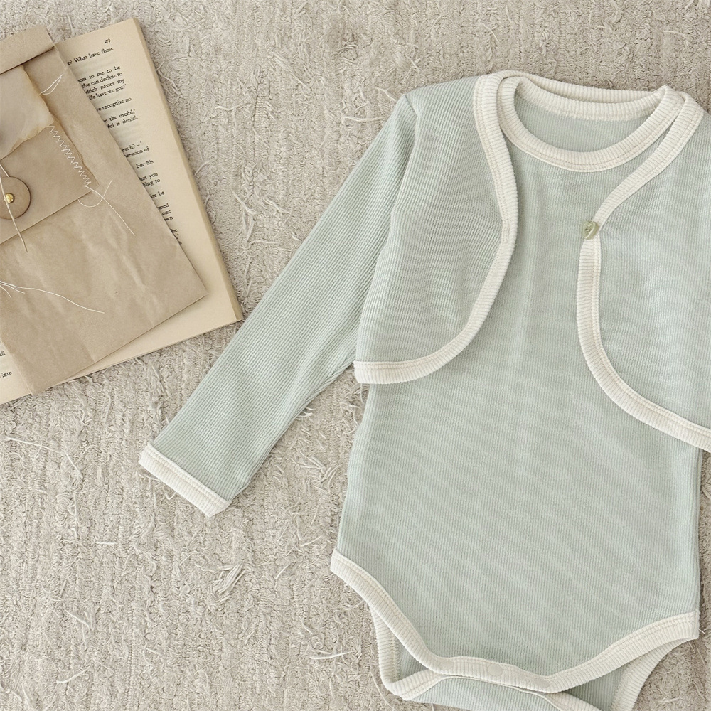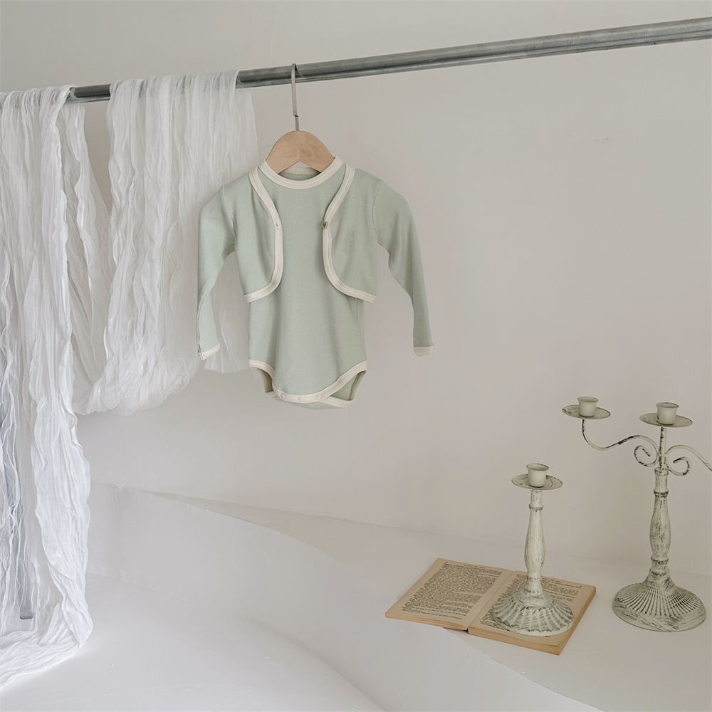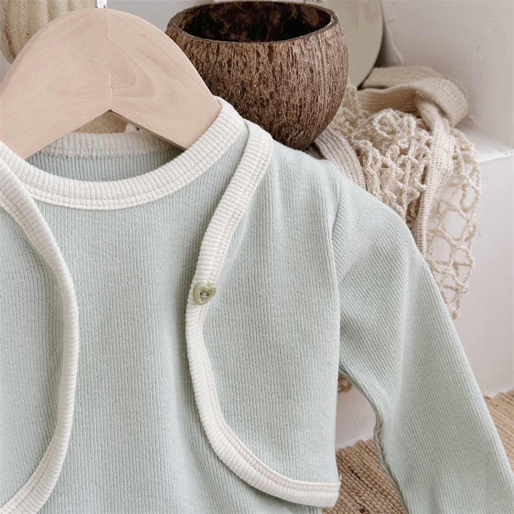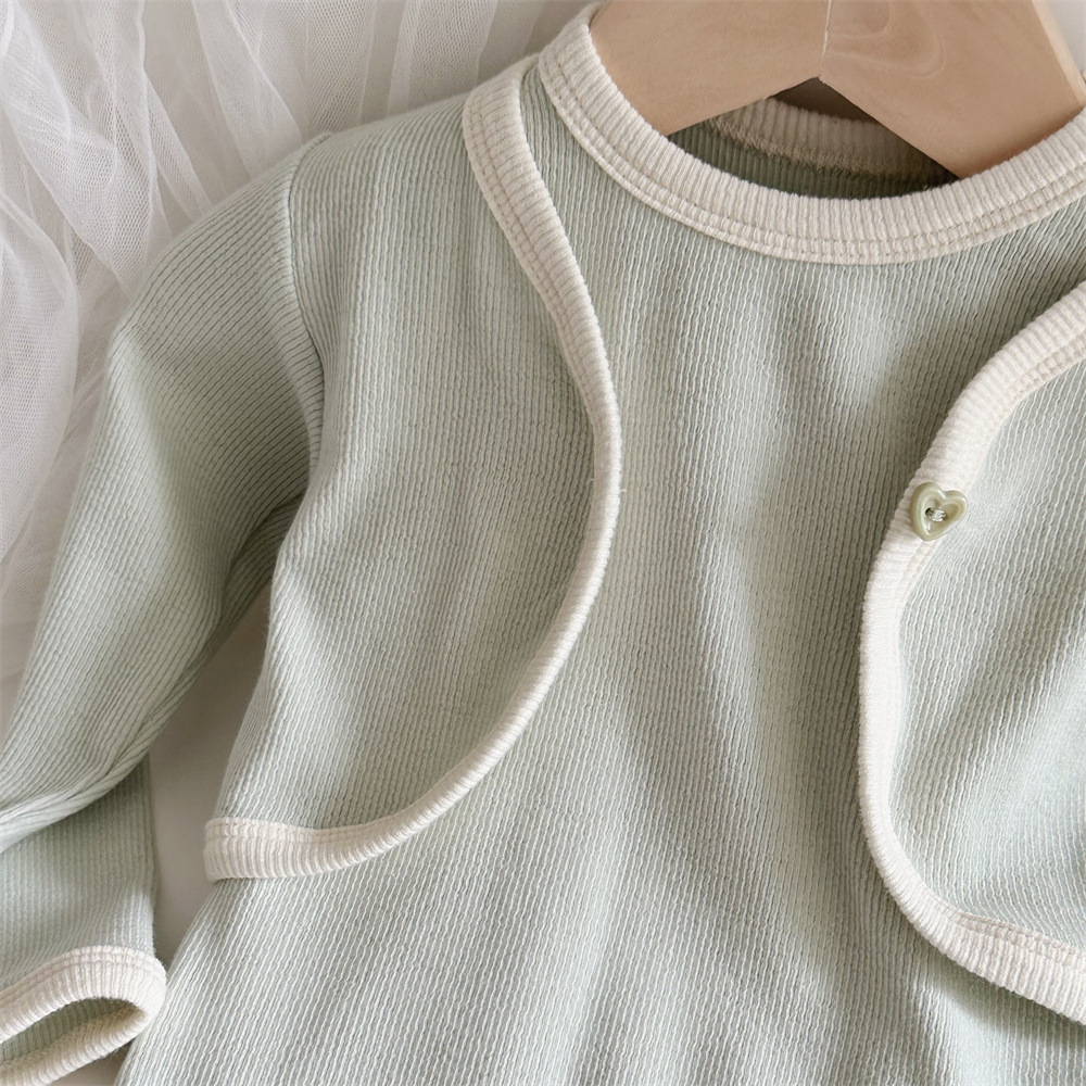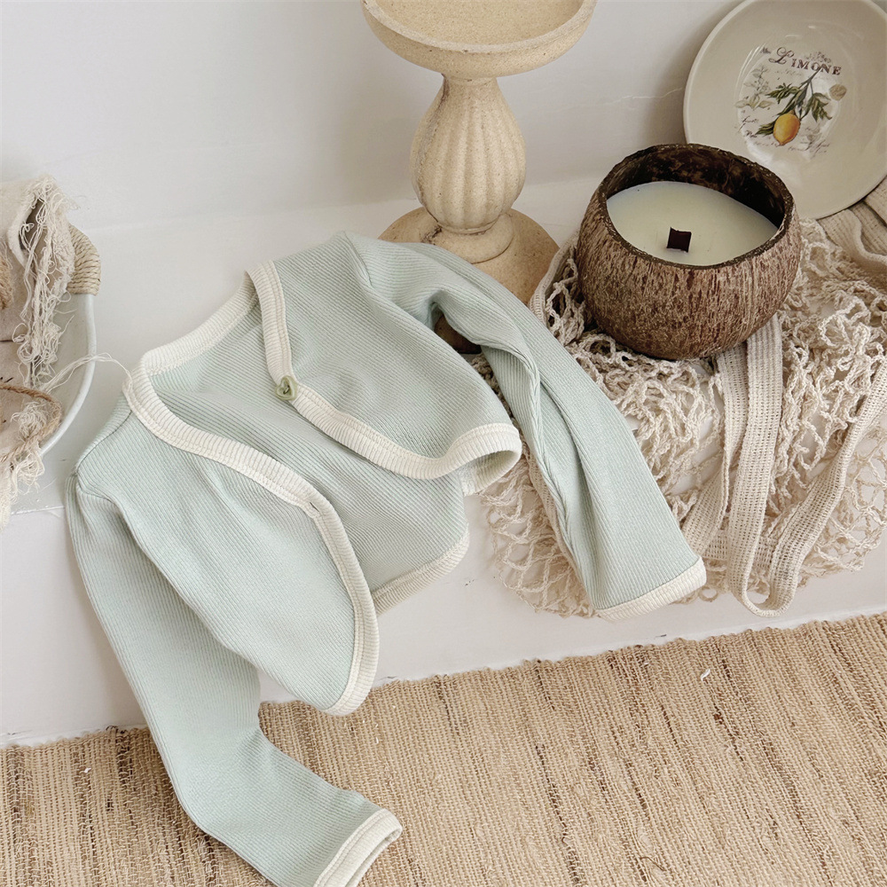 INS 유아 봄과 가을 컬러 매칭 조끼 Hayi 긴 소매 사랑 버튼 작은 재킷 투피스 세트 아기 소녀 세트