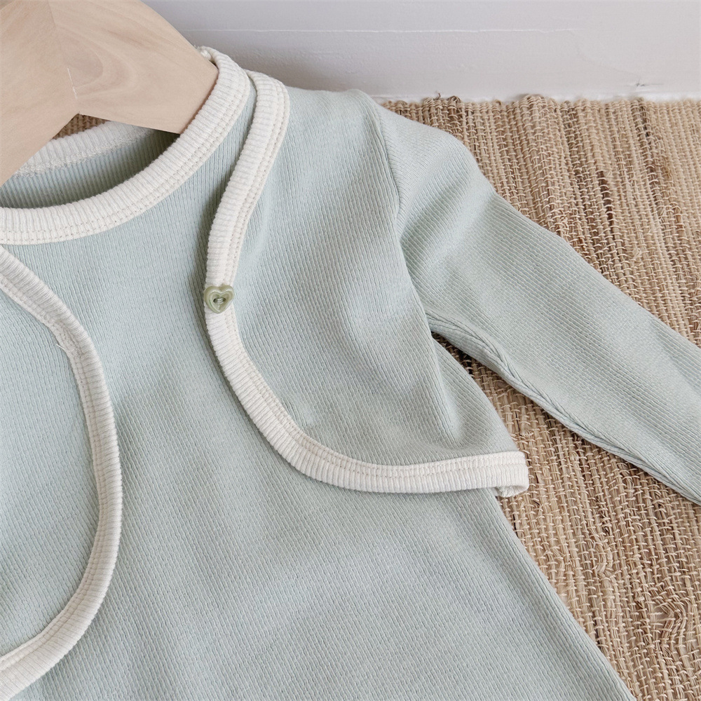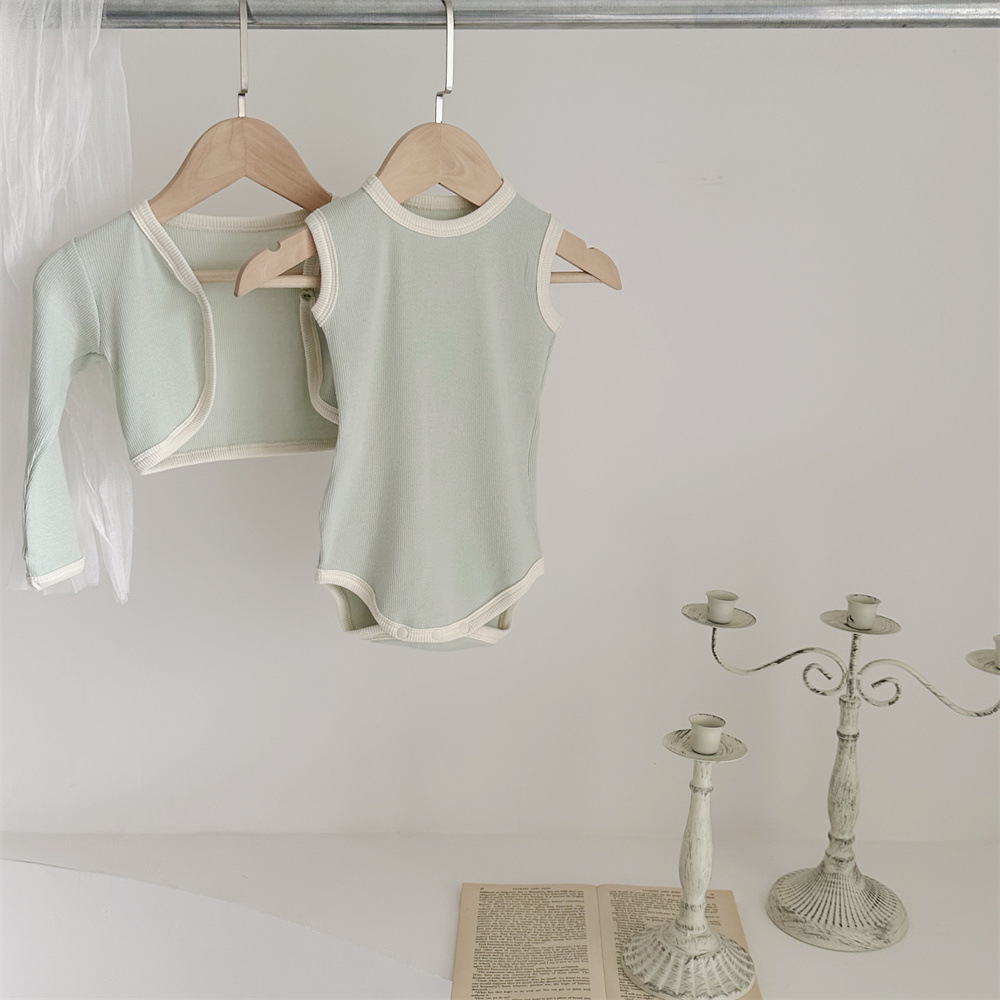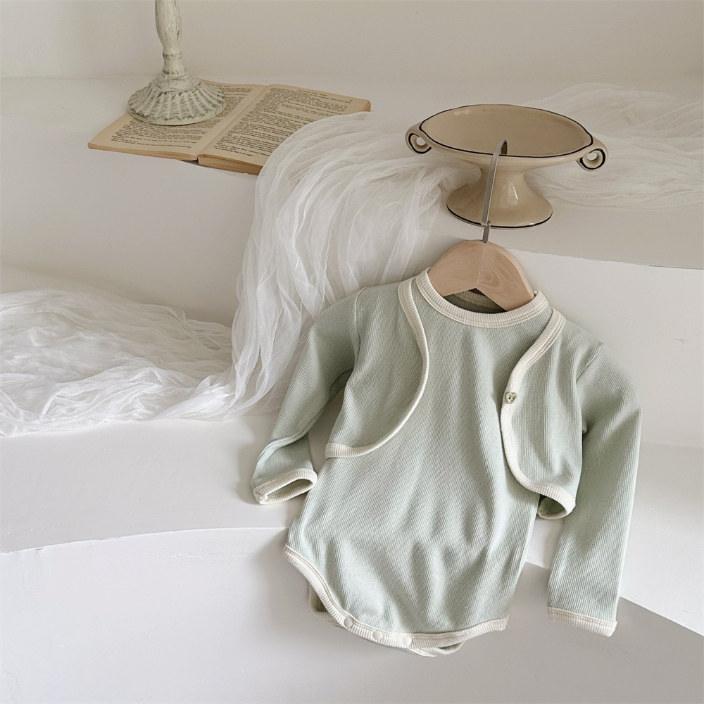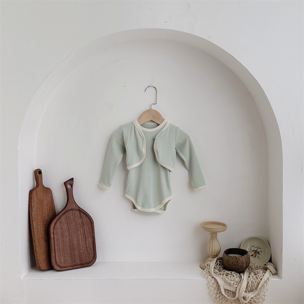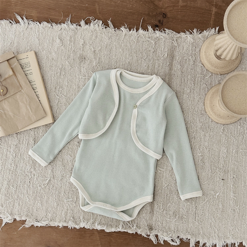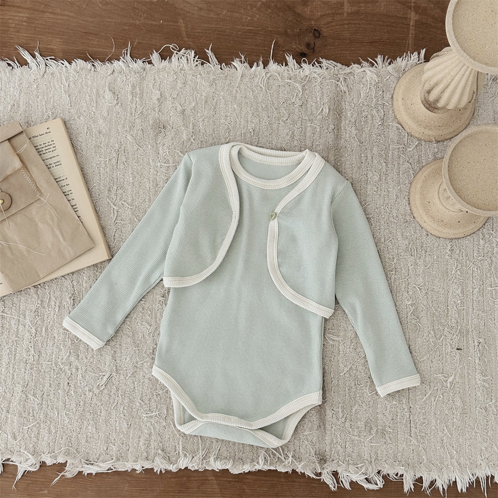 INS 유아 봄과 가을 컬러 매칭 조끼 Hayi 긴 소매 사랑 버튼 작은 재킷 투피스 세트 아기 소녀 세트
