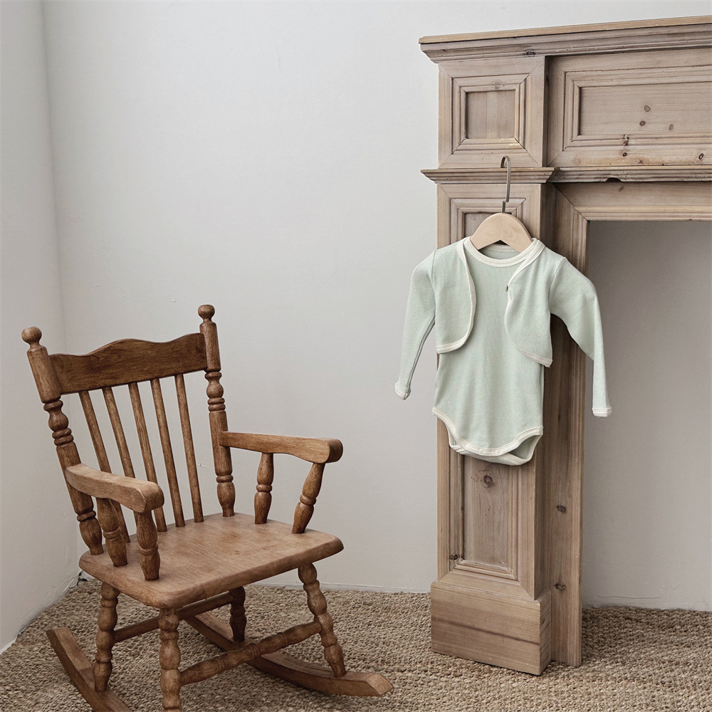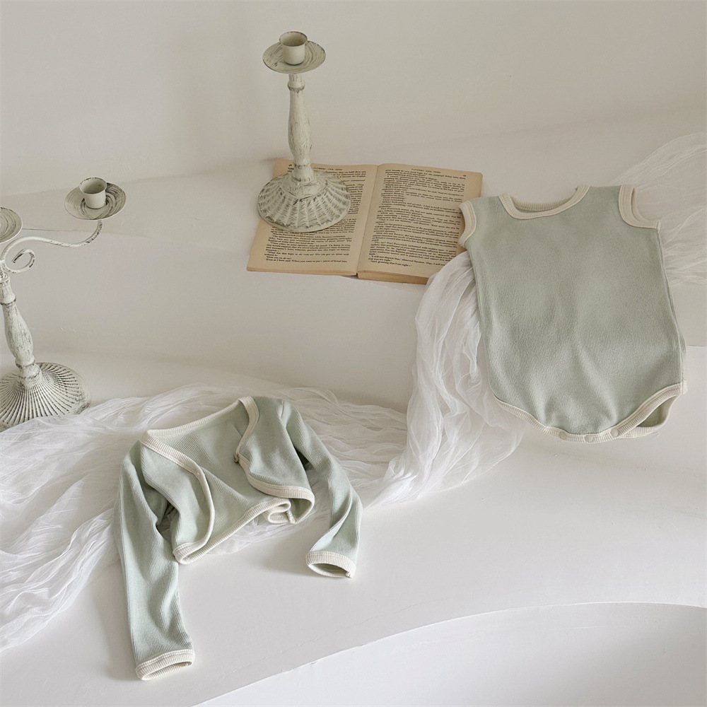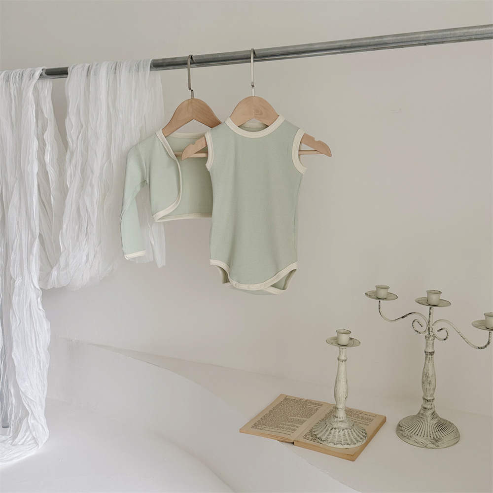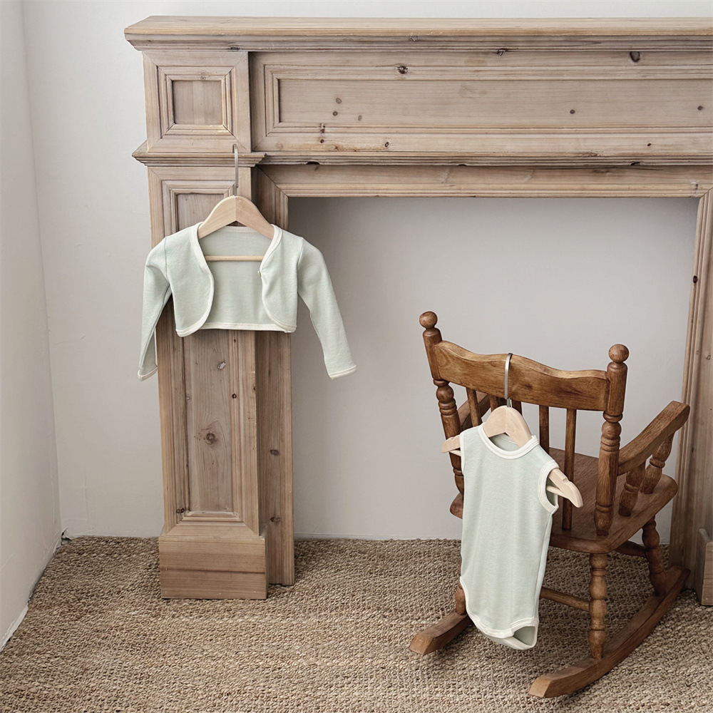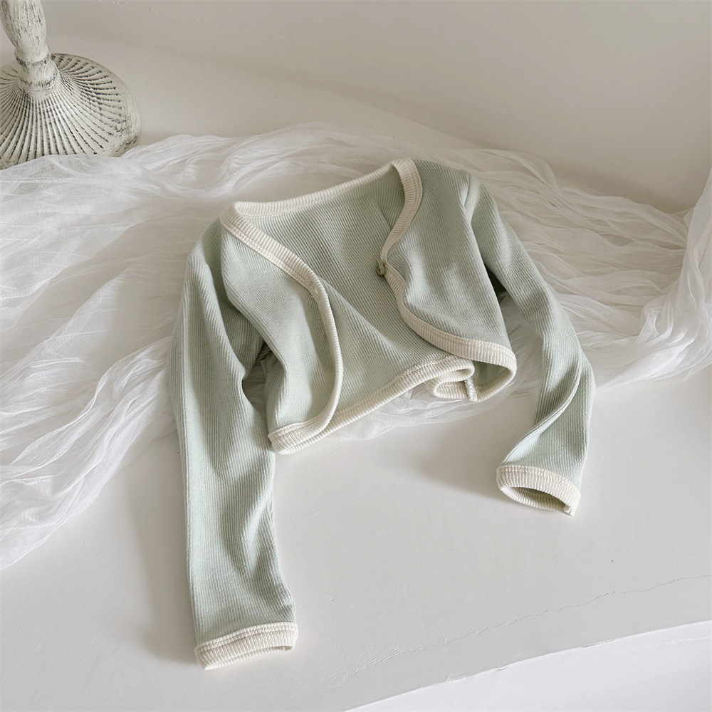 INS 유아 봄과 가을 컬러 매칭 조끼 Hayi 긴 소매 사랑 버튼 작은 재킷 투피스 세트 아기 소녀 세트