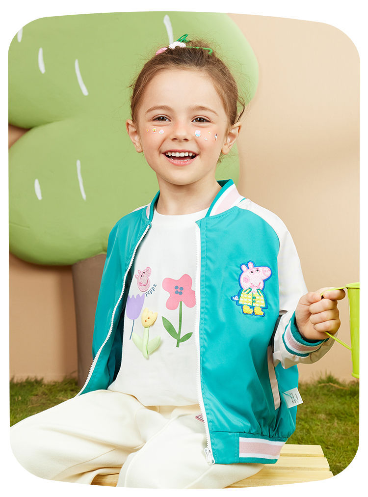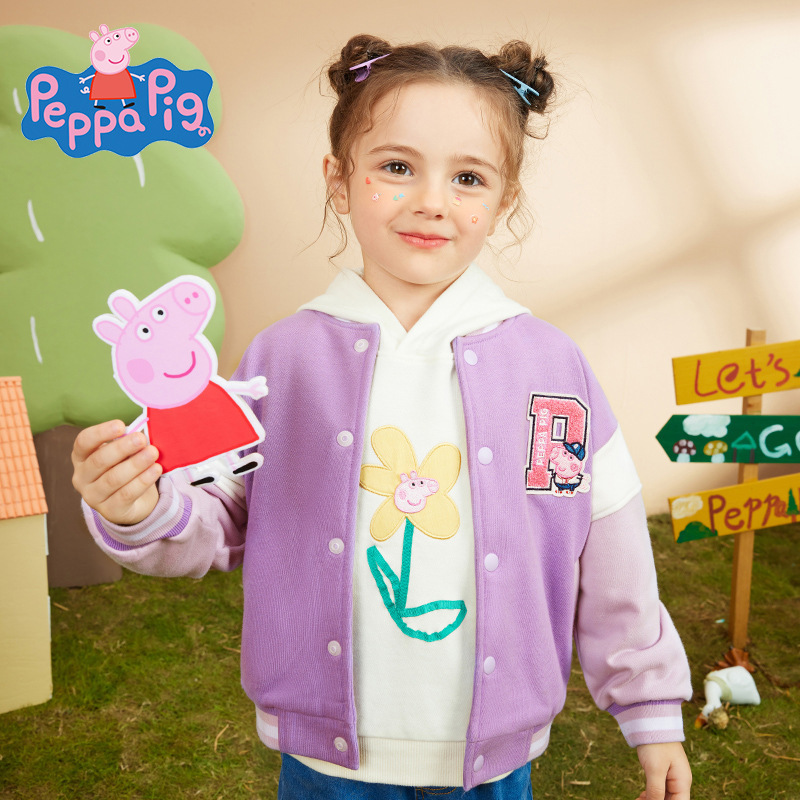 돼지 고기 페이지 아기 소녀 코트 봄 새로운 어린이 서양 스타일 봄과 가을 어린이 짠 재킷 캐주얼 야구 세트