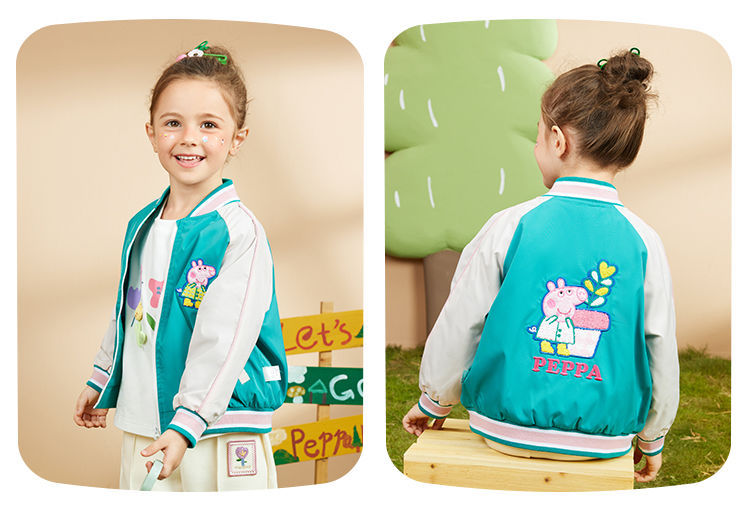 돼지 고기 페이지 아기 소녀 코트 봄 새로운 어린이 서양 스타일 봄과 가을 어린이 짠 재킷 캐주얼 야구 세트스토어 가기