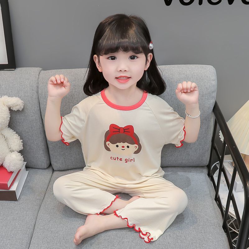 여자 모달 잠옷 여름 새로운 여성의 큰 아기 얇은 어린이 반팔 에어컨 홈 의류 세트스토어 가기