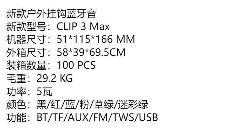 대외 무역 클립 3max 무선 블루투스 스피커 스포츠 야외 후크 서브 우퍼 휴대용 작은 오디오 선물스토어 가기