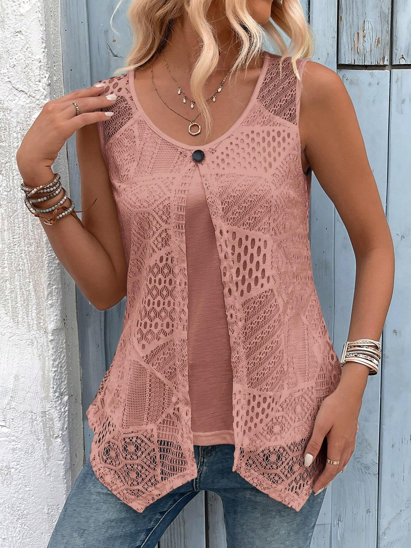 2025 아마존 독립 역 유럽 및 미국 국경 조끼 장식 버클 메쉬 민소매 가짜 두 조각