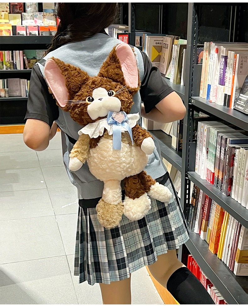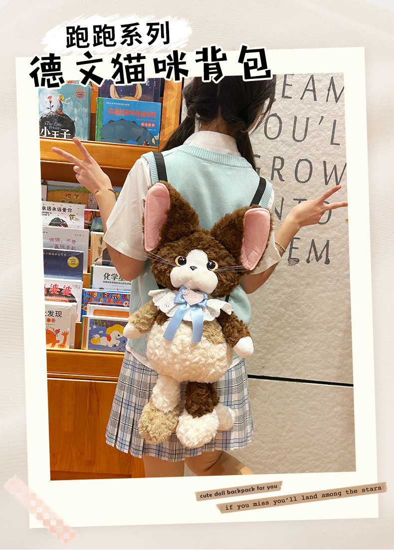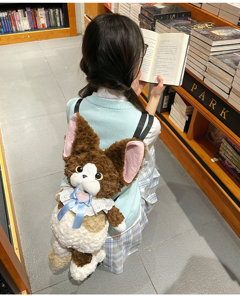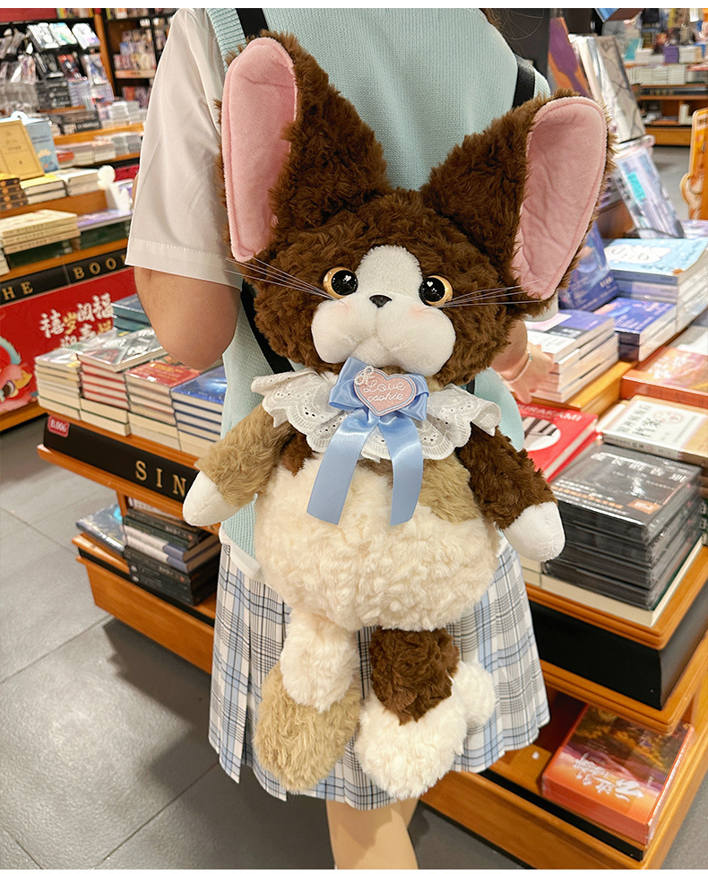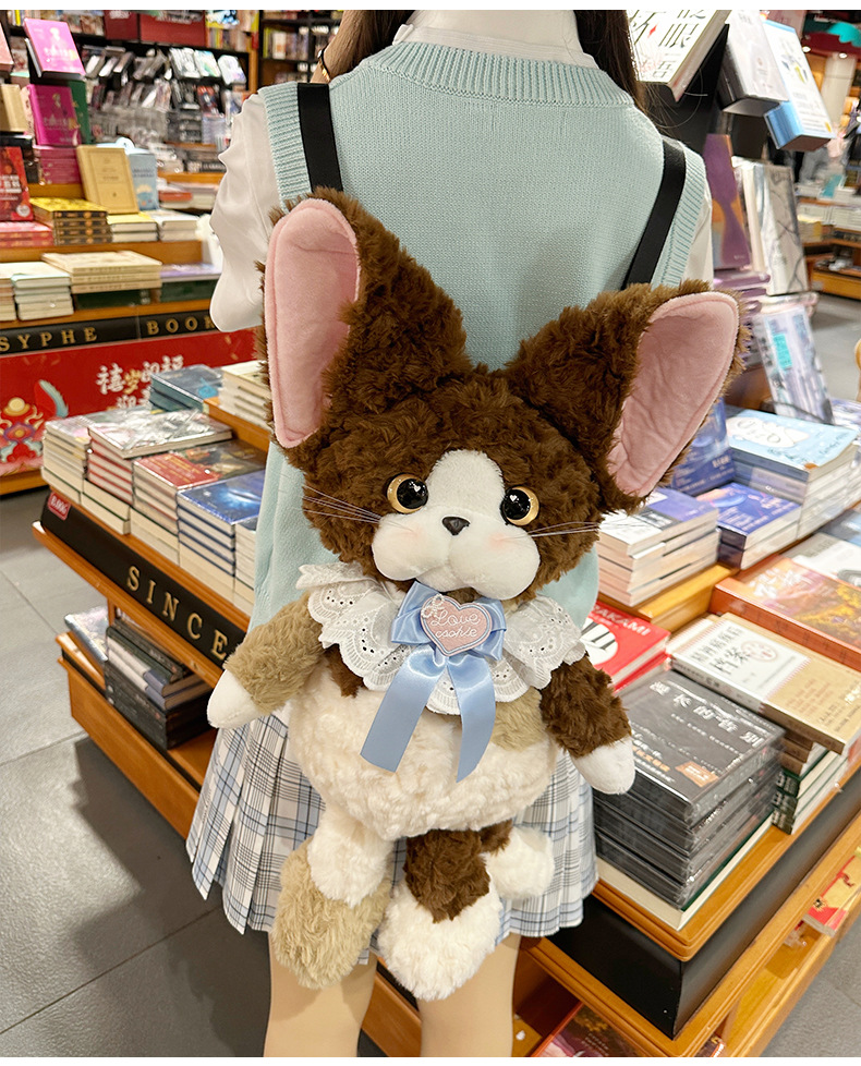 여자 베개 인형 봉제 인형 장난감 생일 선물을 위해 달리는 독일 곱슬 고양이 인형 고양이 인형 배낭스토어 가기