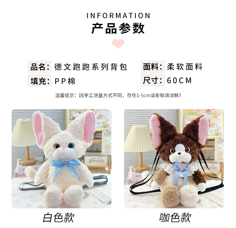 여자 베개 인형 봉제 인형 장난감 생일 선물을 위해 달리는 독일 곱슬 고양이 인형 고양이 인형 배낭