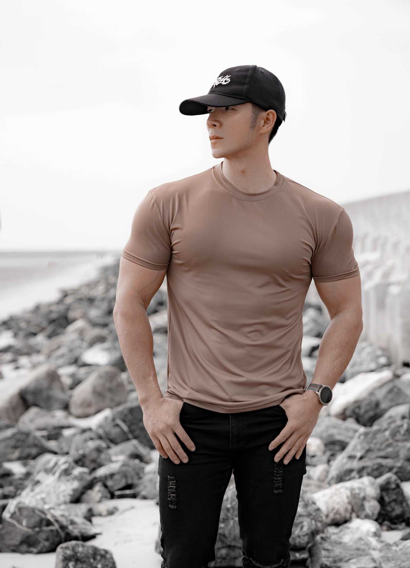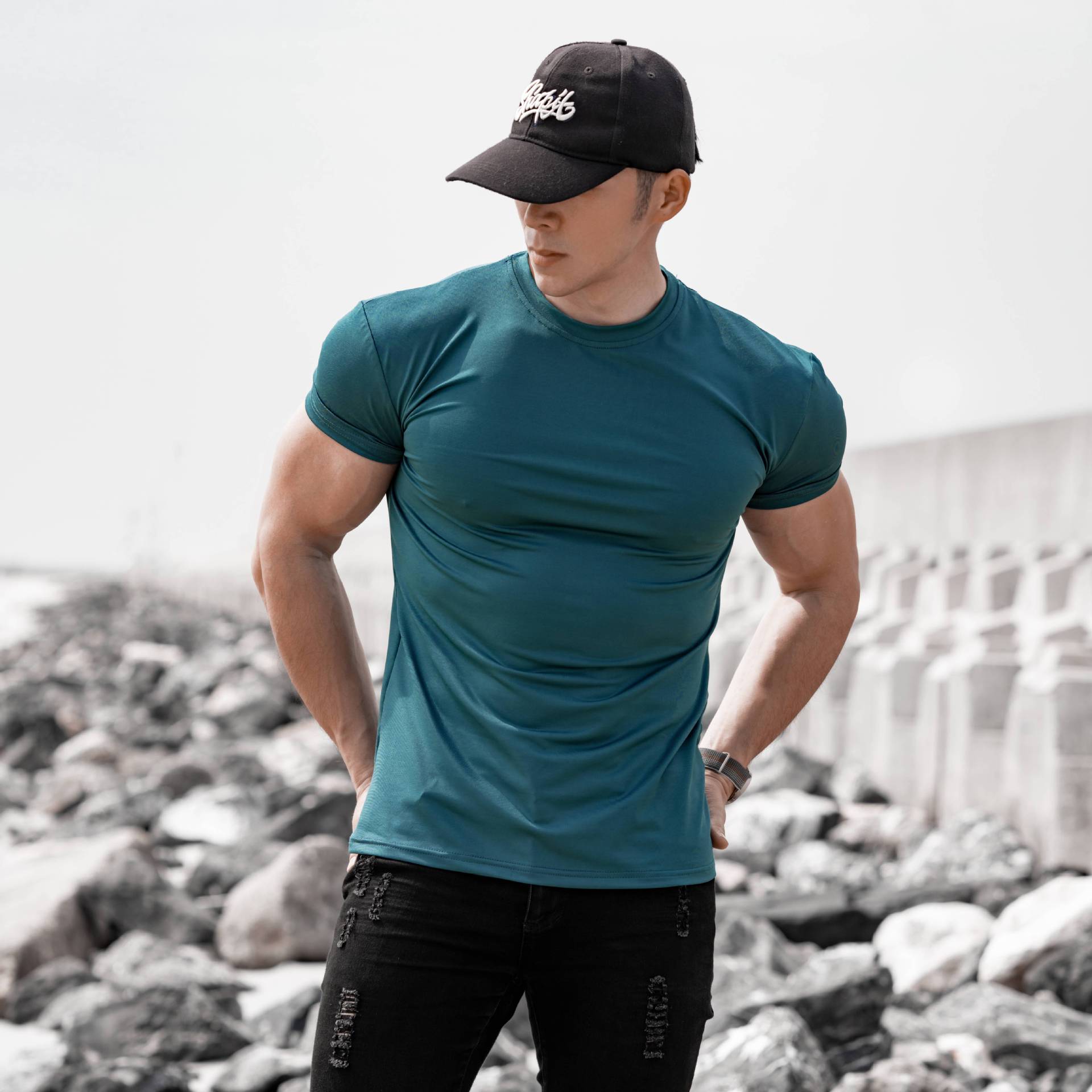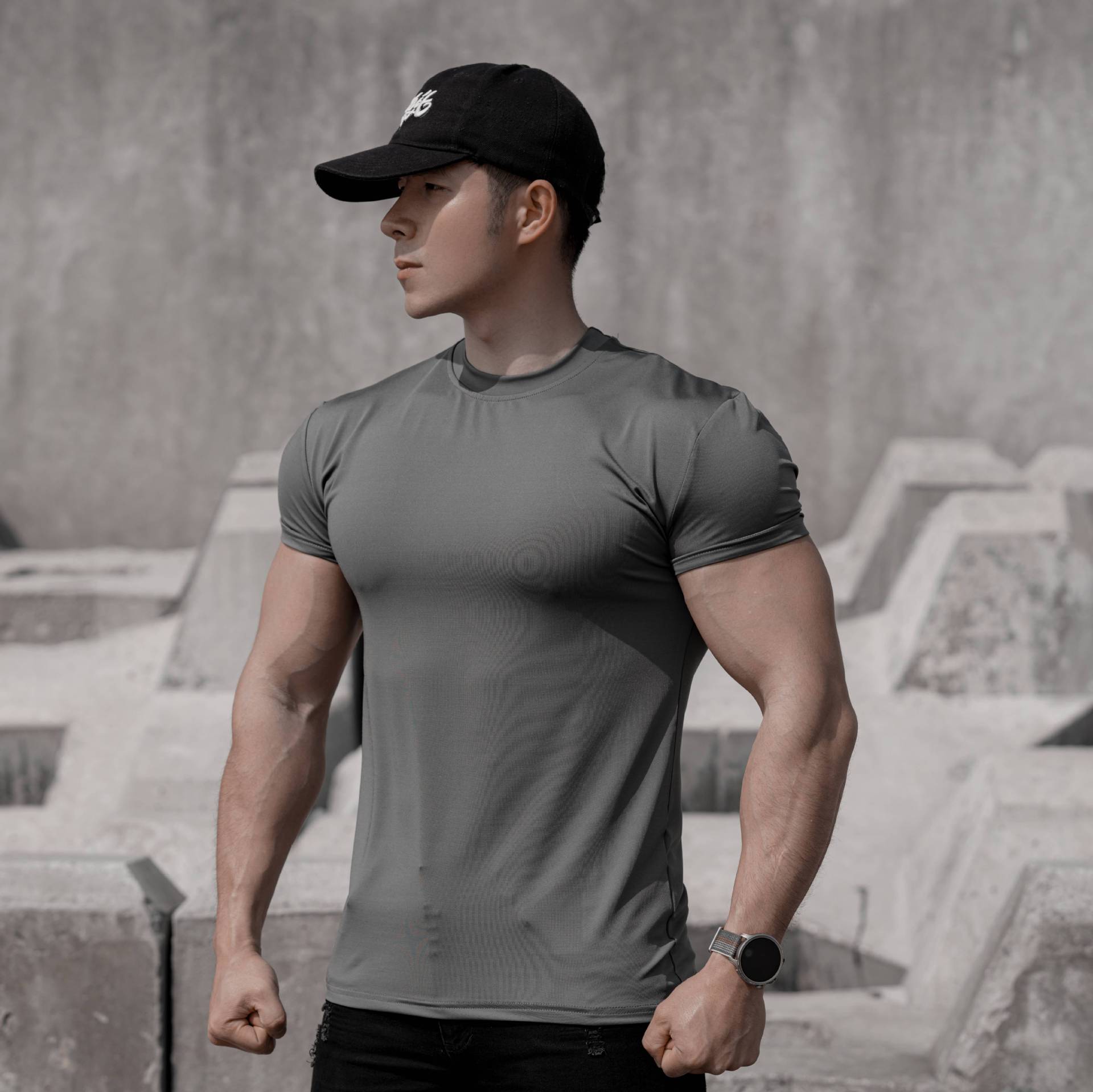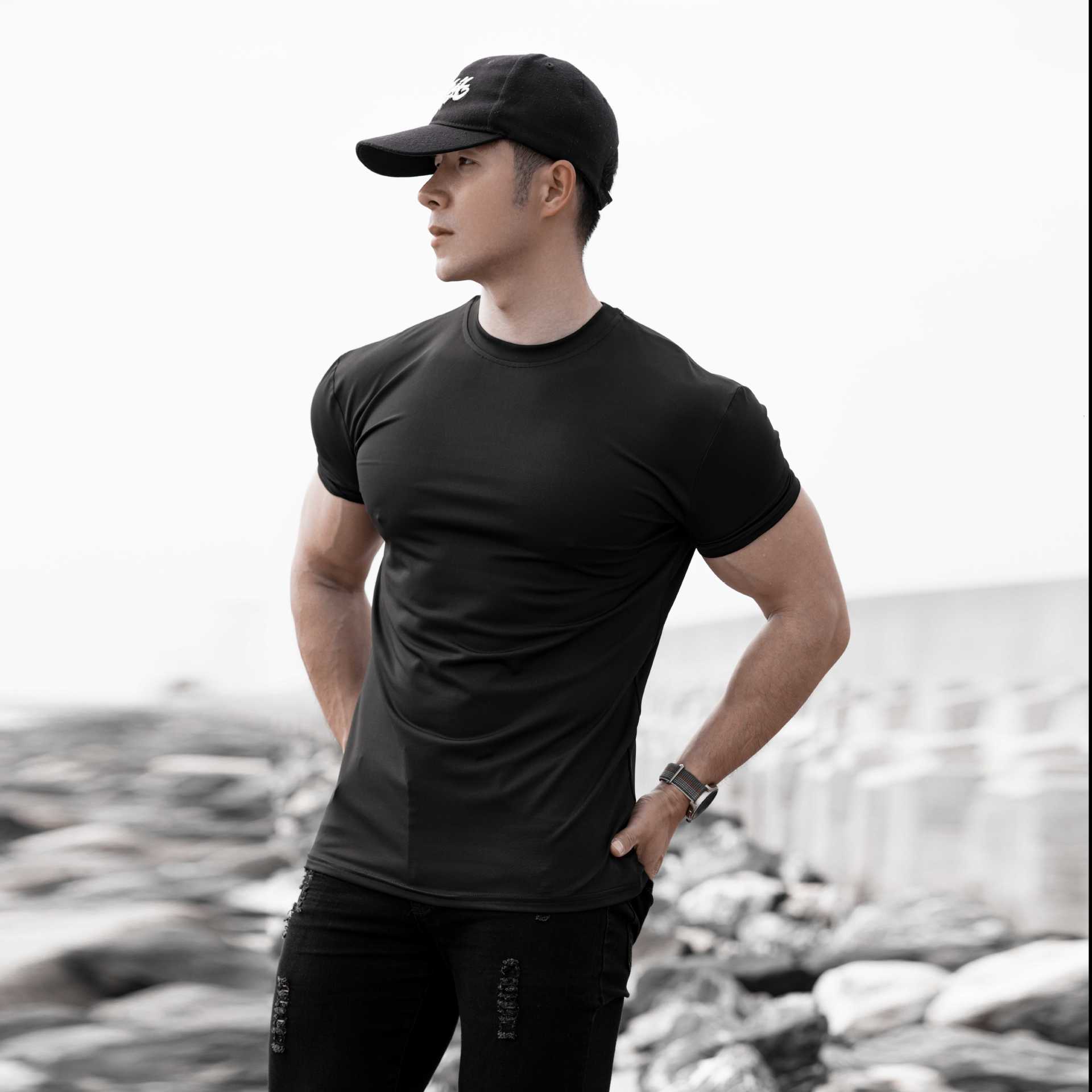 봄 여름 신작 남성 스포츠 및 레저 달리기 운동 피트니스 근육 강화 속건성 얼음 느낌 슬림 솔리드 컬러 반팔 T
