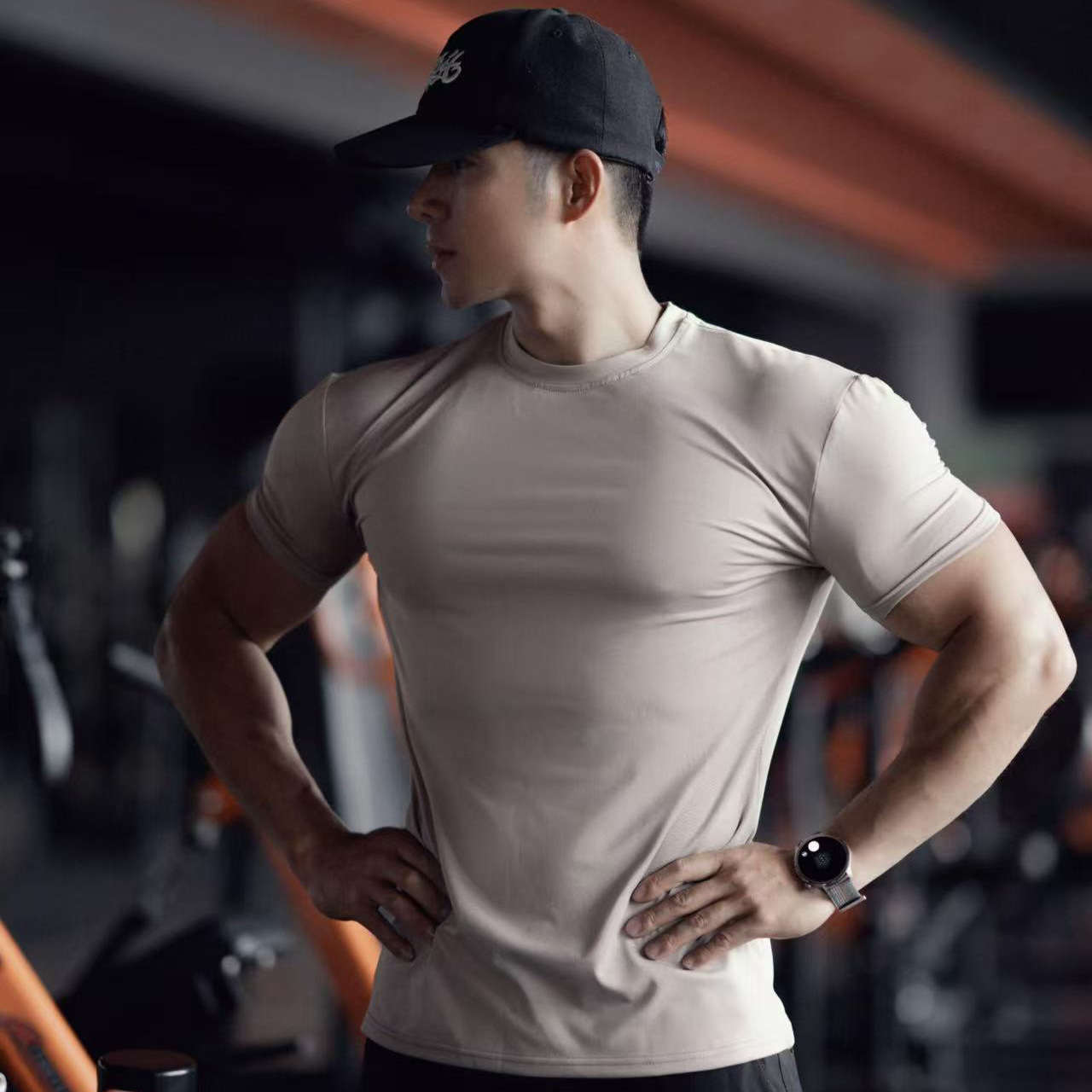 봄 여름 신작 남성 스포츠 및 레저 달리기 운동 피트니스 근육 강화 속건성 얼음 느낌 슬림 솔리드 컬러 반팔 T스토어 가기