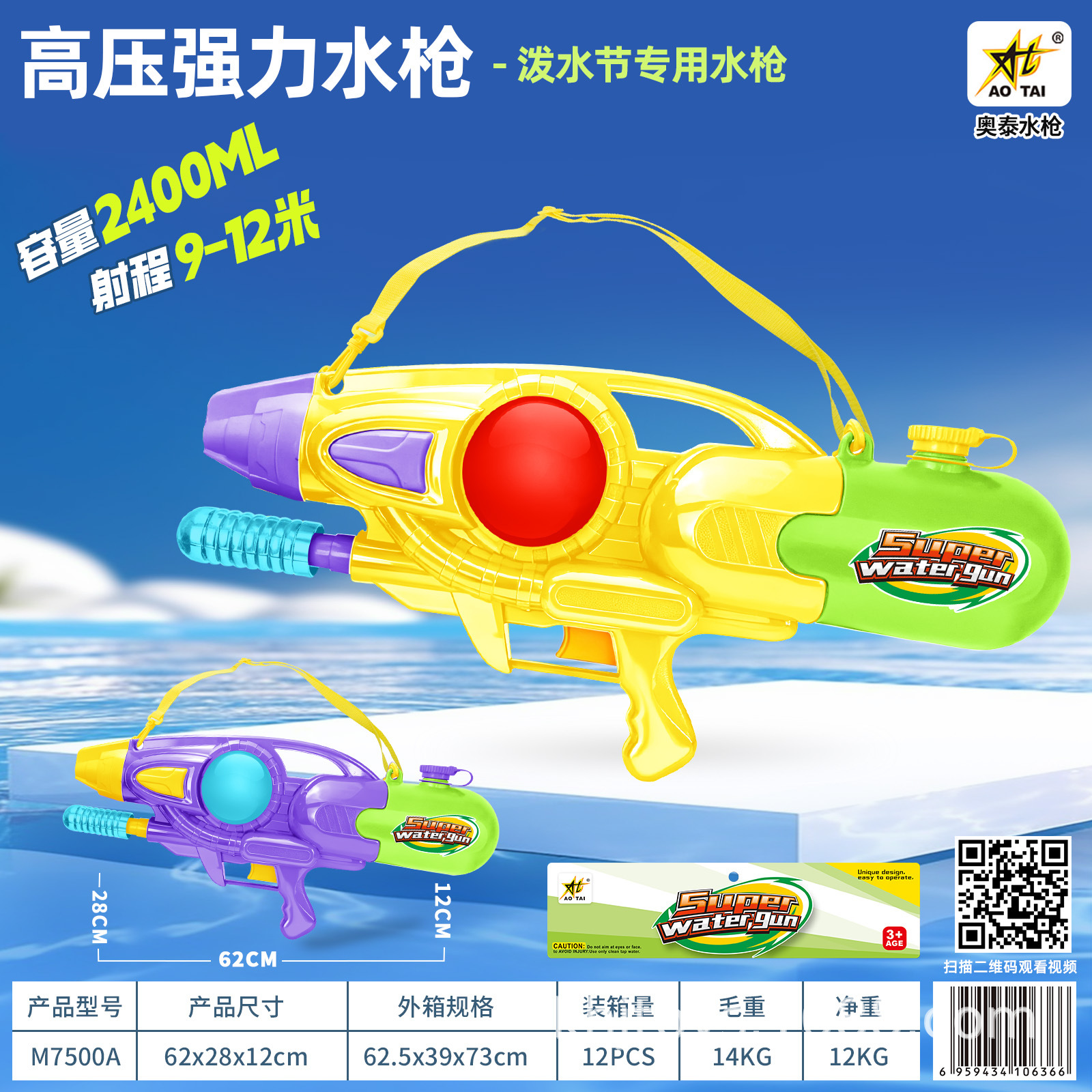 • M7500 고압 물총(2400ML) 상자, 최소 주문 12개