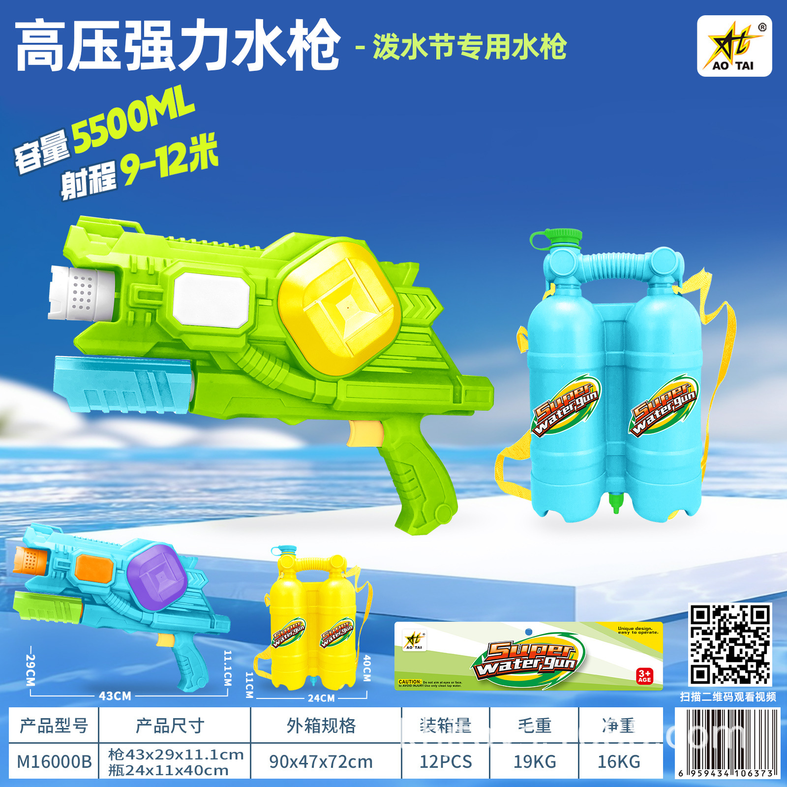 • M16000 고압 물총(5500ML) 상자, 최소 주문 12개