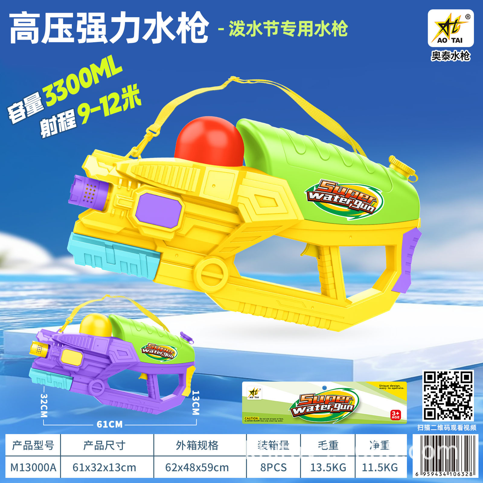 • M13000 고압 물총(3300ML) 상자, 최소 주문 8개