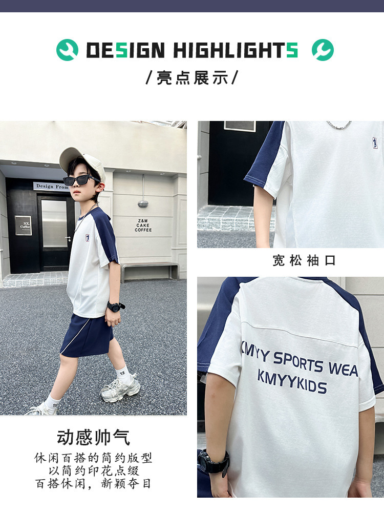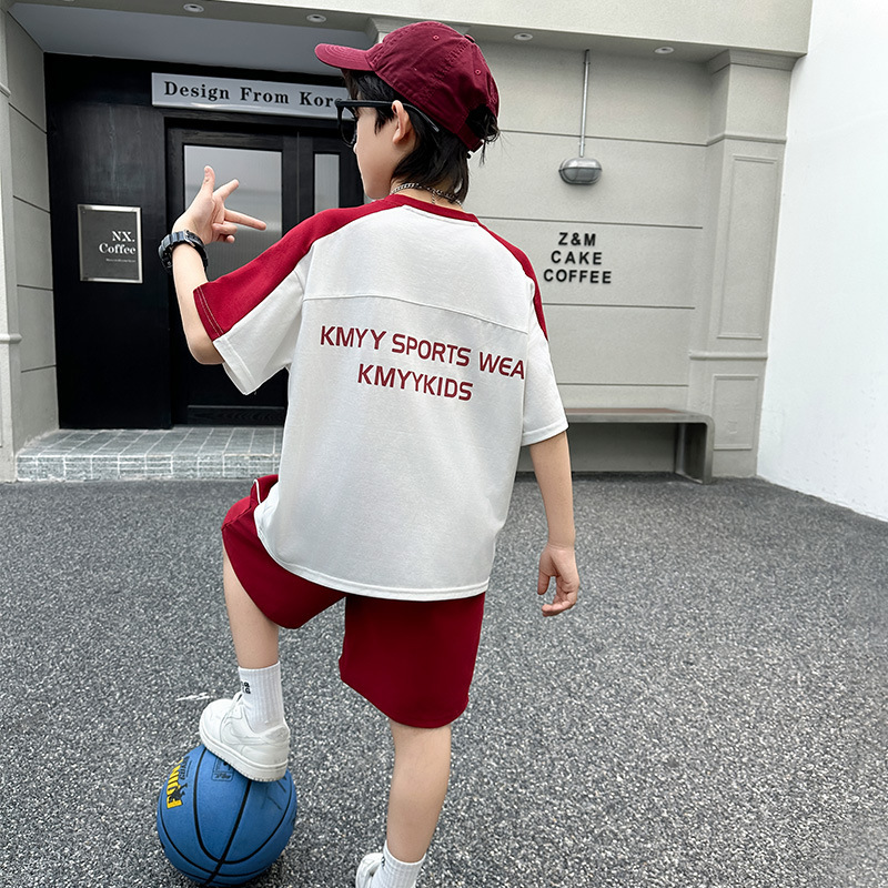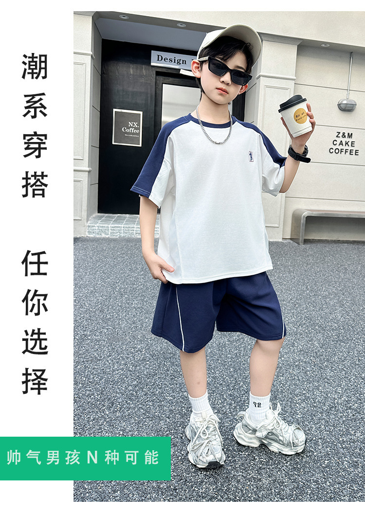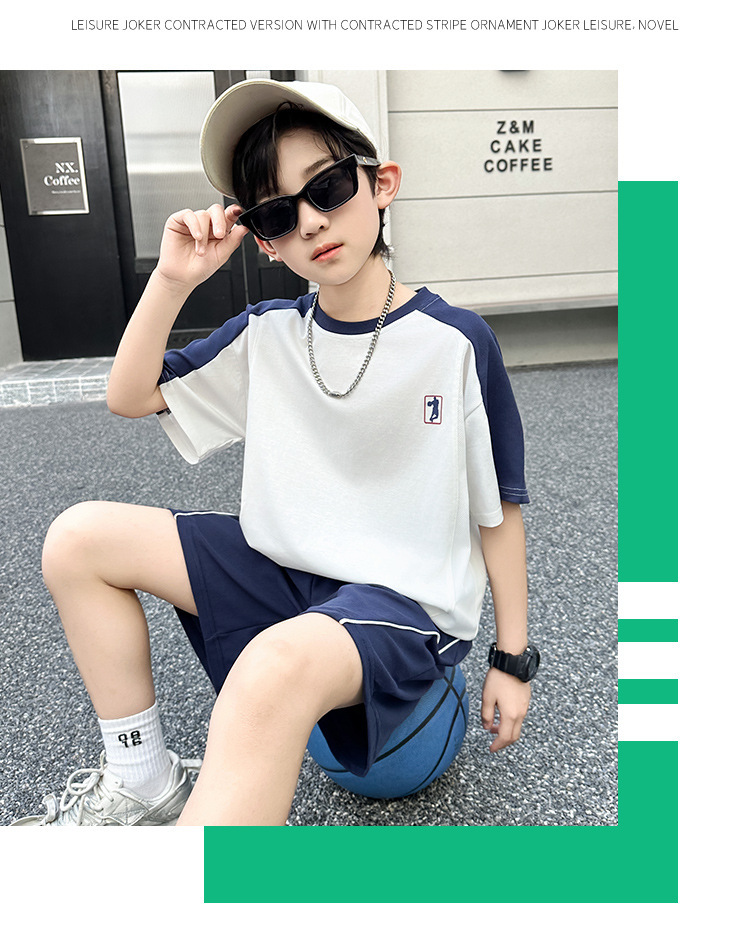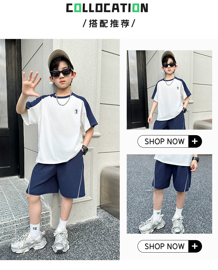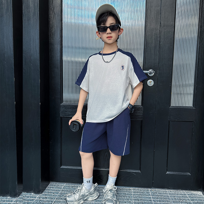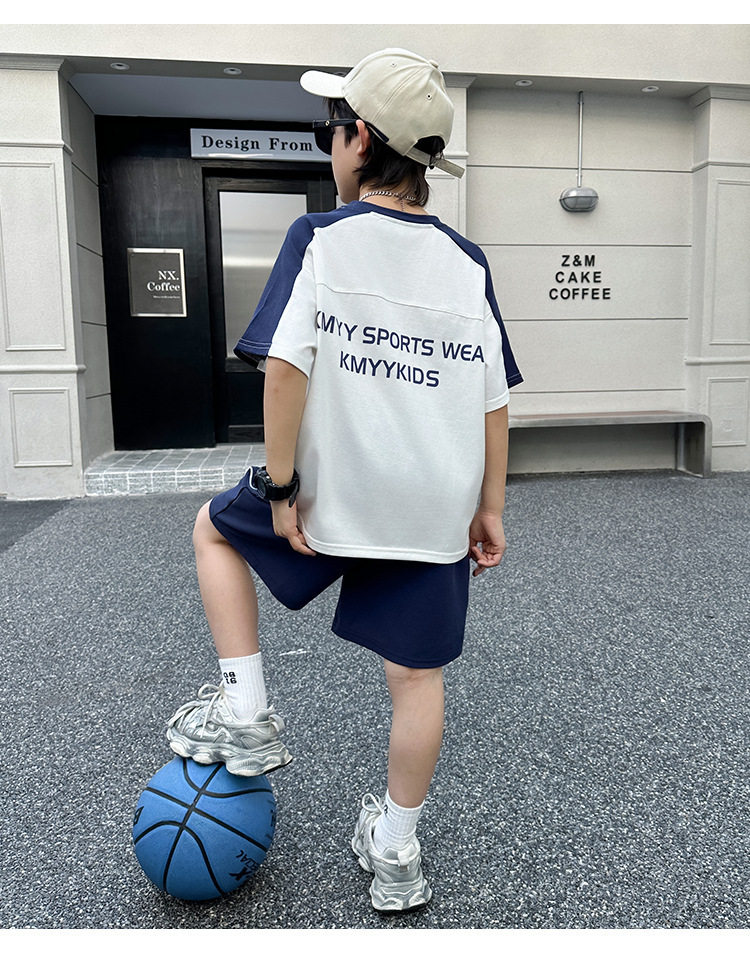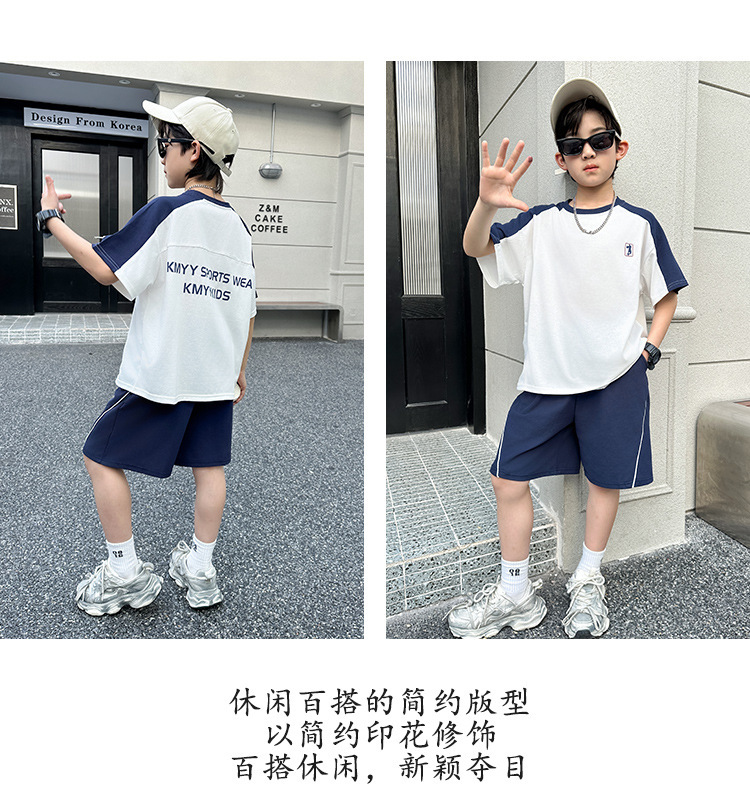 남아 여름 세트 2025 신상 아동 스타일리시 스포츠 캐주얼 레터 컬러블록 반팔 티셔츠 투피스 세트 7트렌드