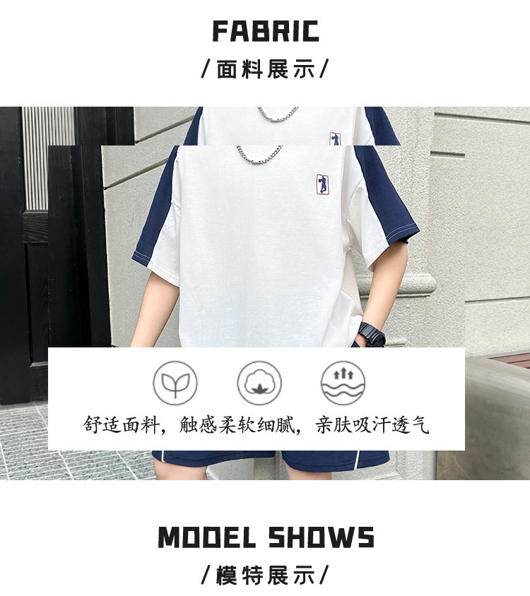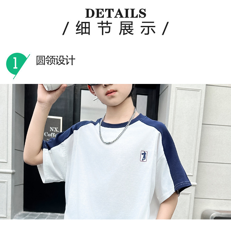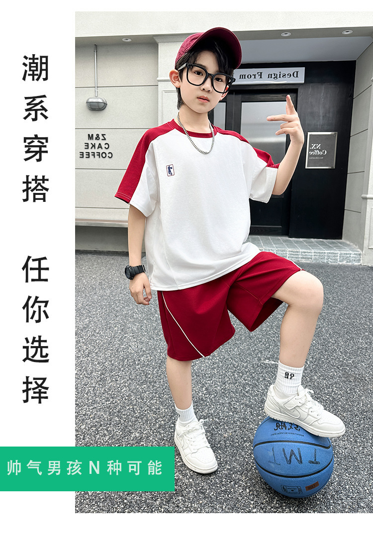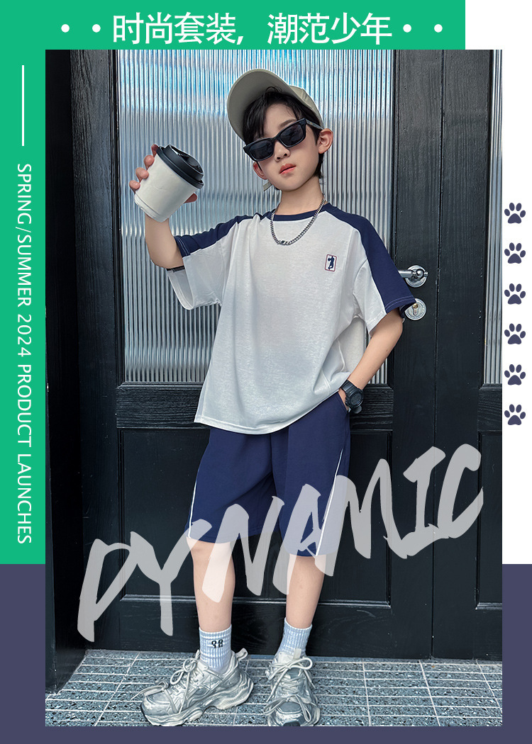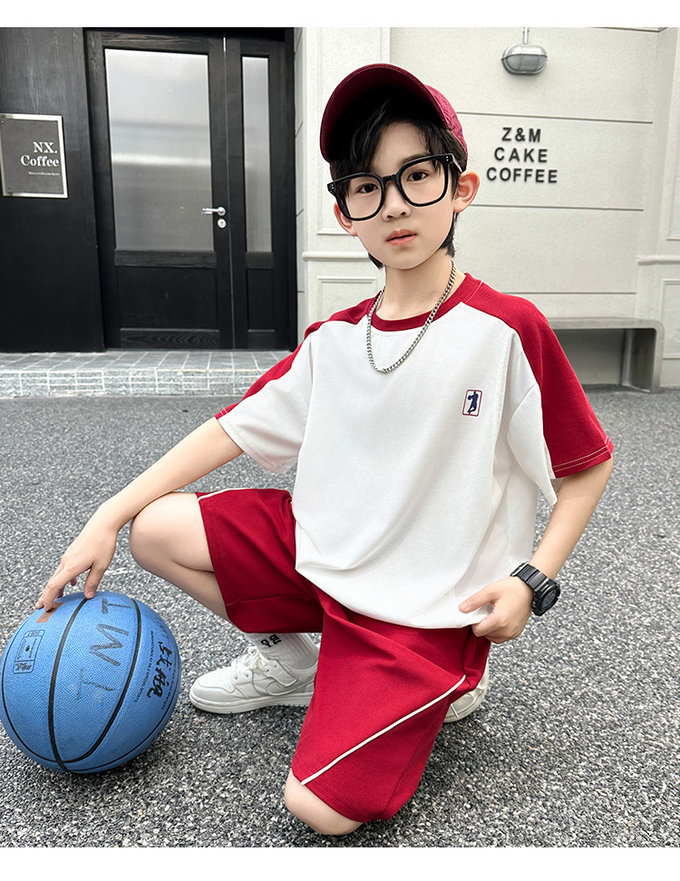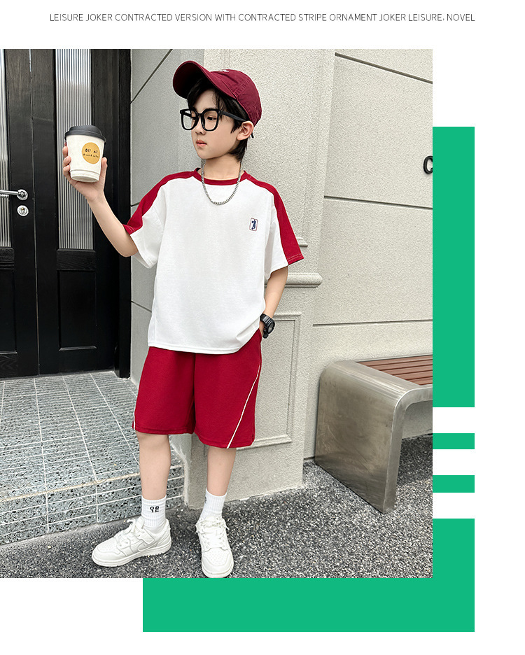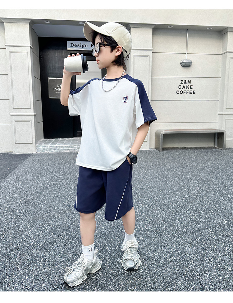 남아 여름 세트 2025 신상 아동 스타일리시 스포츠 캐주얼 레터 컬러블록 반팔 티셔츠 투피스 세트 7트렌드