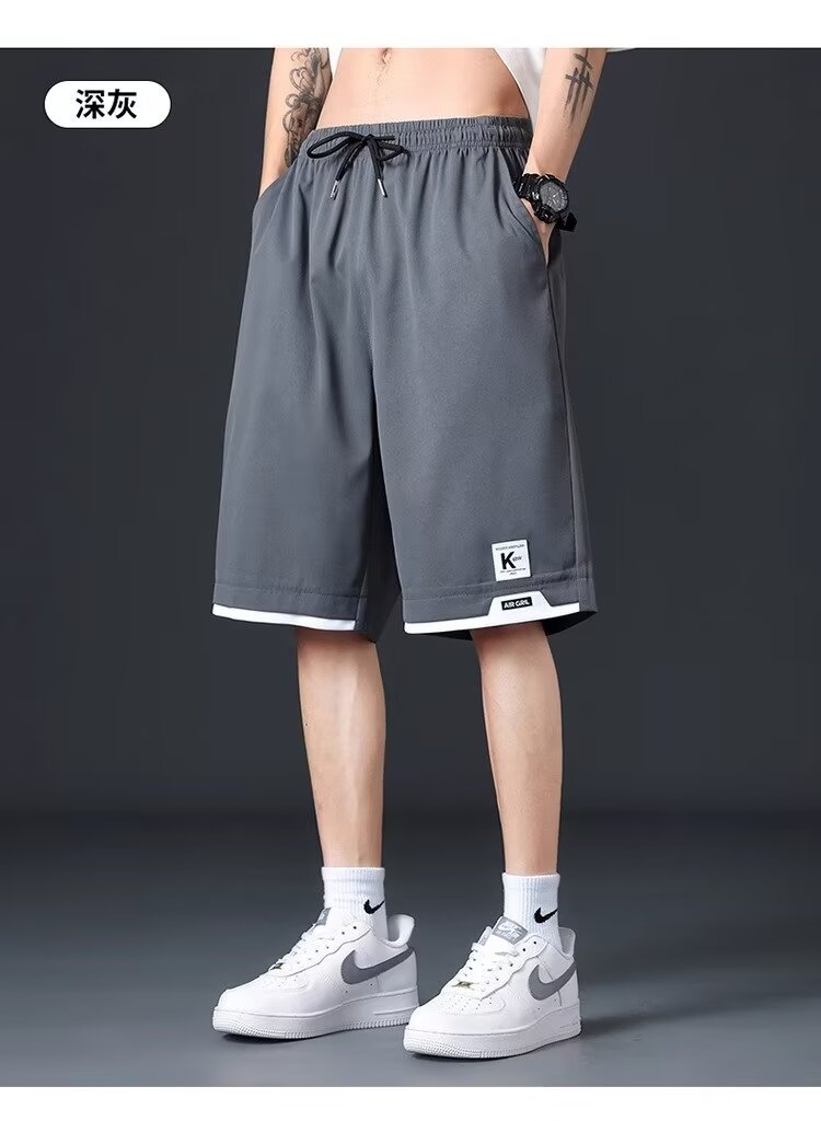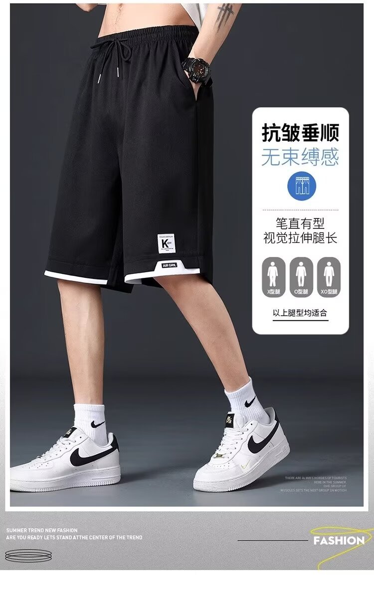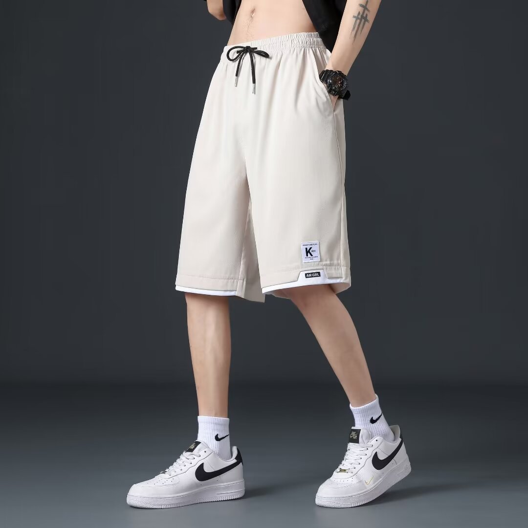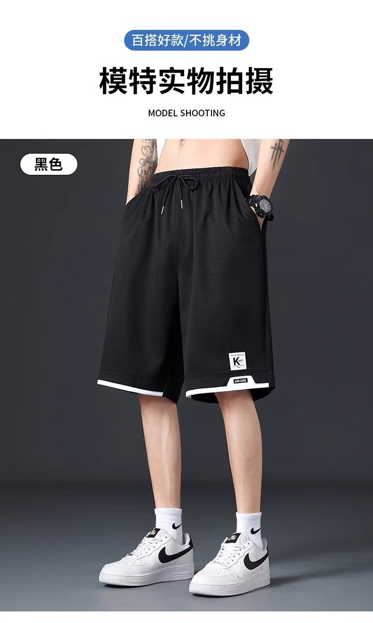 여름 아이스 실크 얇은 빠른 건조 느슨한 농구 짧은 바지 남자 대형 5 점 캐주얼 남자 비치 스포츠 바지 트렌디스토어 가기