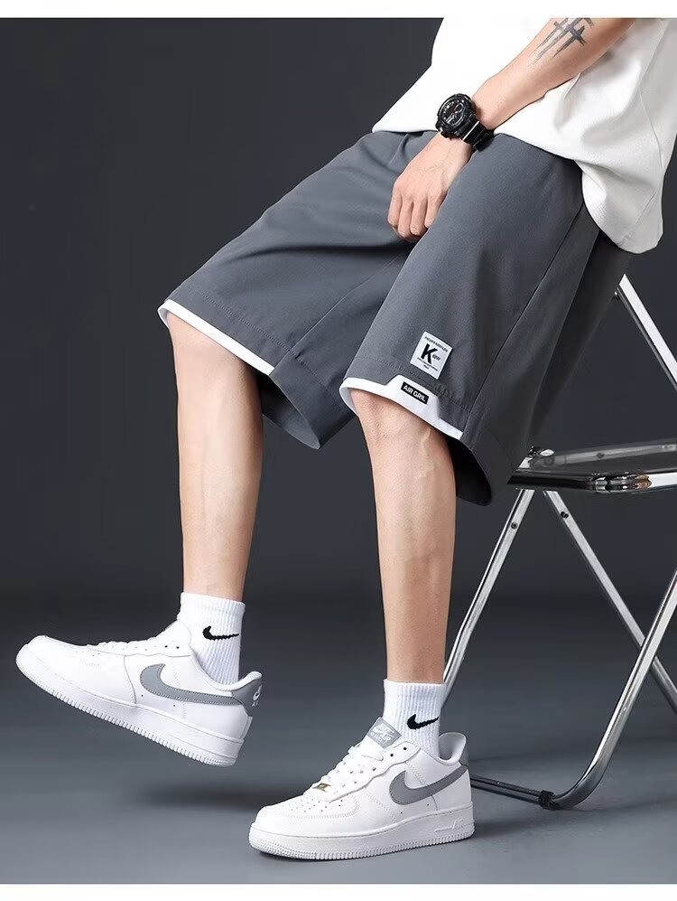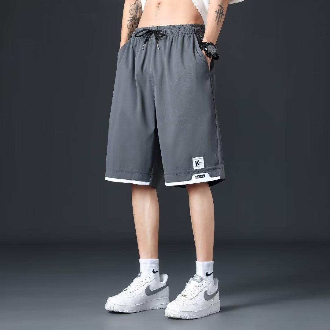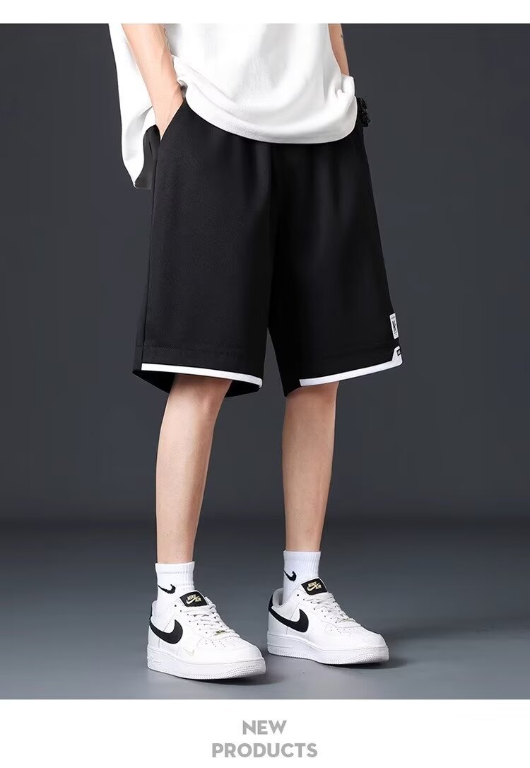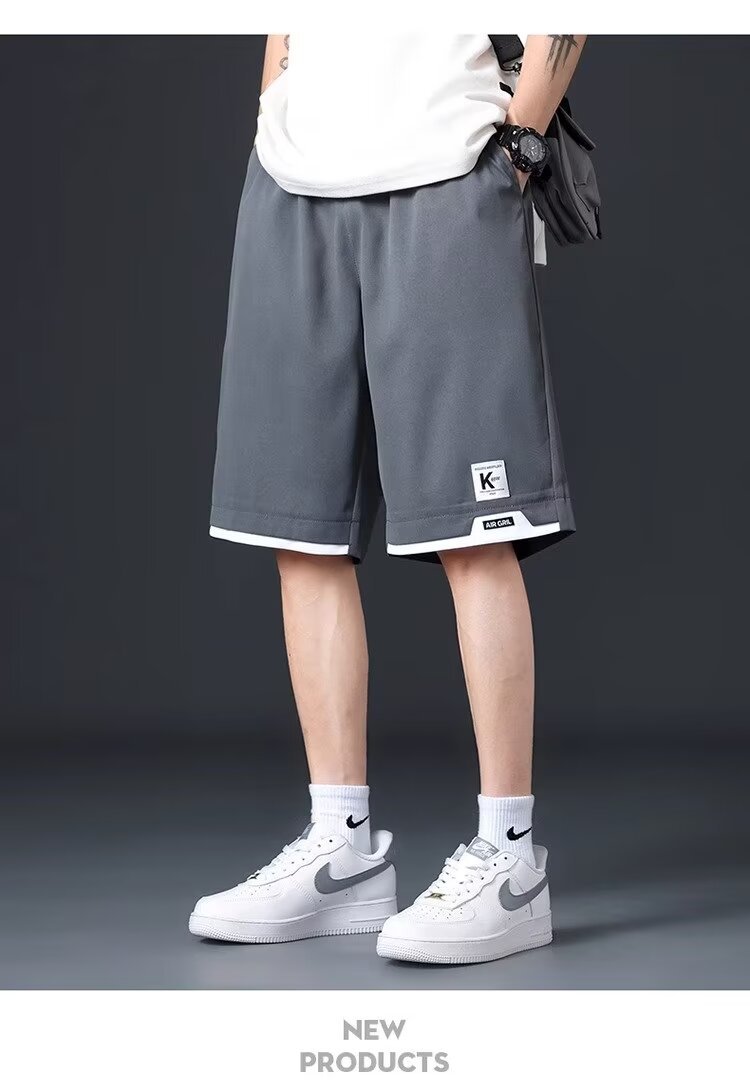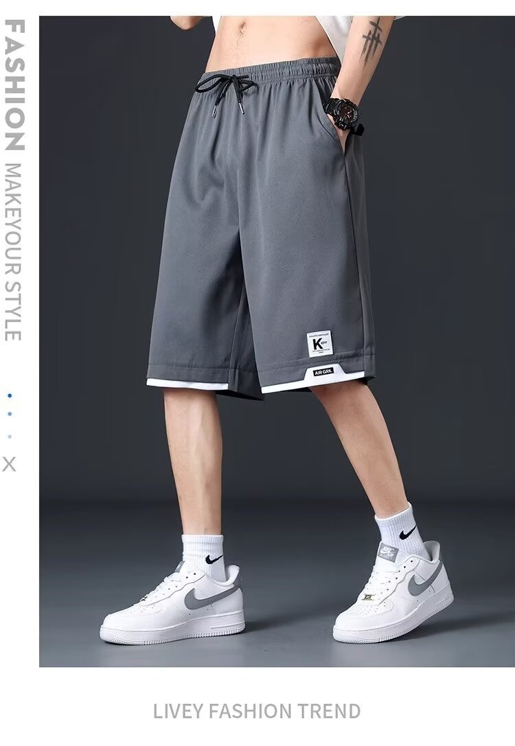 여름 아이스 실크 얇은 빠른 건조 느슨한 농구 짧은 바지 남자 대형 5 점 캐주얼 남자 비치 스포츠 바지 트렌디스토어 가기