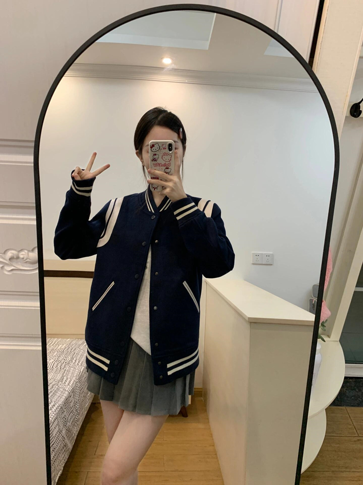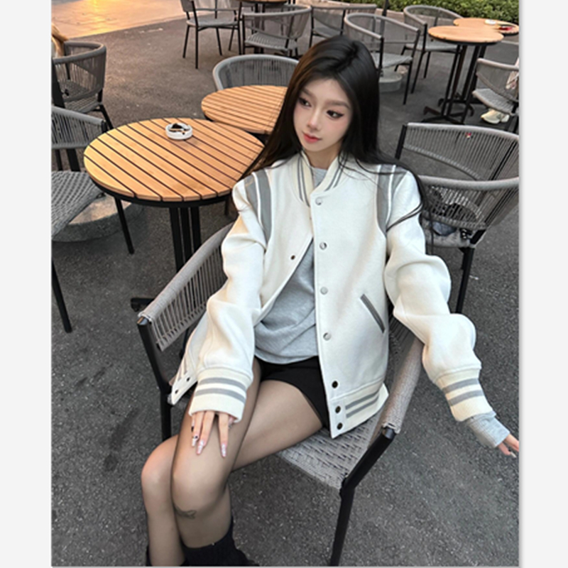 야구 세트 쇼트 코트 여자 2025 초가을과 겨울 새로운 스타일 미국 캐주얼 두꺼운 스웨트 재킷 올 매치스토어 가기