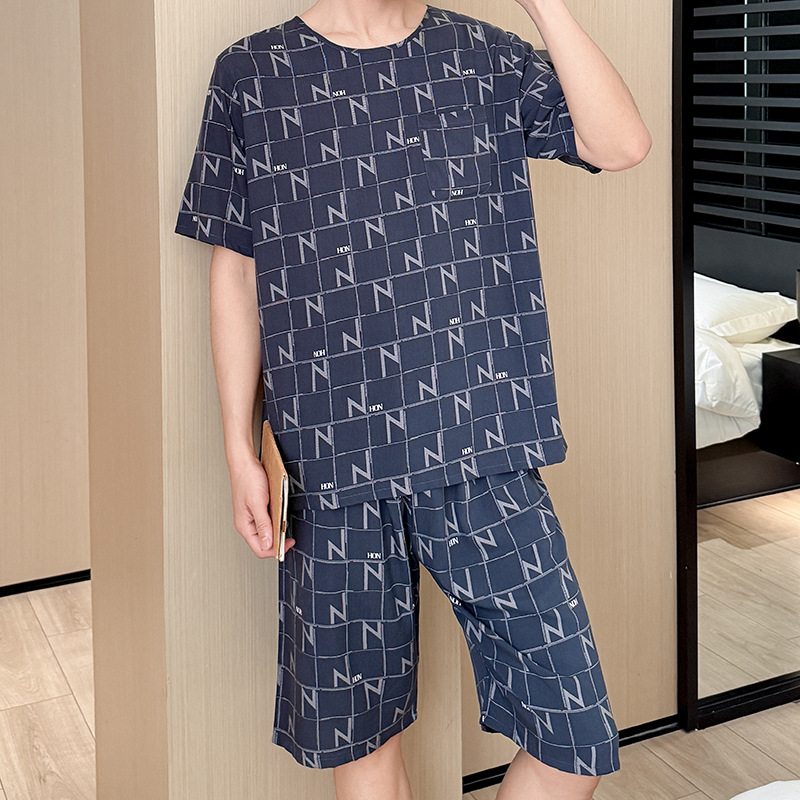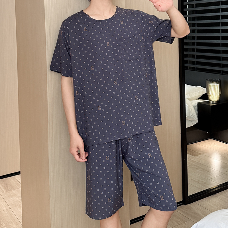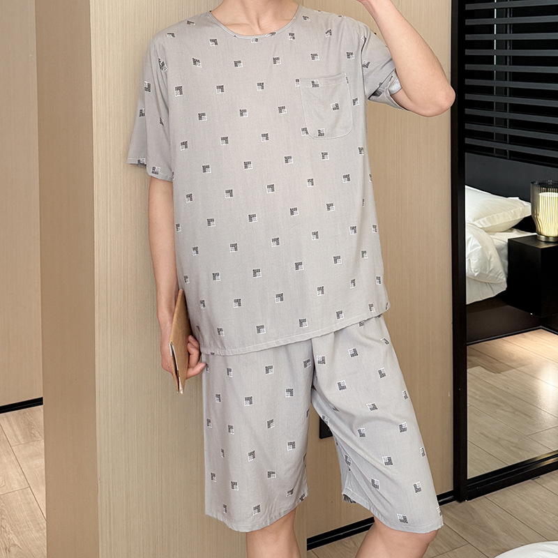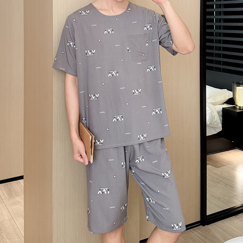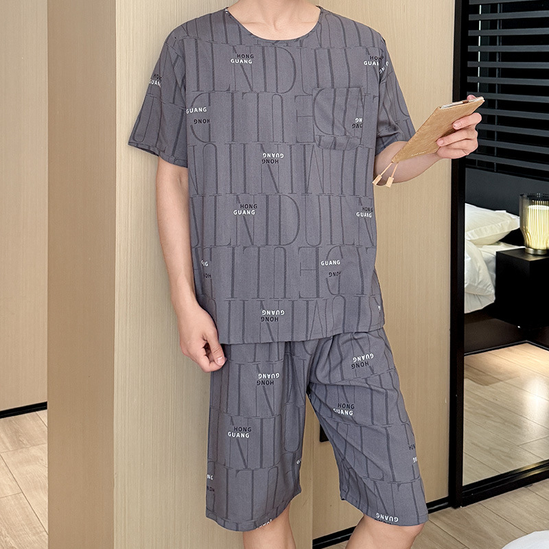 남성 잠옷 투피스 실크 캐주얼 여름 간단한 인쇄 반팔 반바지 청소년 홈 의류 의류 도매스토어 가기