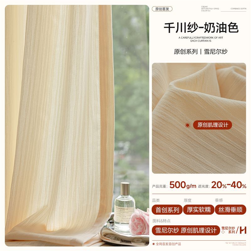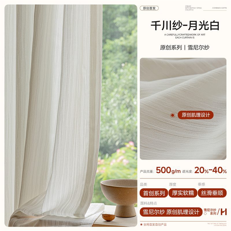 셔닐 반투명 불투명 거즈 커튼, 플로팅 윈도우, 발코니, 거실용 엠보싱 커튼, 2026년 신상 윈도우 스크린, 화이트 커튼스토어 가기