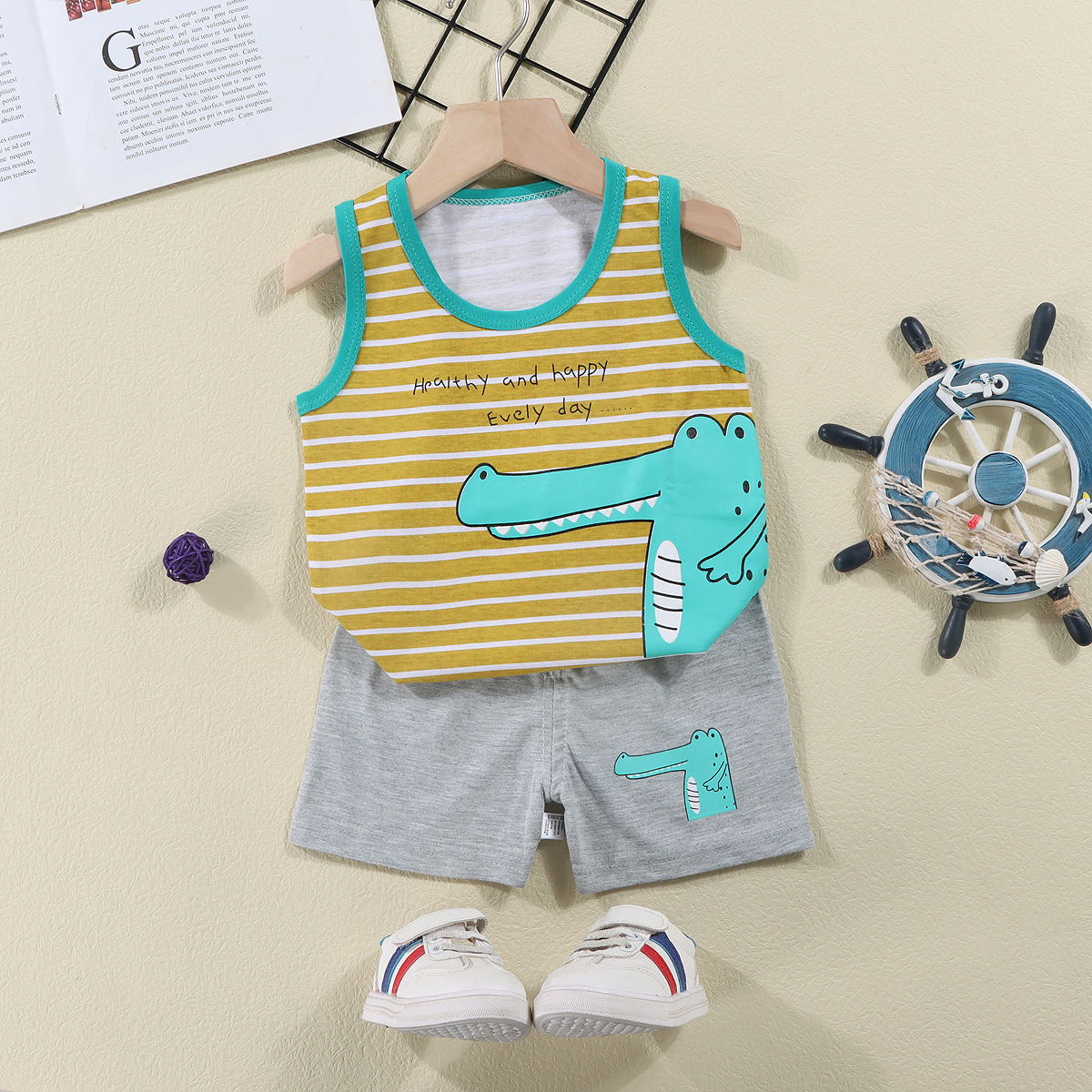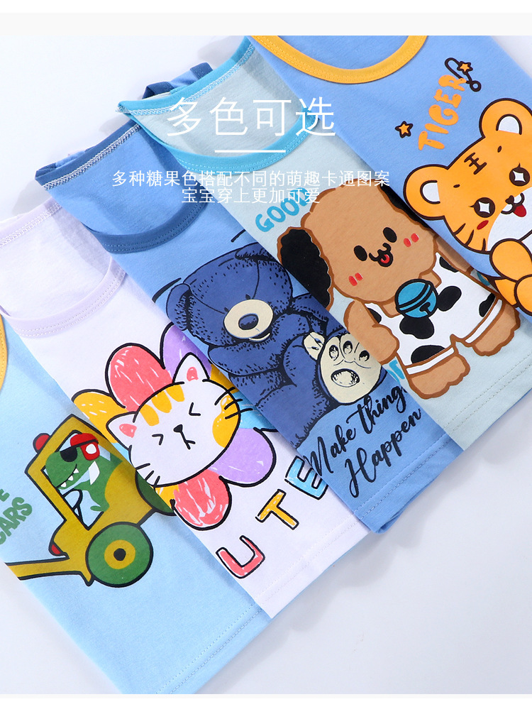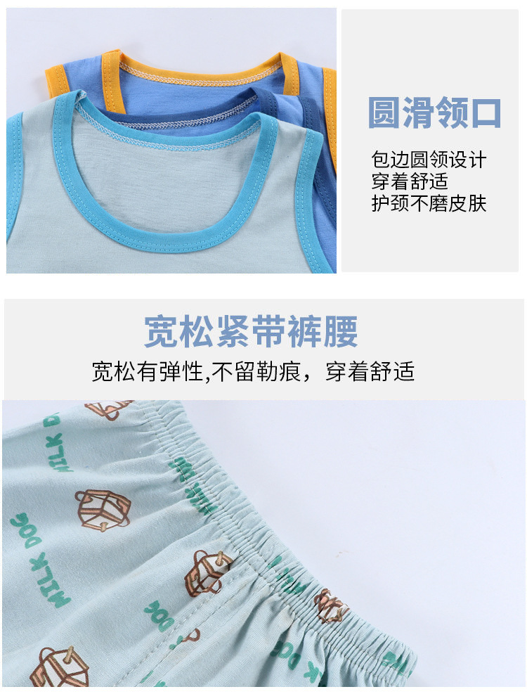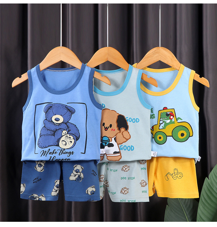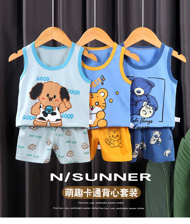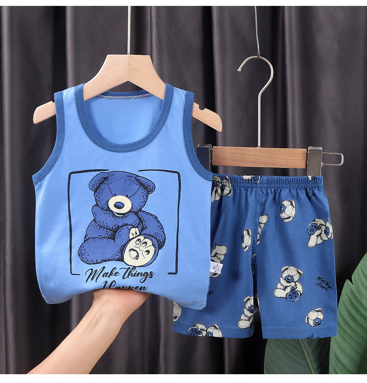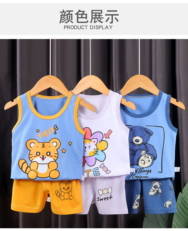 소년 소녀 여름 새로운 한국 스타일 조끼 만화 아동복 얇은 반바지 옷 어린이 민소매 면화 세트스토어 가기