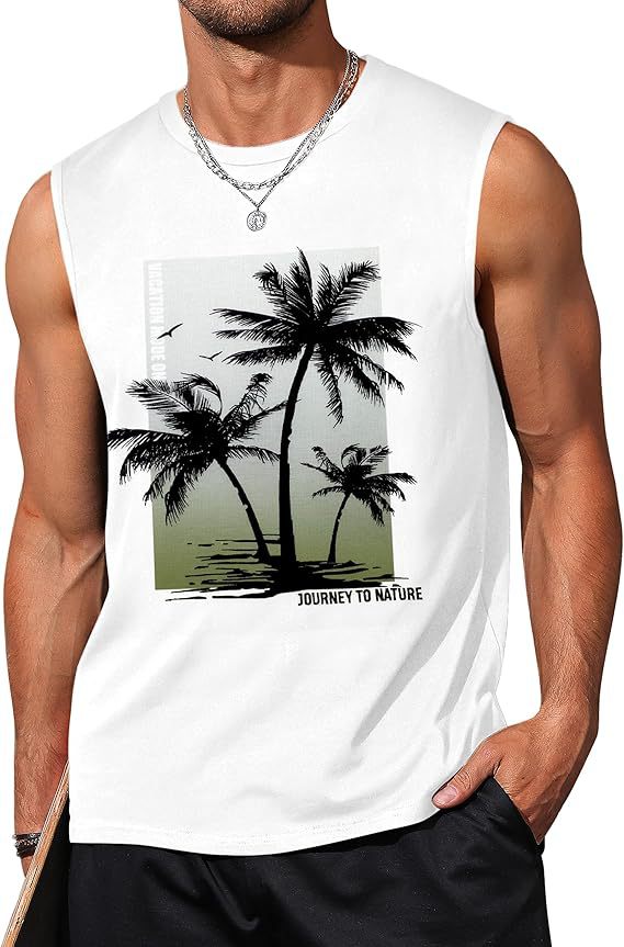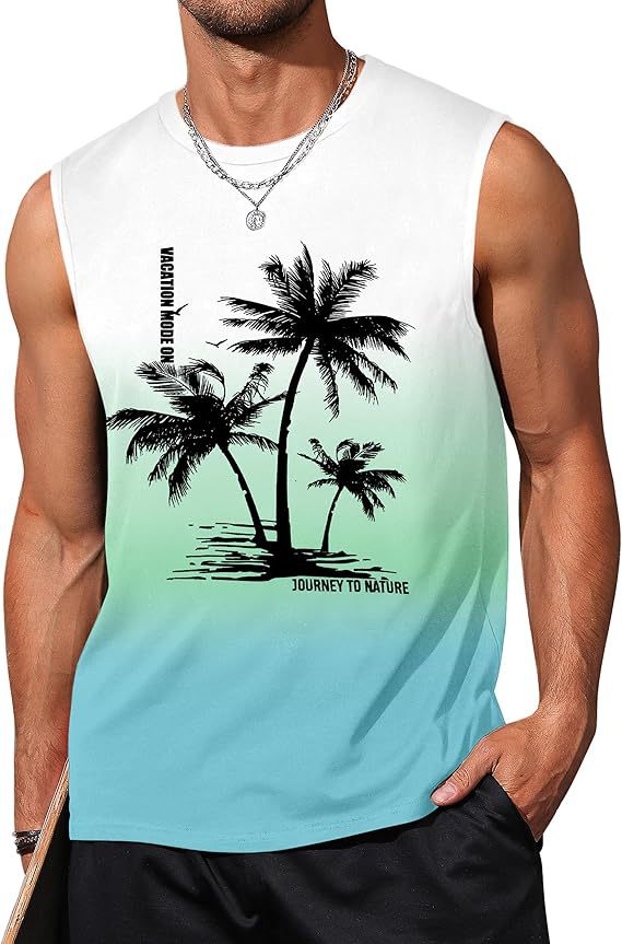 2025 새로운 국경 무역 미국 여름 남자 해변 조끼 비치 트리 3D 인쇄 유행 티셔츠 짧은 소매
