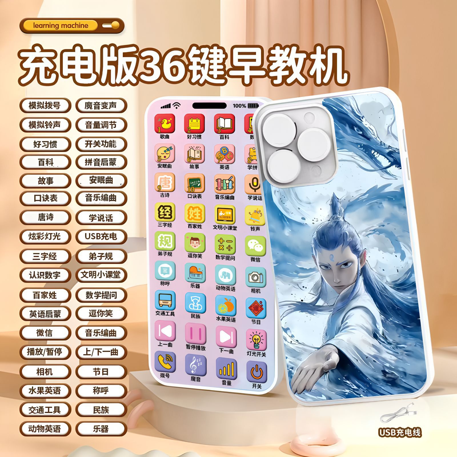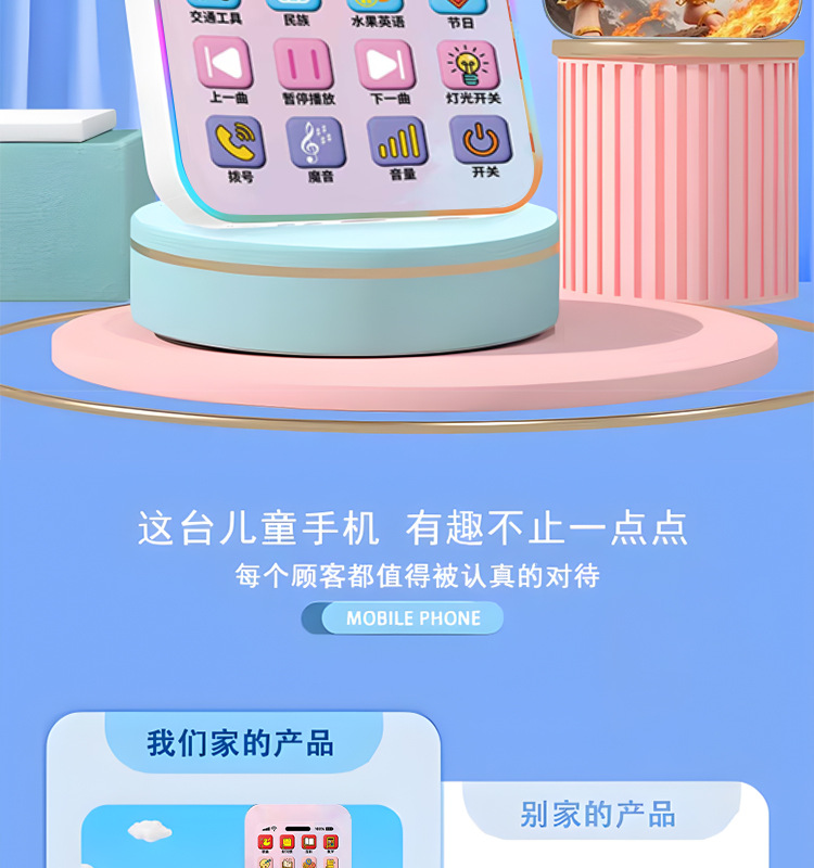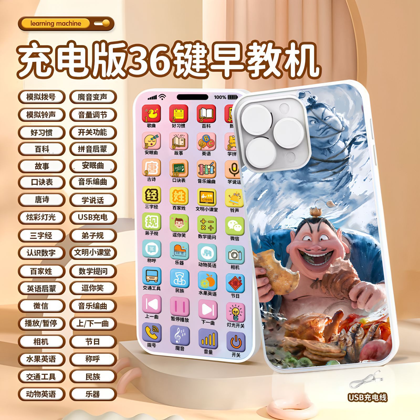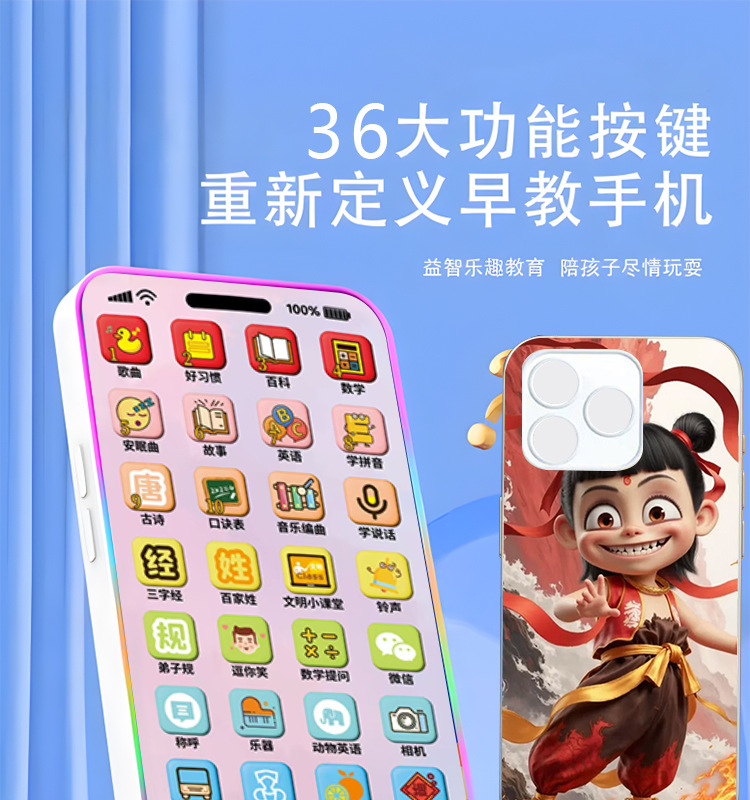 새로운 Nezha 마음 악마 아이가 세계 연꽃 뿌리 케이크에 온다 장난감 아기 전화 아기는 조기 교육 휴대 전화 모델