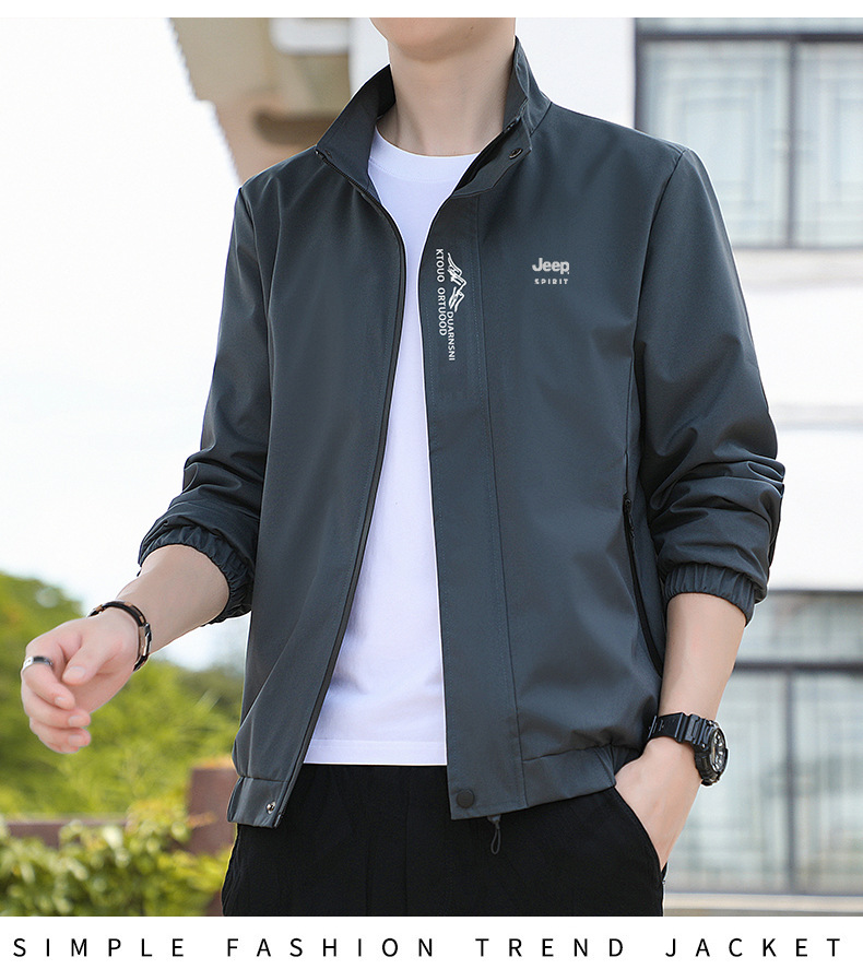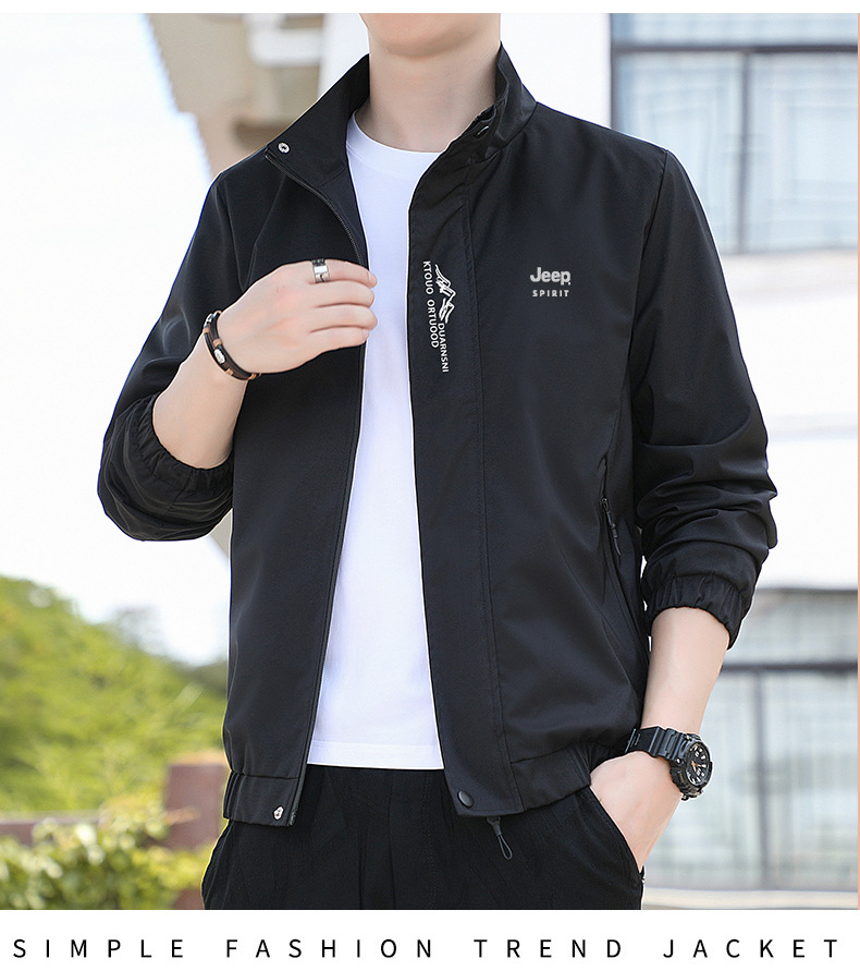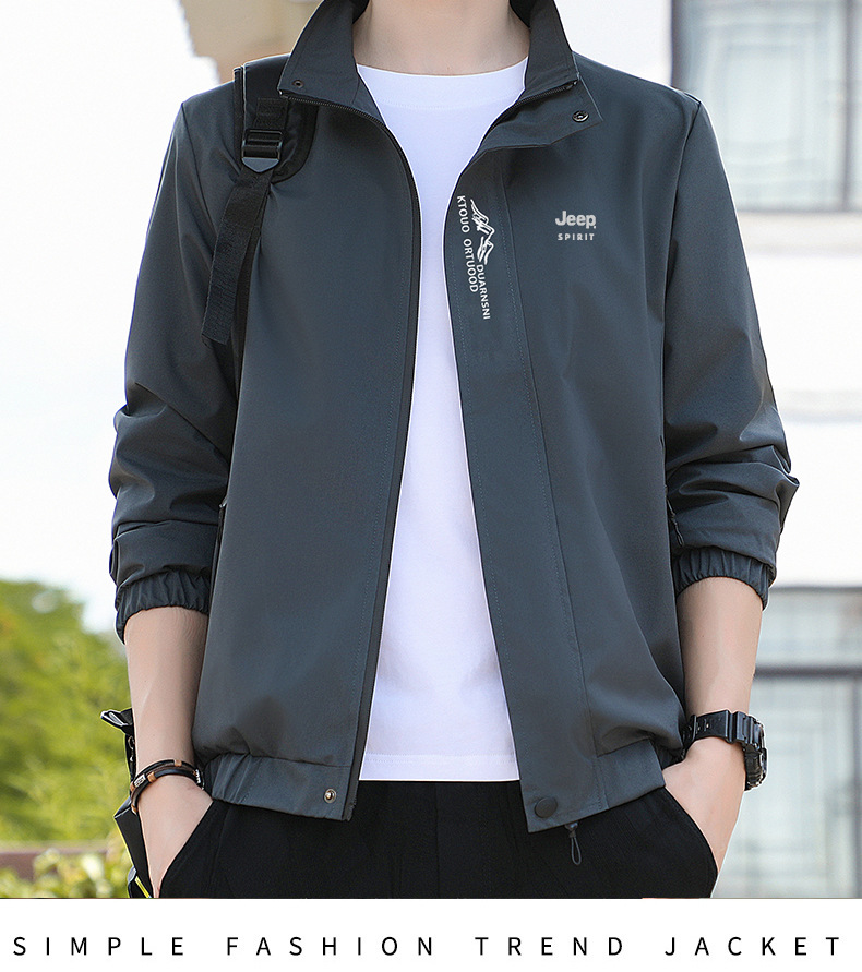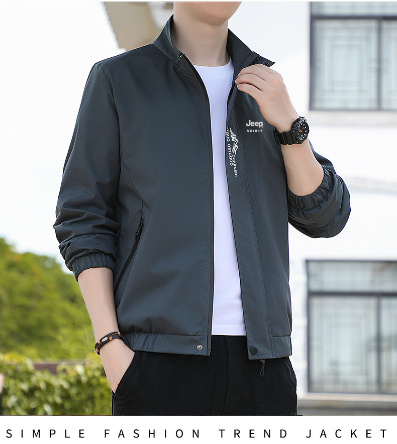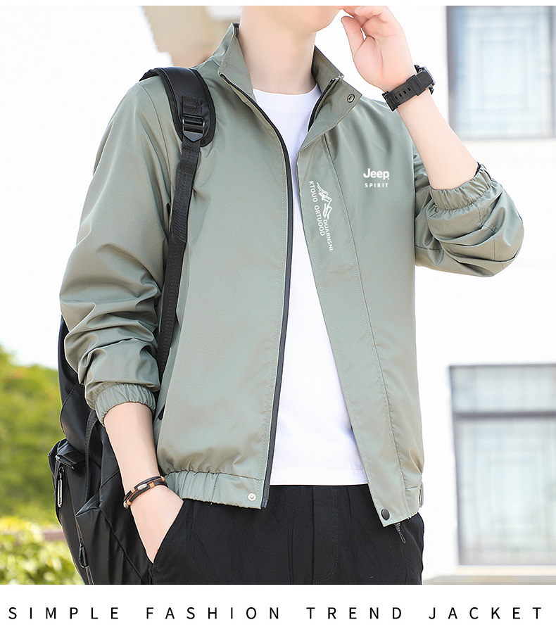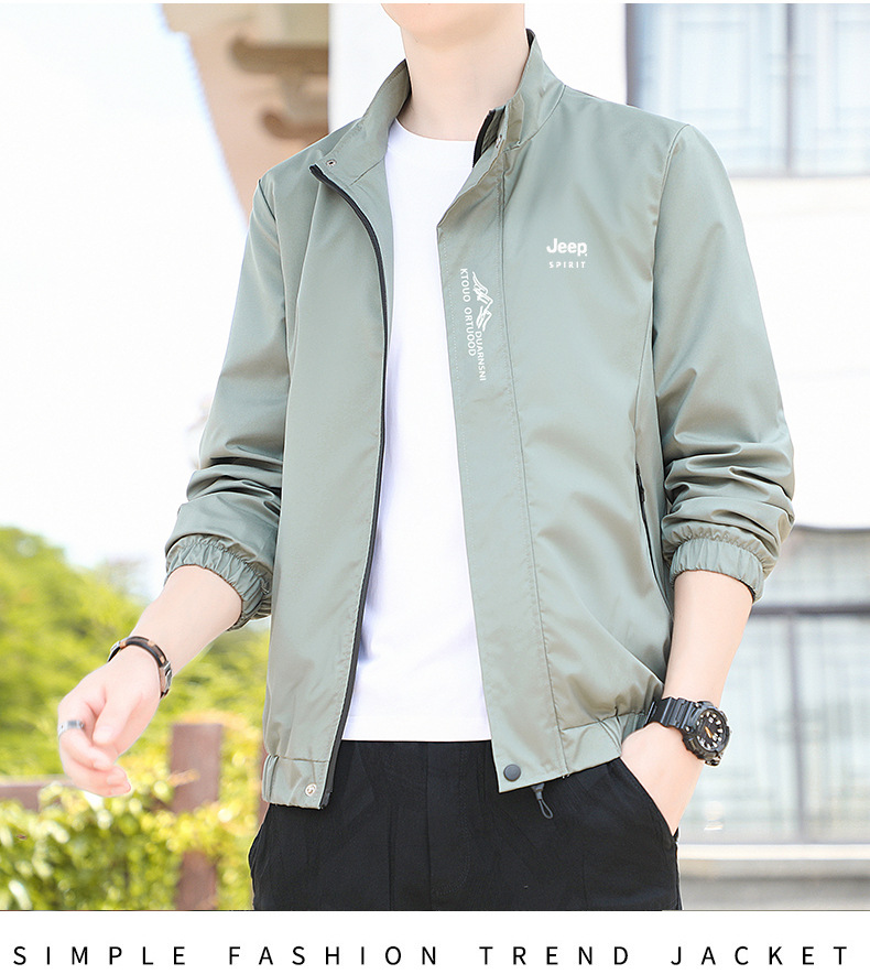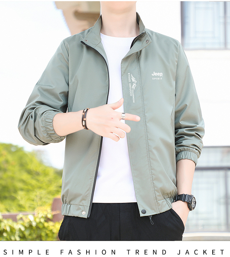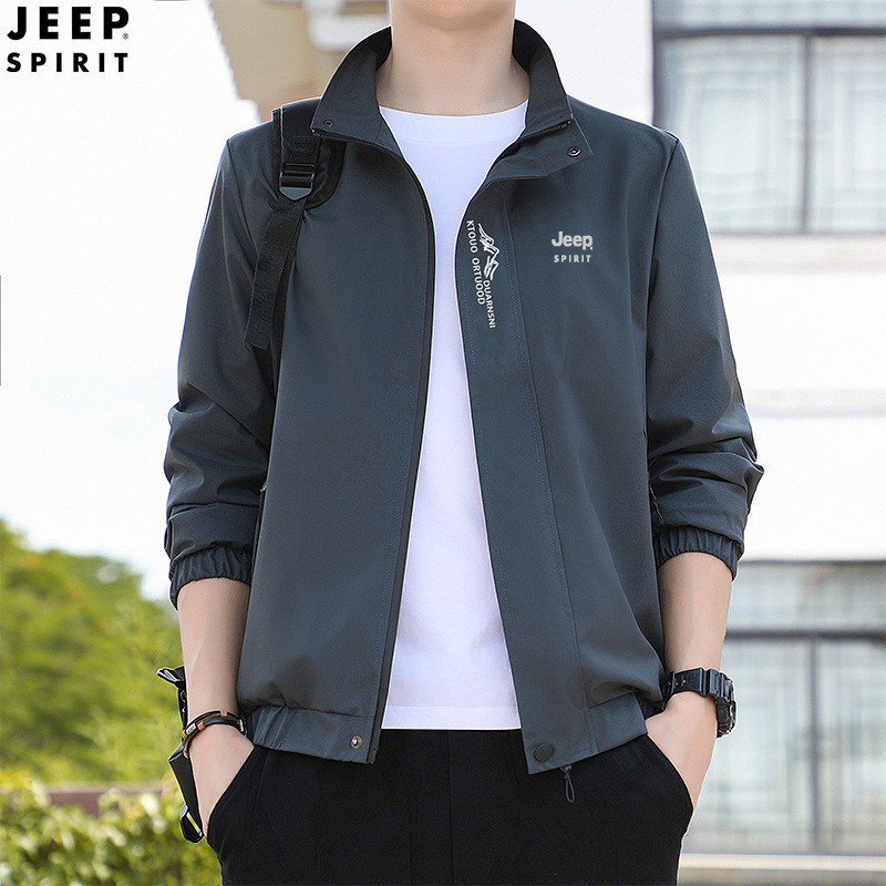 JEEP SPIRIT 새로운 남성용 얇은 재킷 스탠드 칼라 방풍 통기성 느슨한 플러스 사이즈 청소년 캐주얼 재킷스토어 가기
