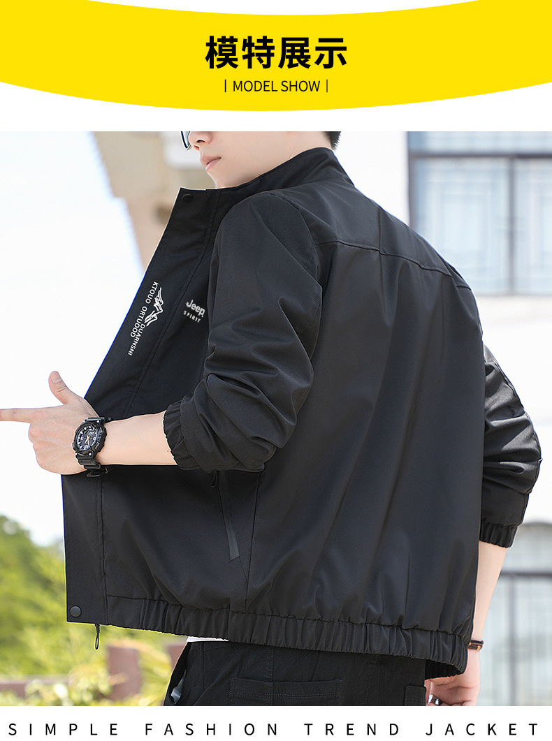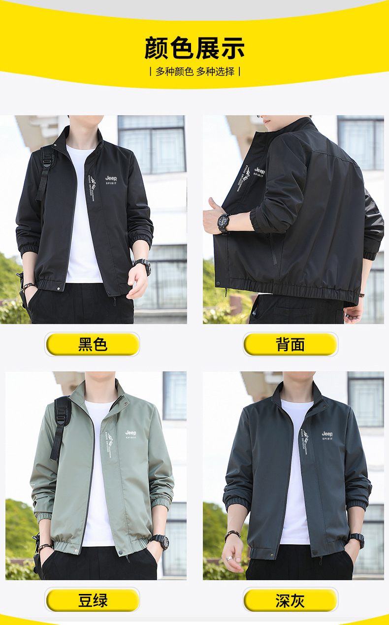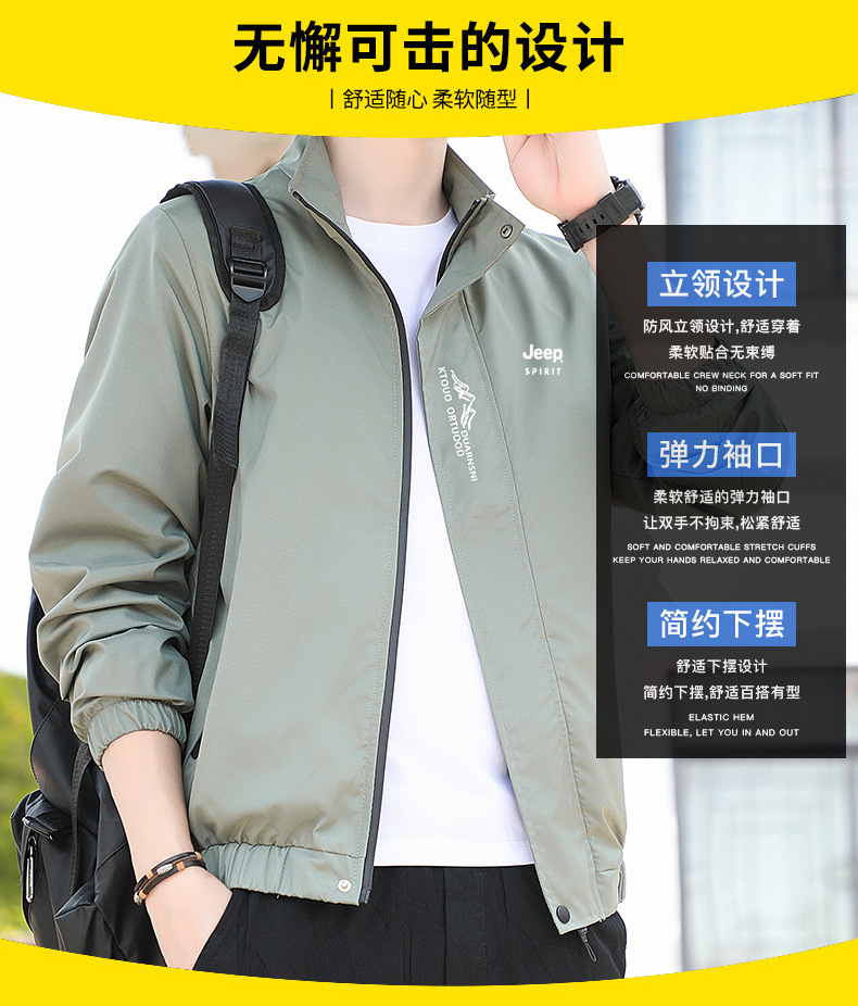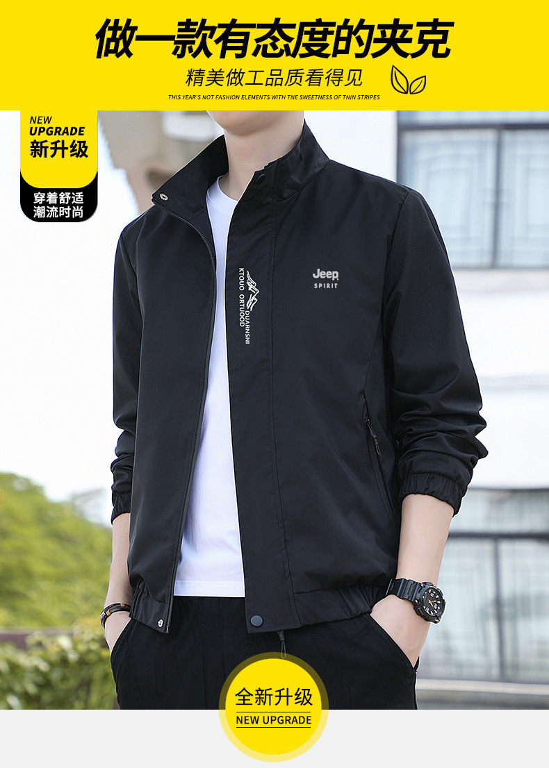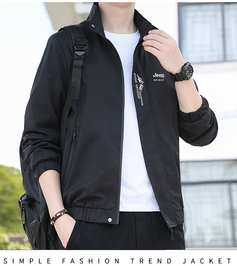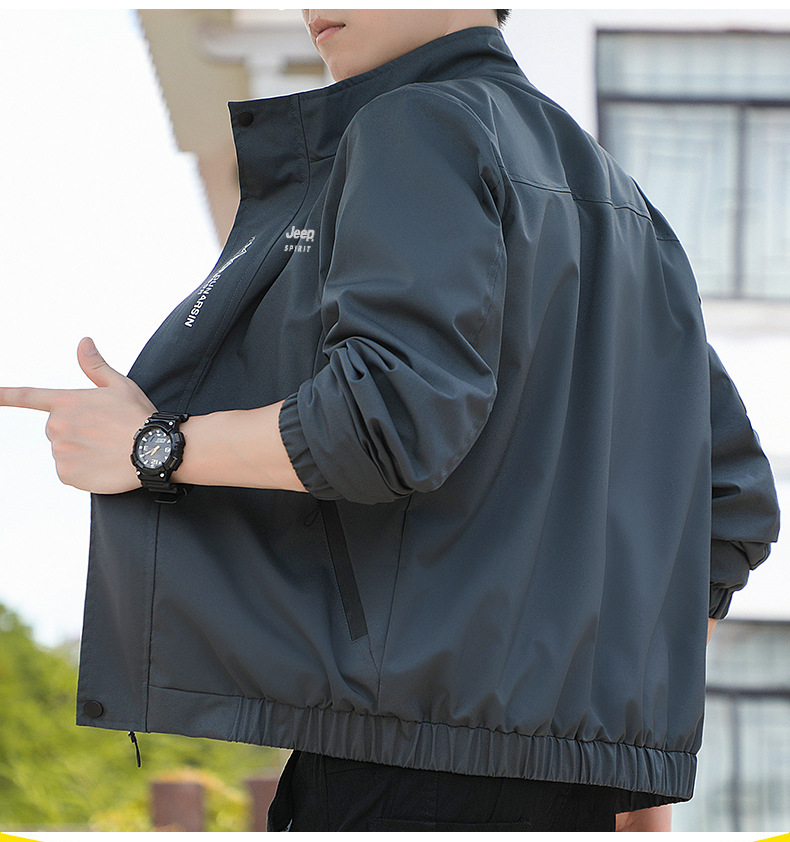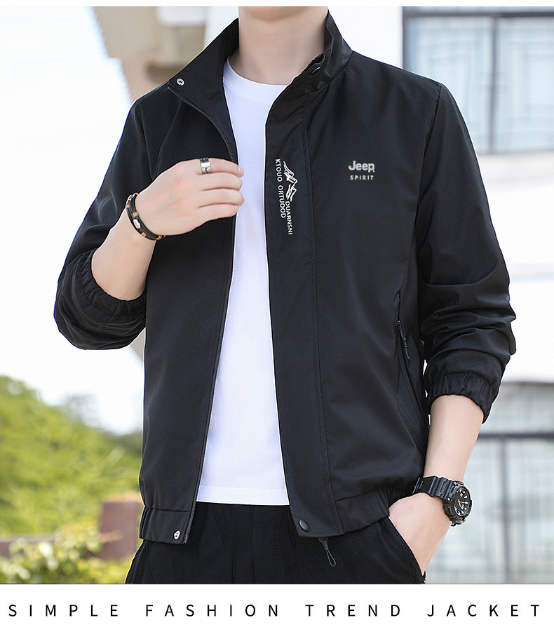 JEEP SPIRIT 새로운 남성용 얇은 재킷 스탠드 칼라 방풍 통기성 느슨한 플러스 사이즈 청소년 캐주얼 재킷스토어 가기
