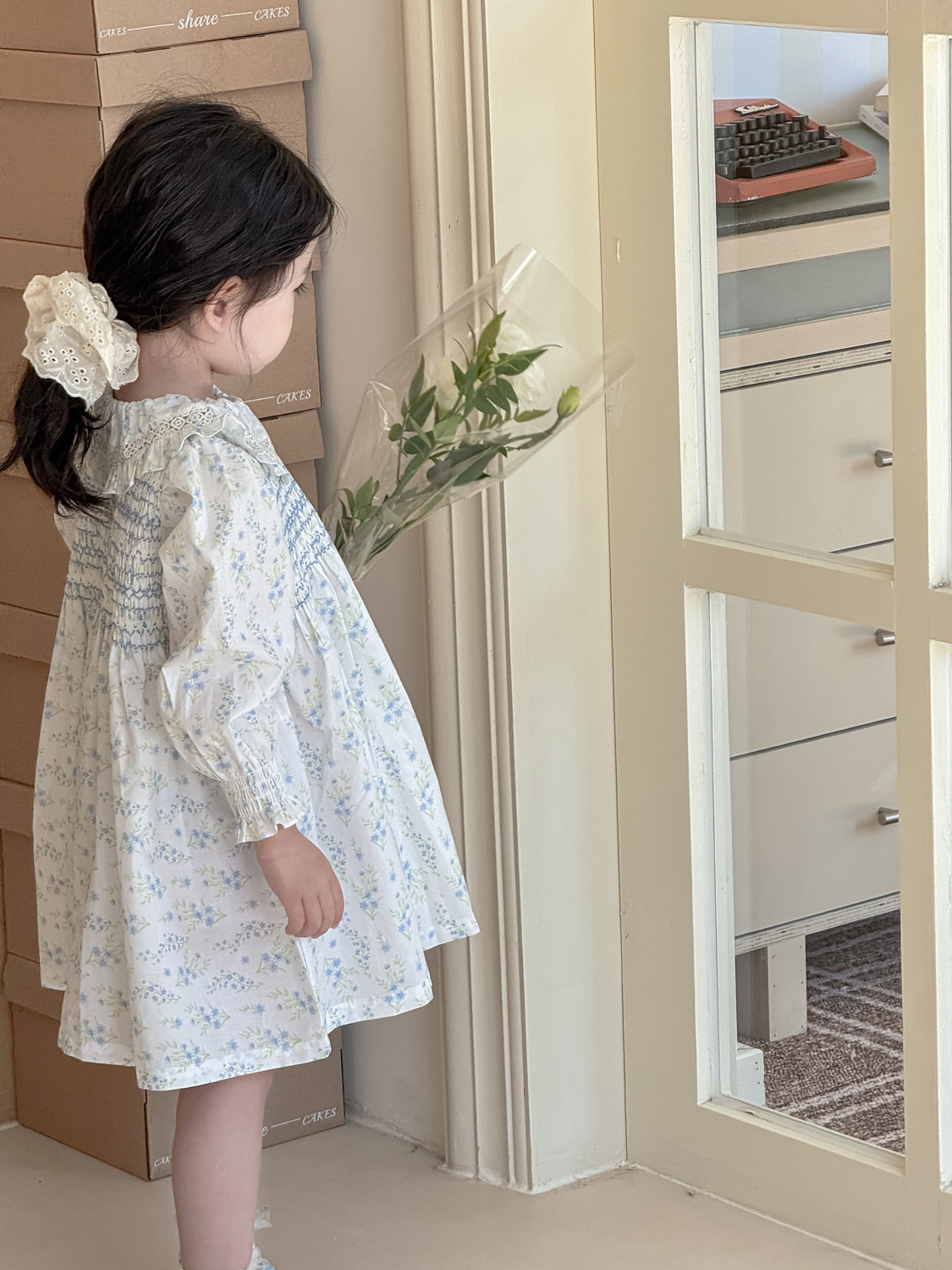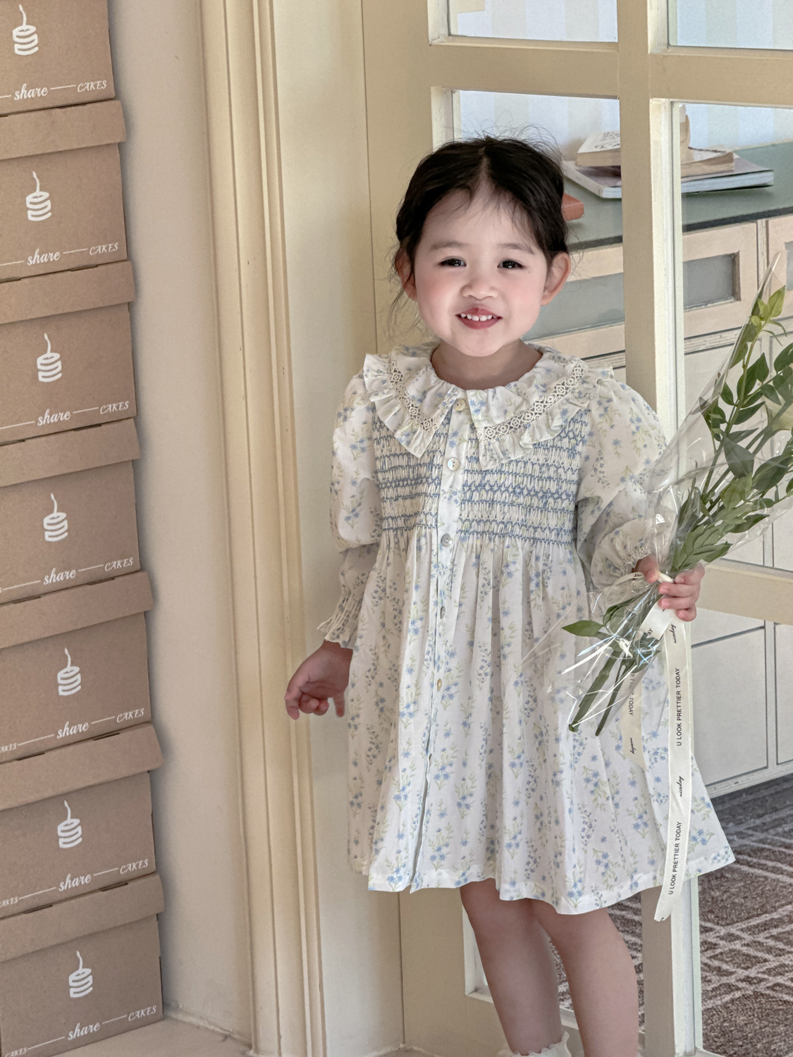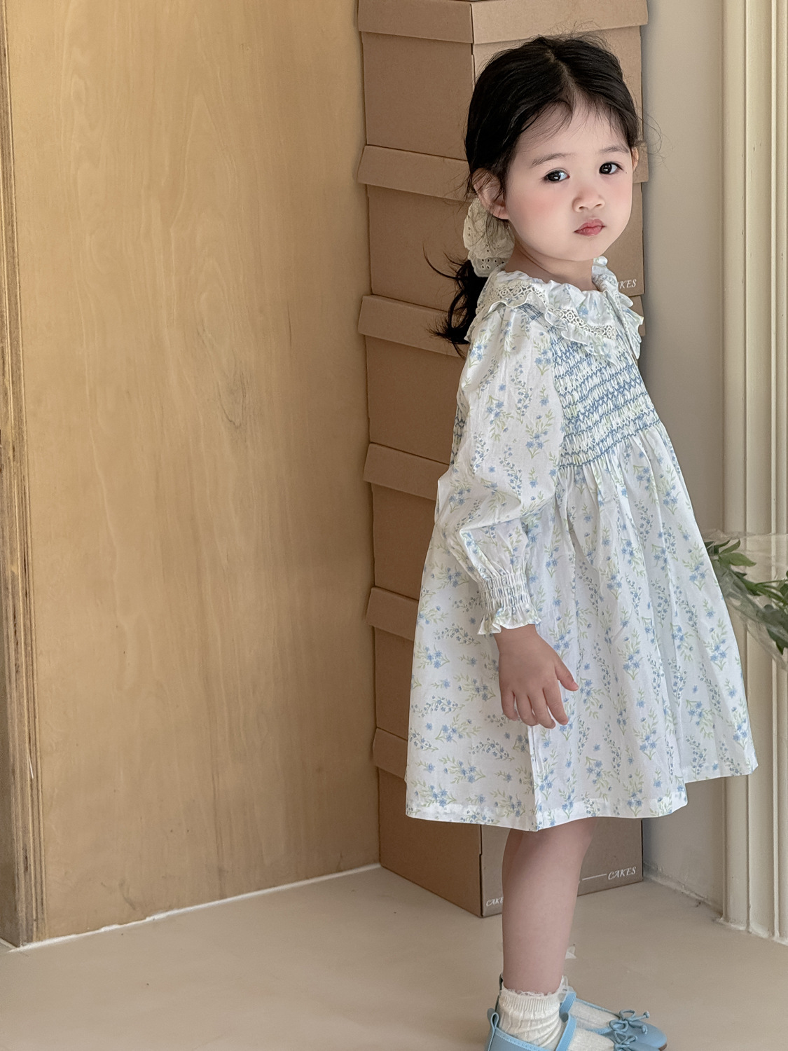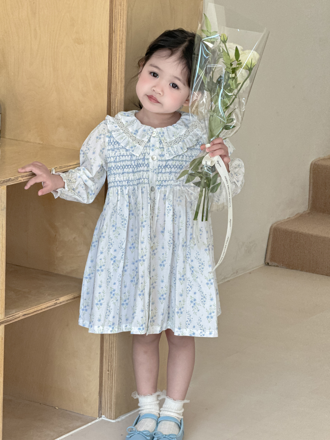 2026년 크로스보더 여아용 원피스, 여자 아기 긴팔 꽃무늬 원피스, 전원풍의 상큼한 면 프린트 원피스